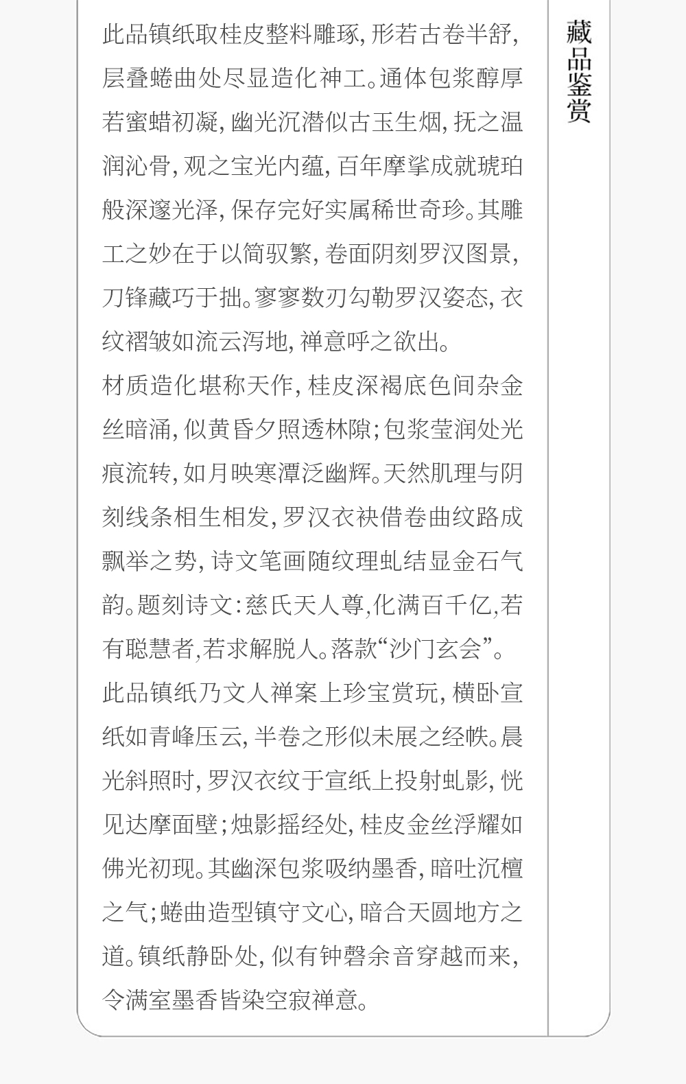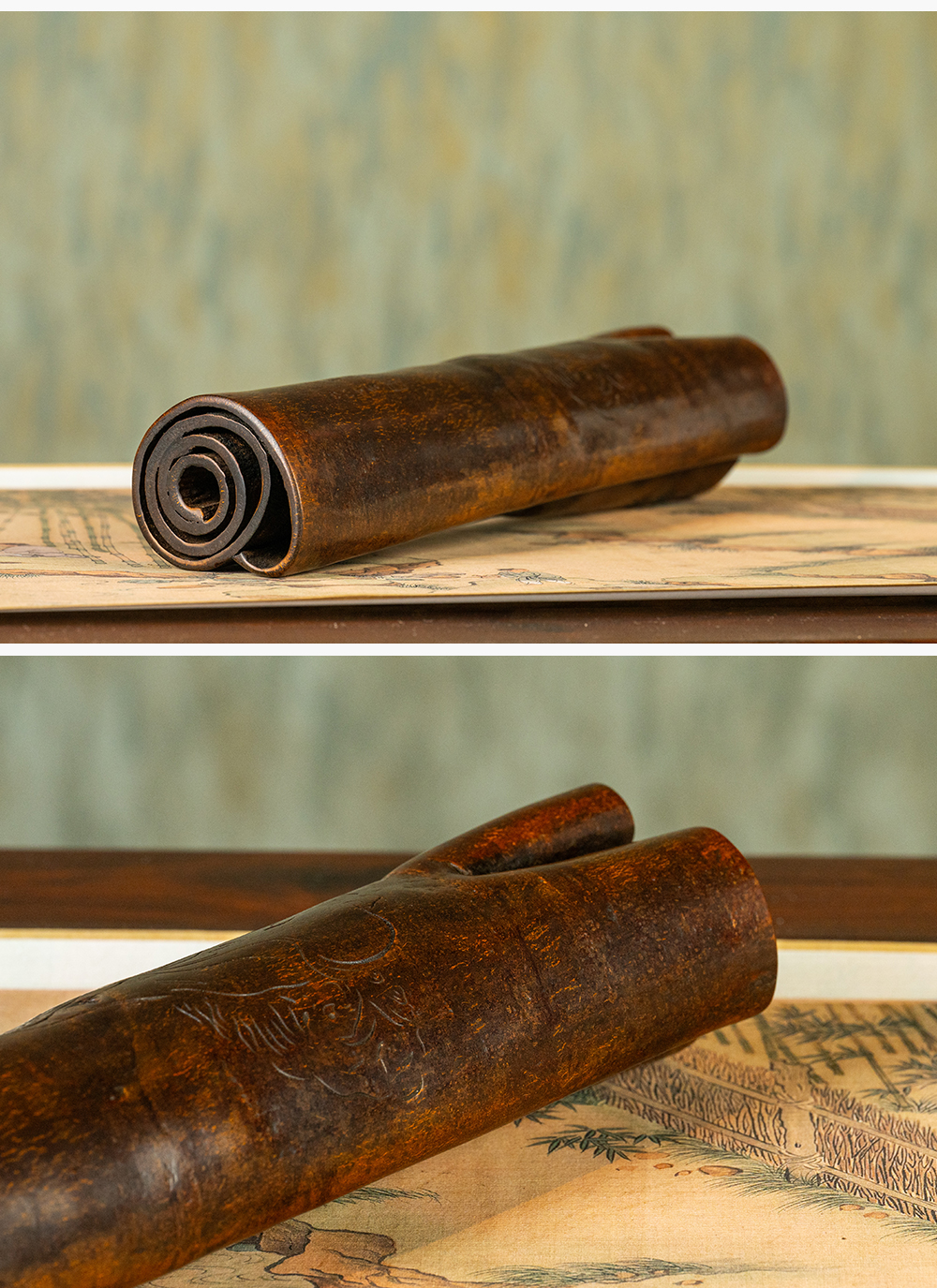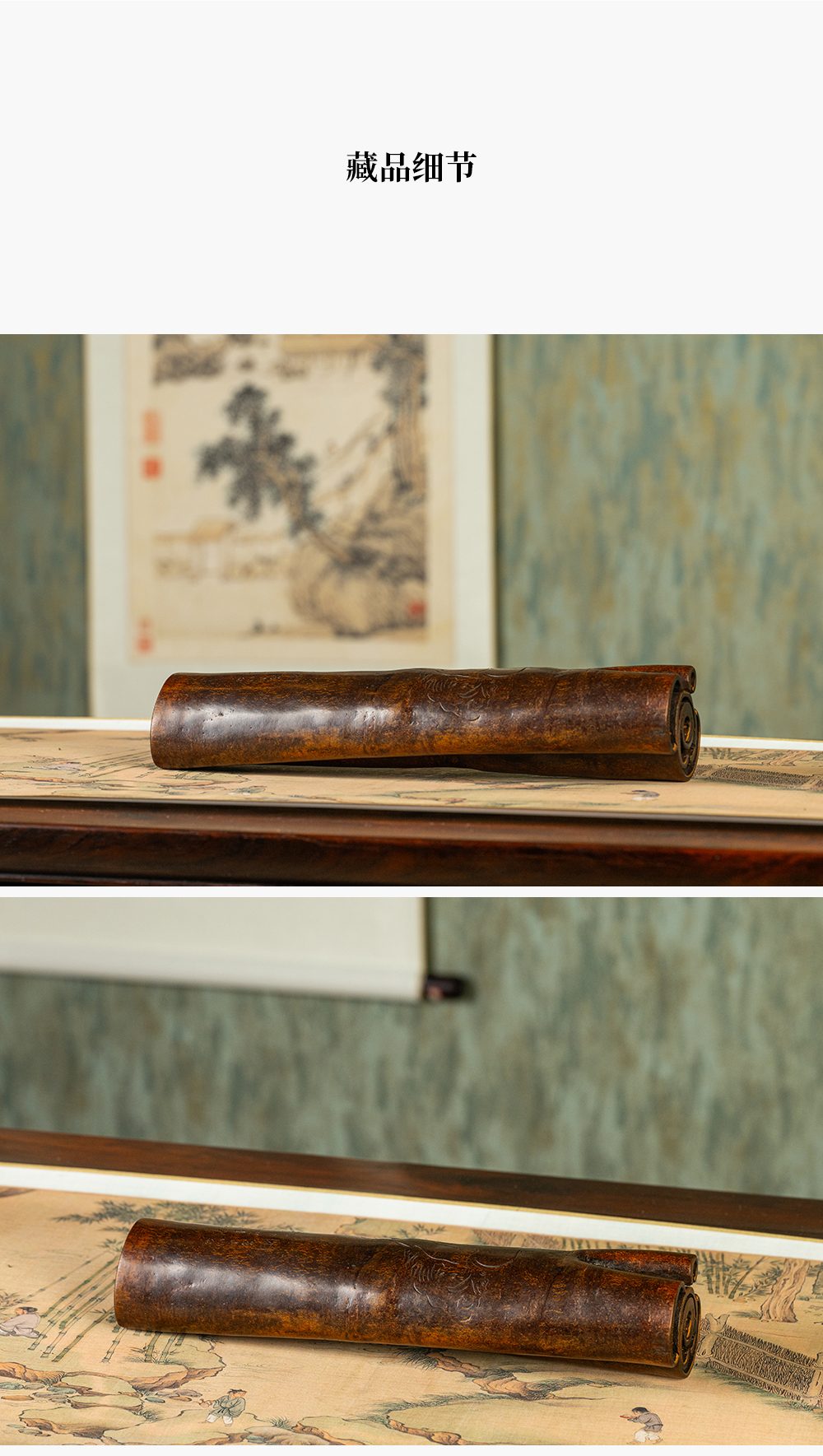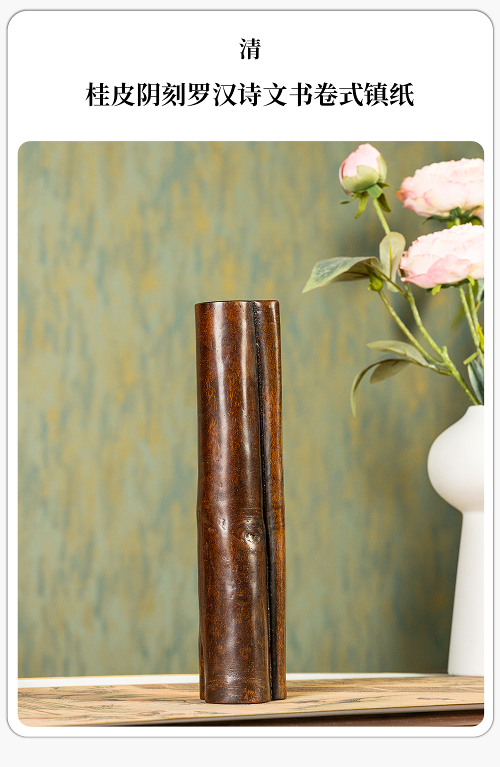 清 桂皮阴刻罗汉诗文书卷式镇纸