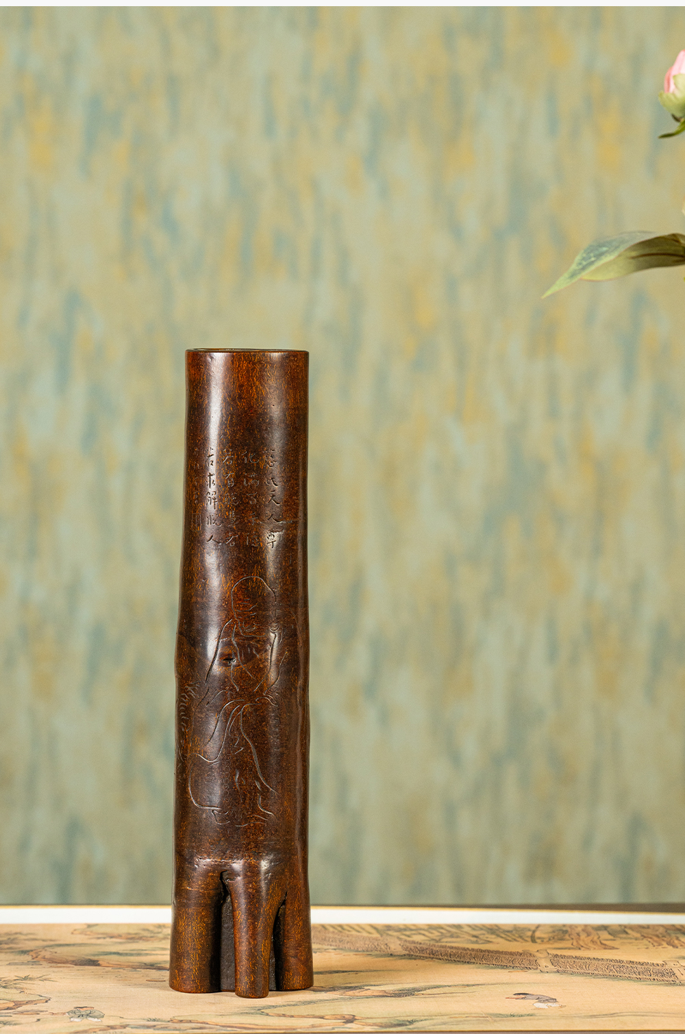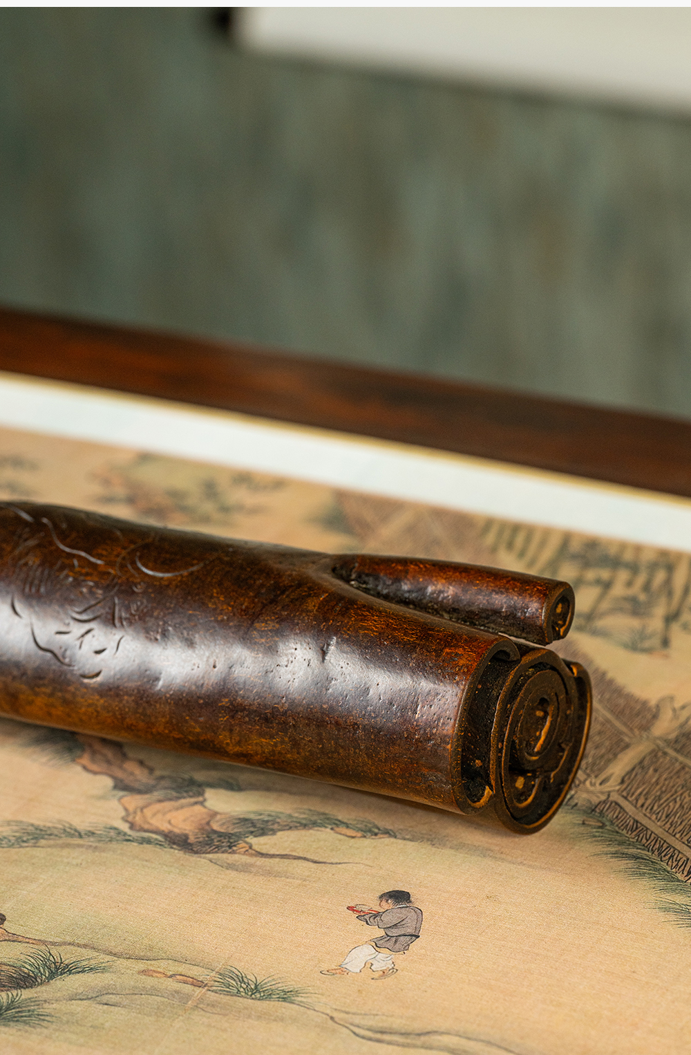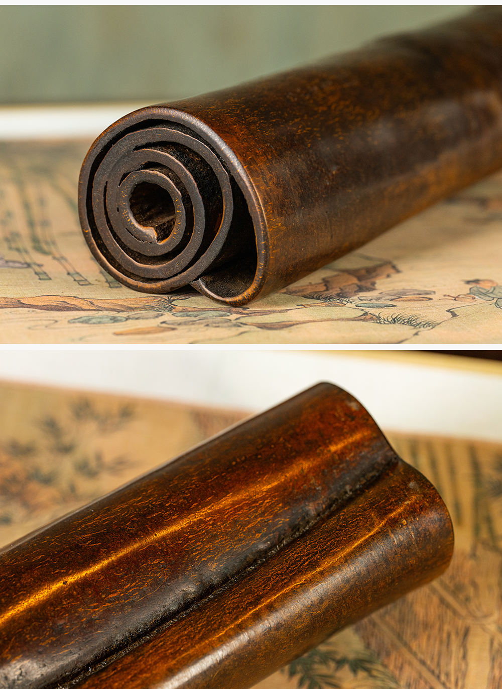 清 桂皮阴刻罗汉诗文书卷式镇纸