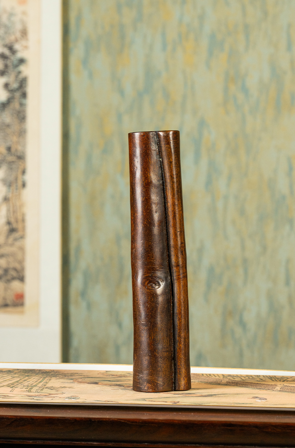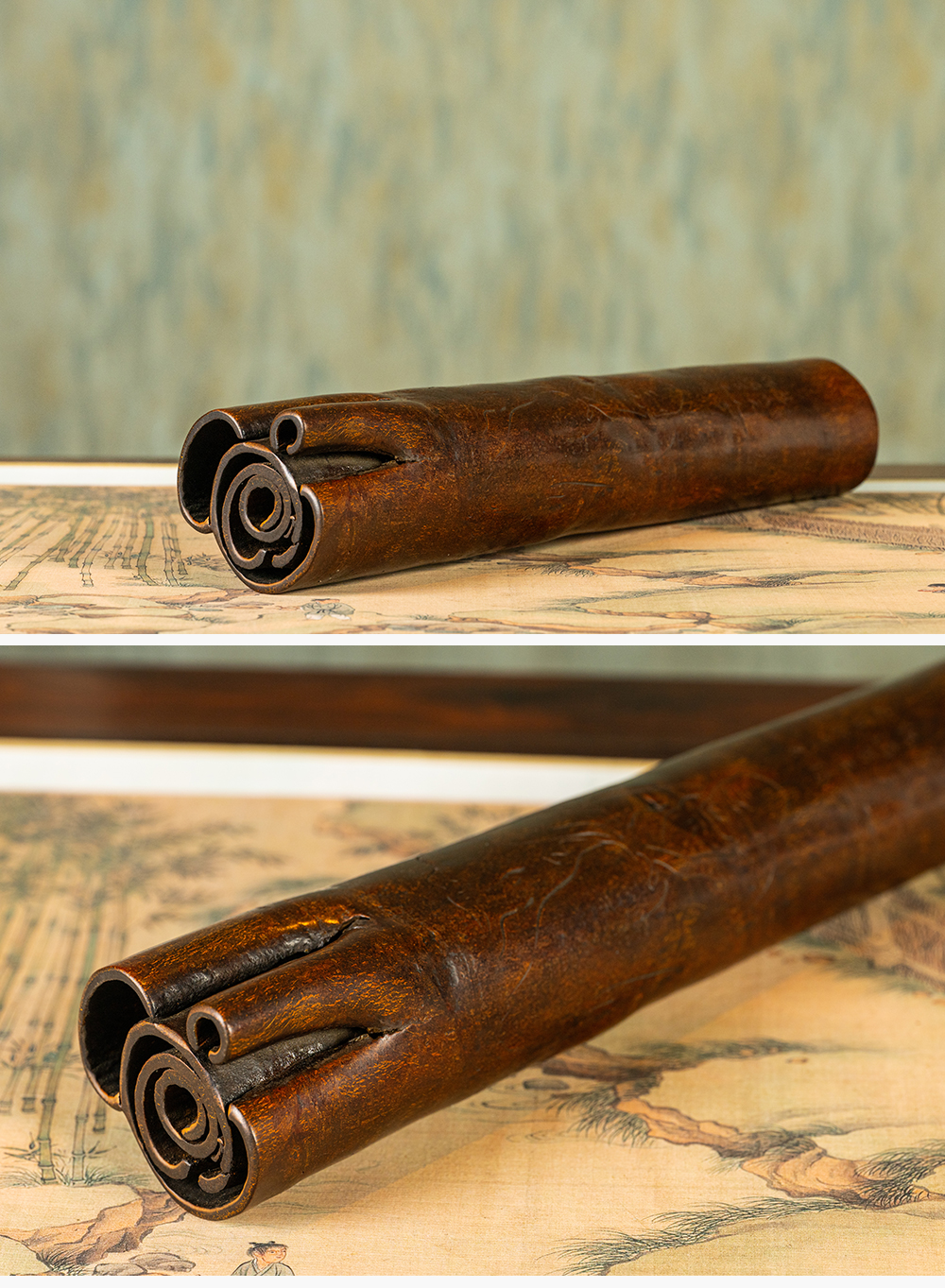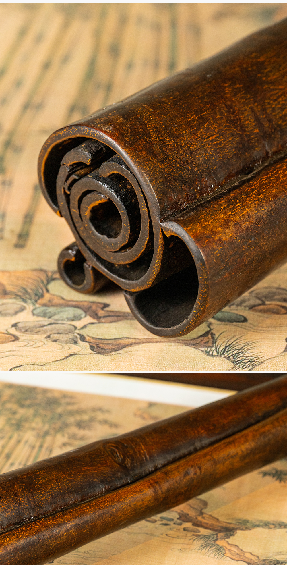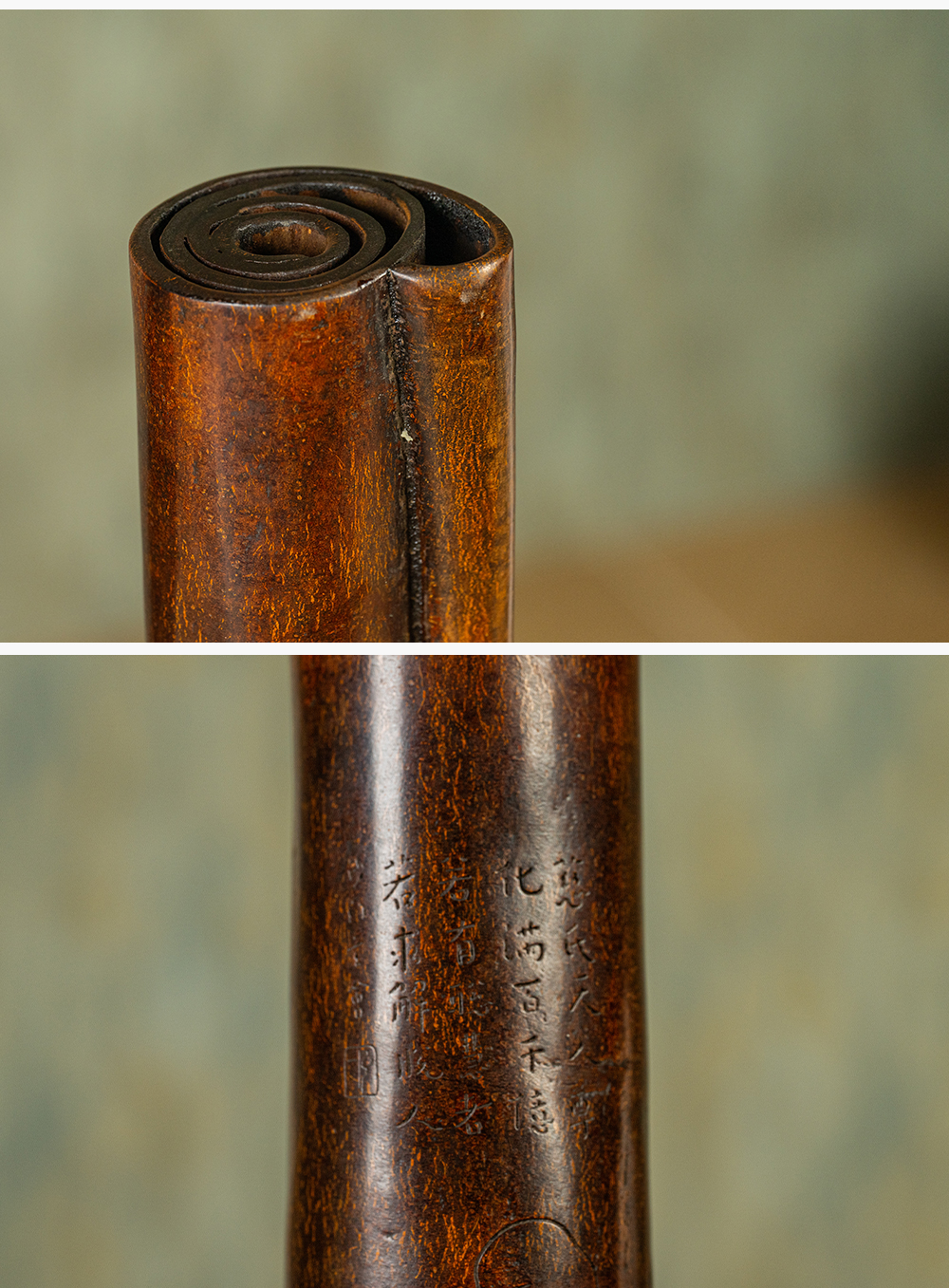 清 桂皮阴刻罗汉诗文书卷式镇纸