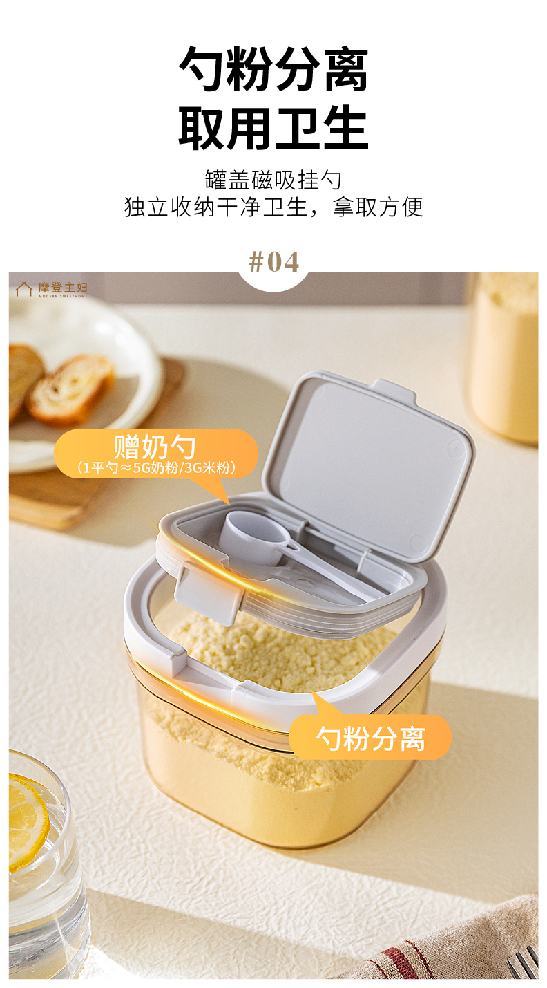 摩登主妇奶粉罐婴儿食品级防潮收纳罐子便携外出分装米粉盒密封罐