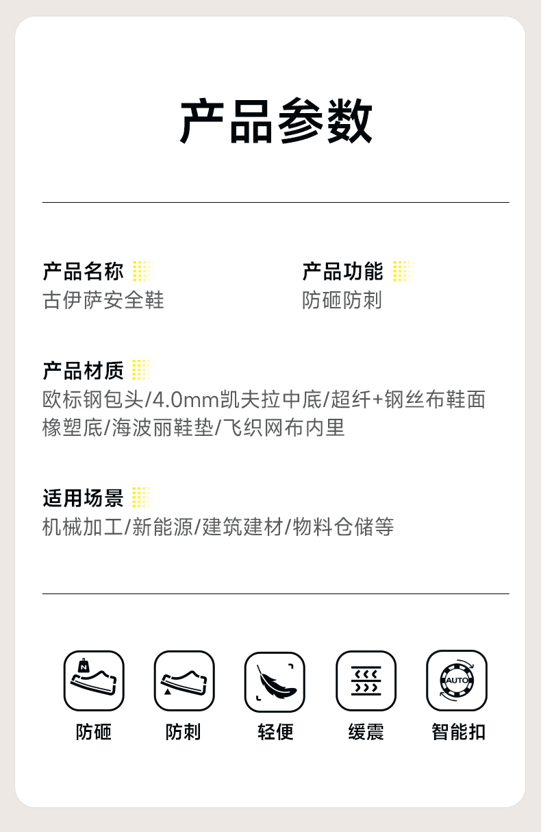 防砸防刺穿欧标钢包头达标4.0㎜凯夫拉底橡塑底轻便耐磨
