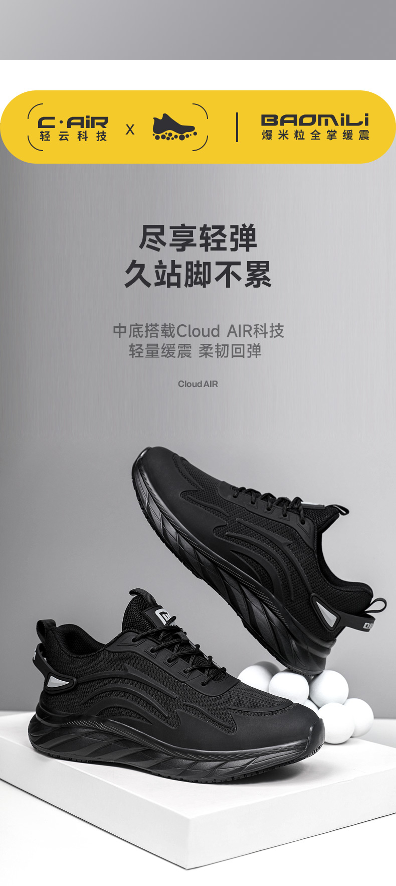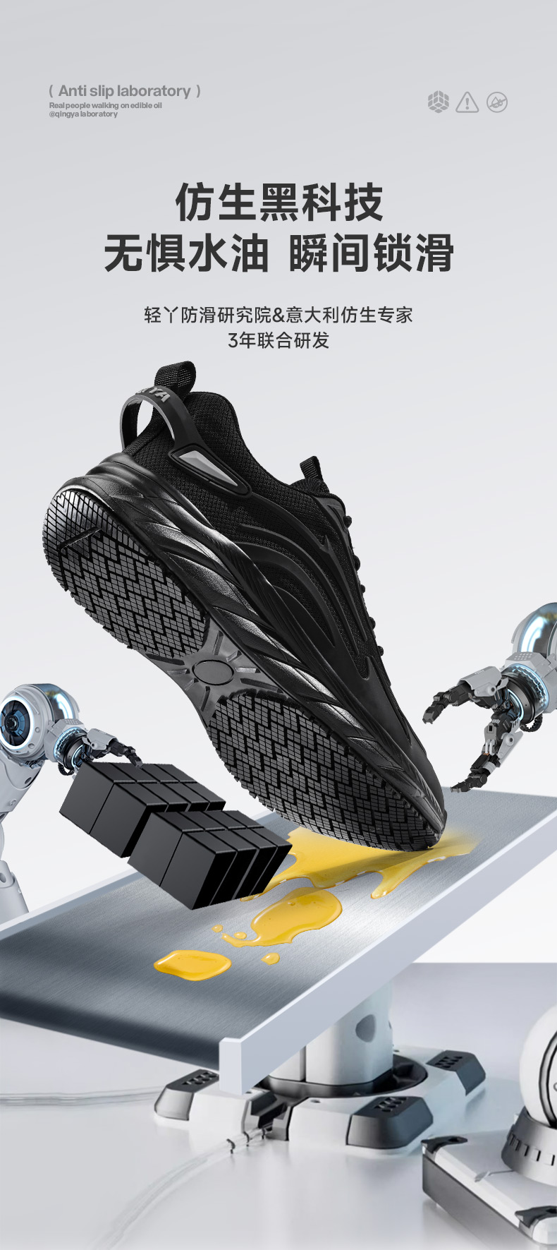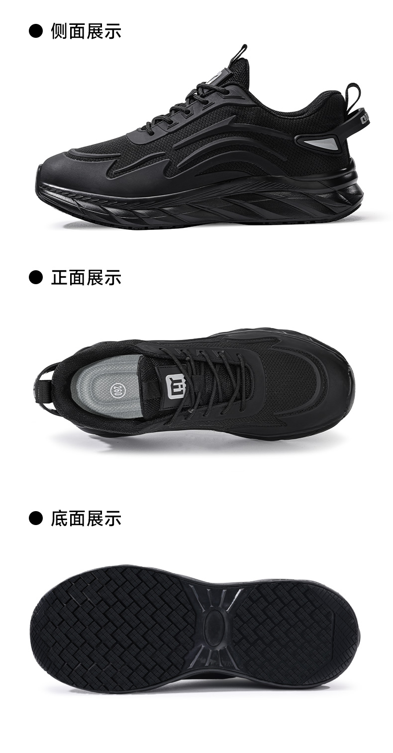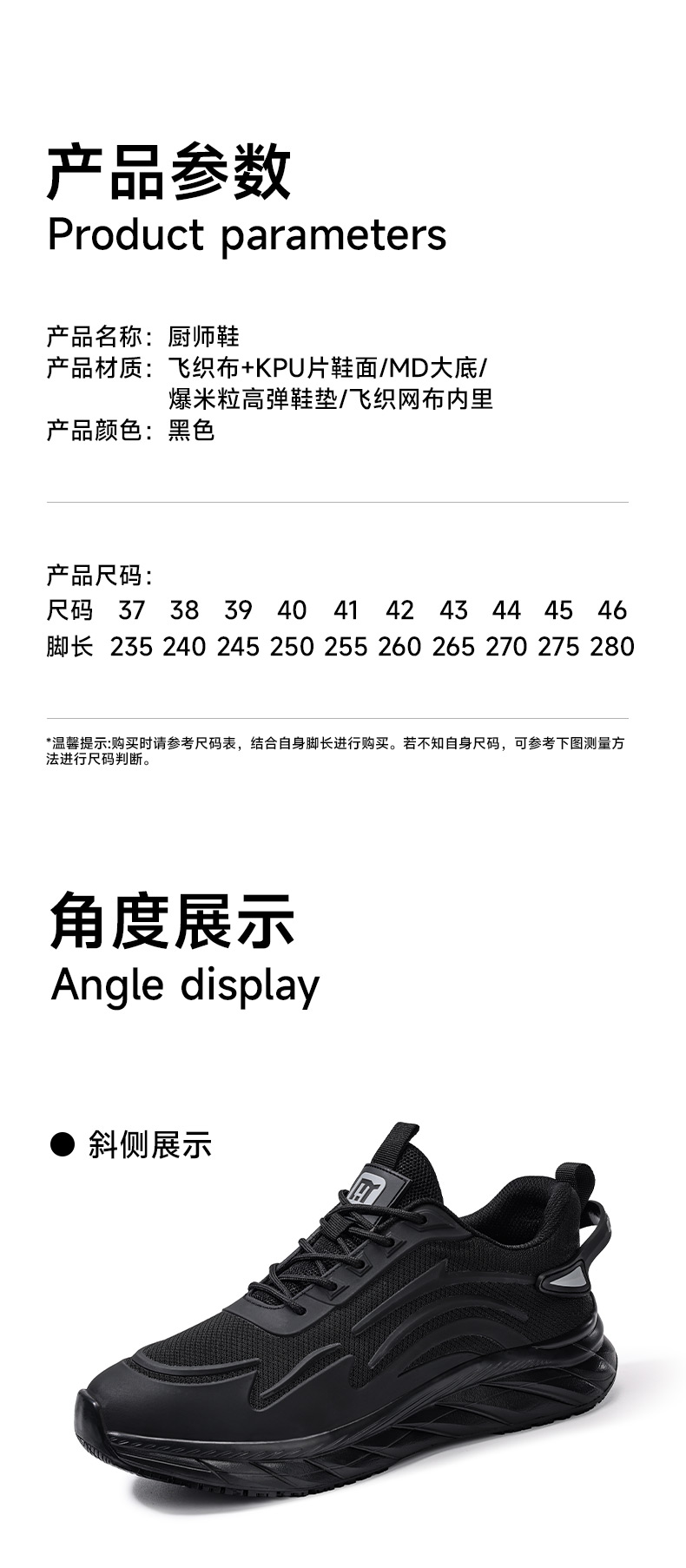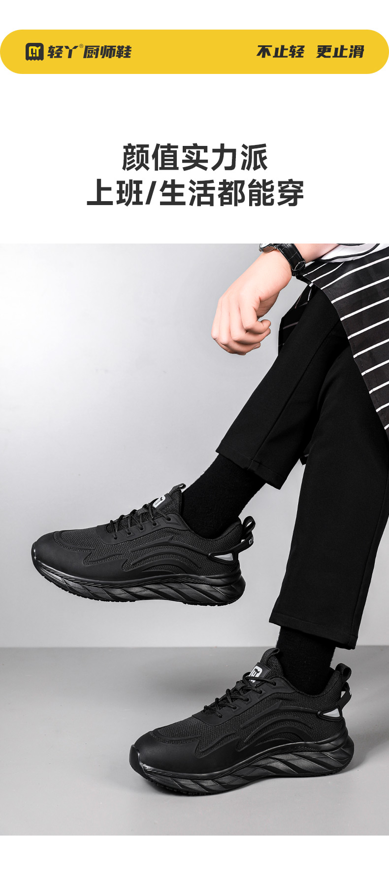 2025新款四季款低帮轻丫厨师鞋运动系列防滑SRC无包头无中底实心MD底飞织布KPU片黑色厨师鞋