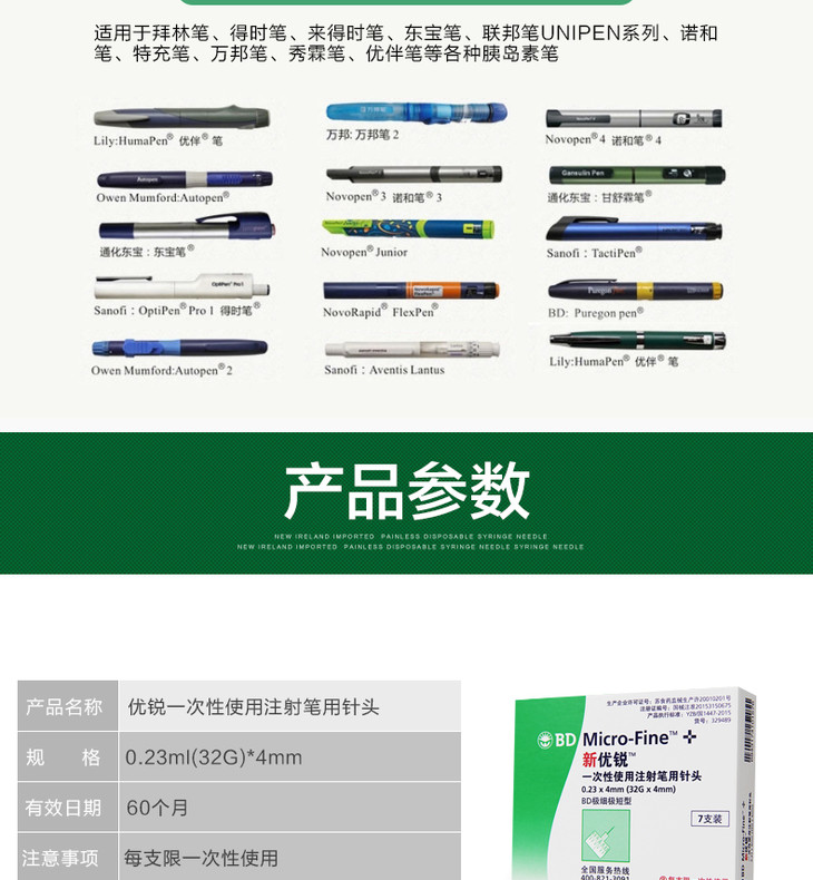 新优锐bd胰岛素注射笔针头0.23mm4mm家用无痛胰岛素针头