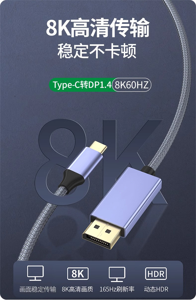1.8米 C to DP双向转换双芯片顶规8K高刷线材