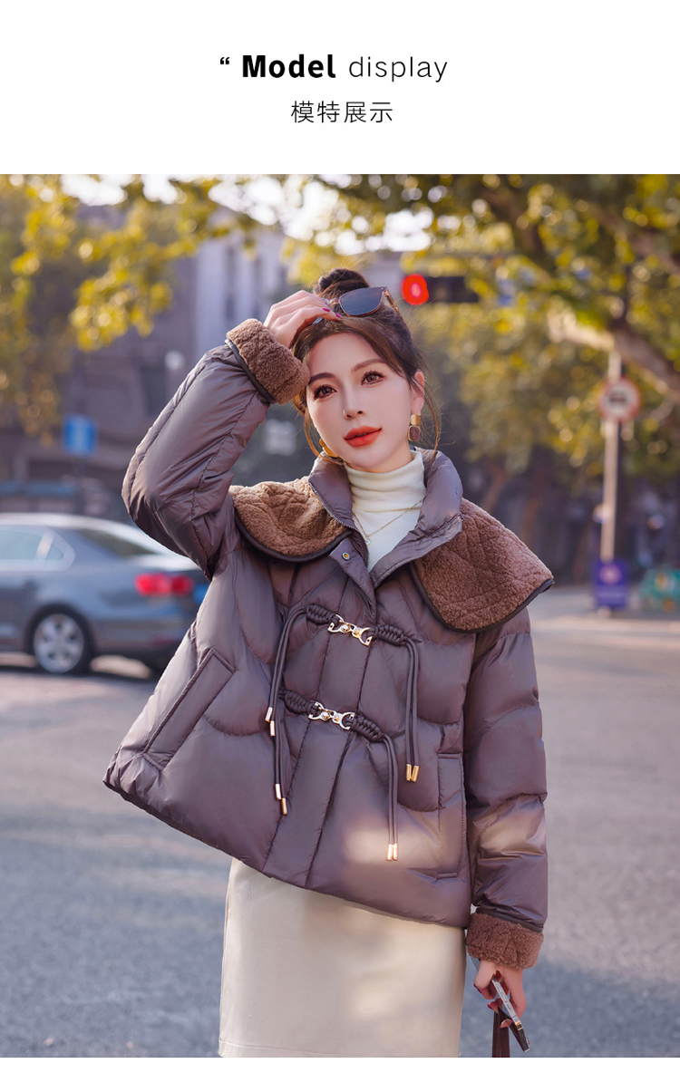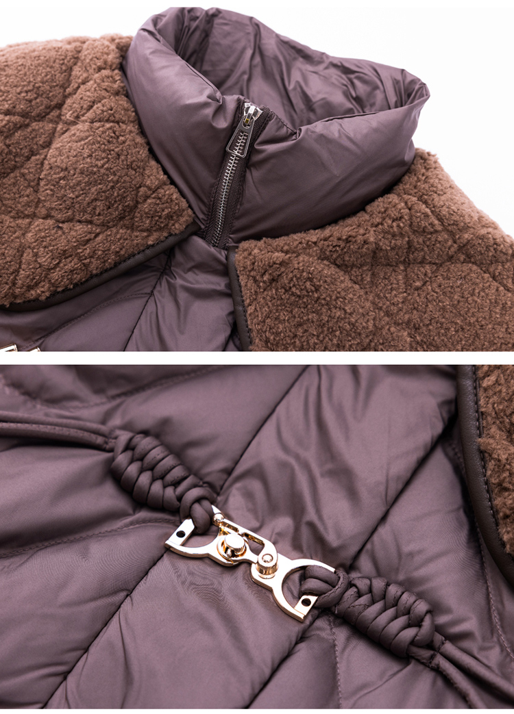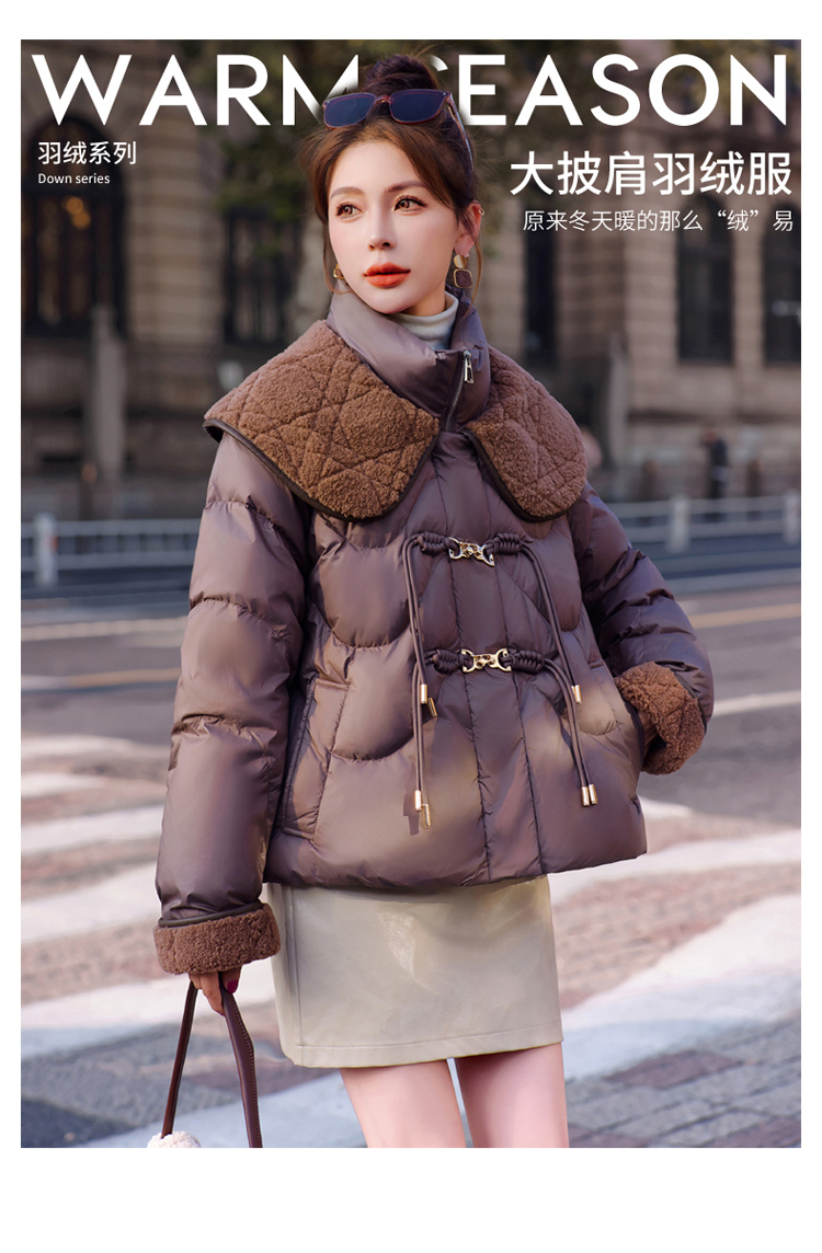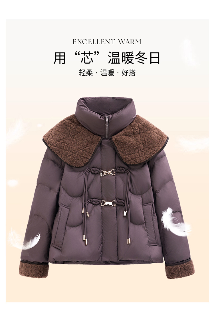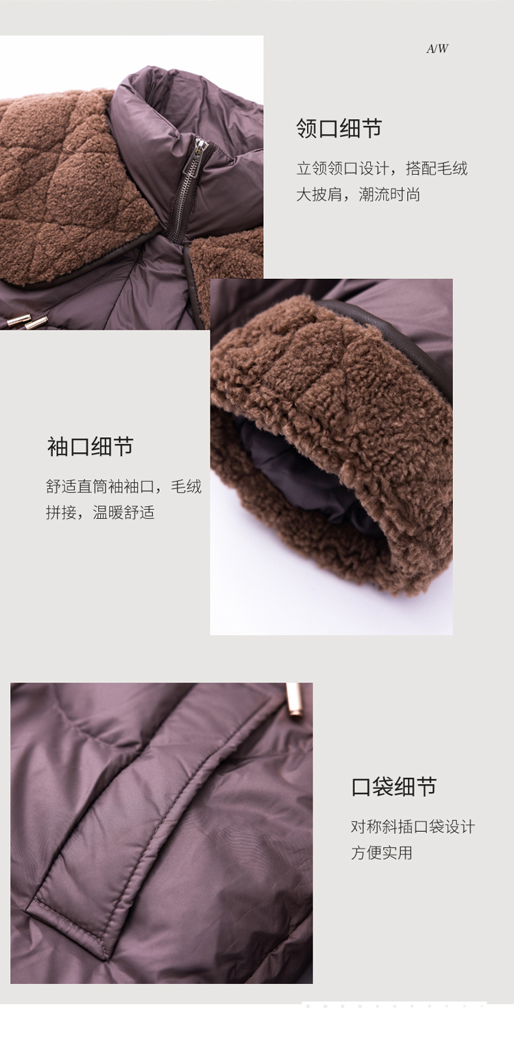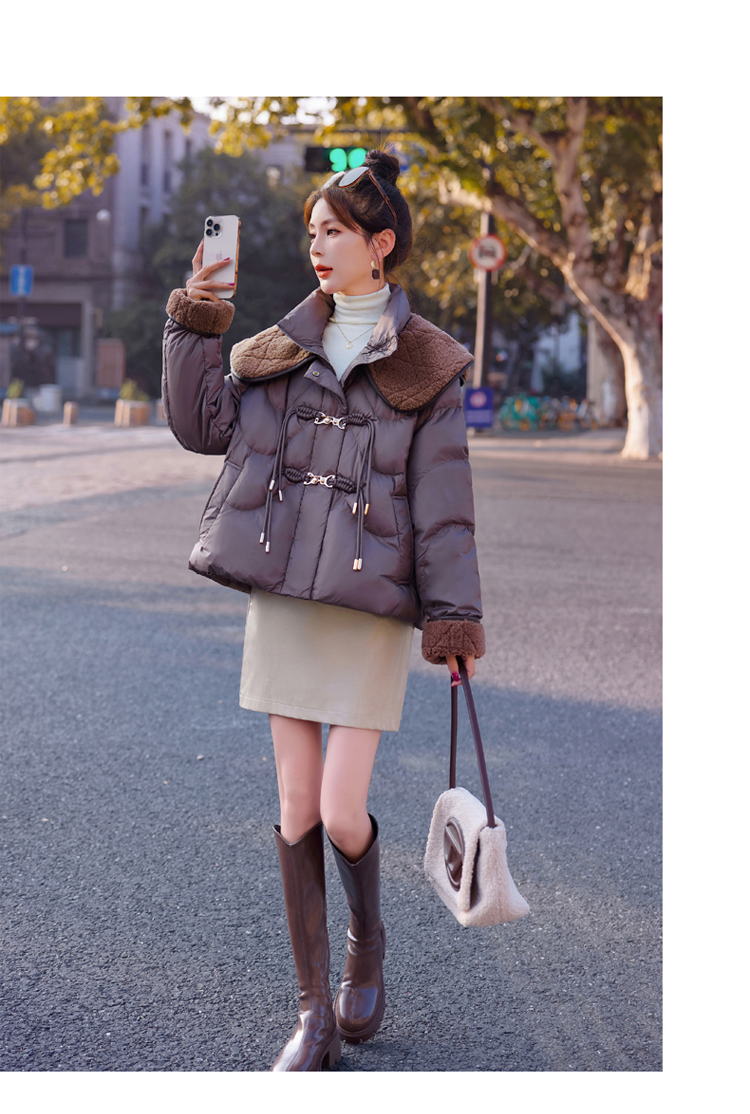 冬季新款,90白鸭绒羊羔毛拼接金属盘扣美拉德风羽绒服HR-YJLY8079
