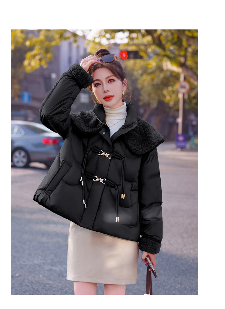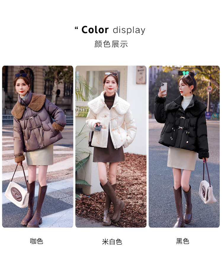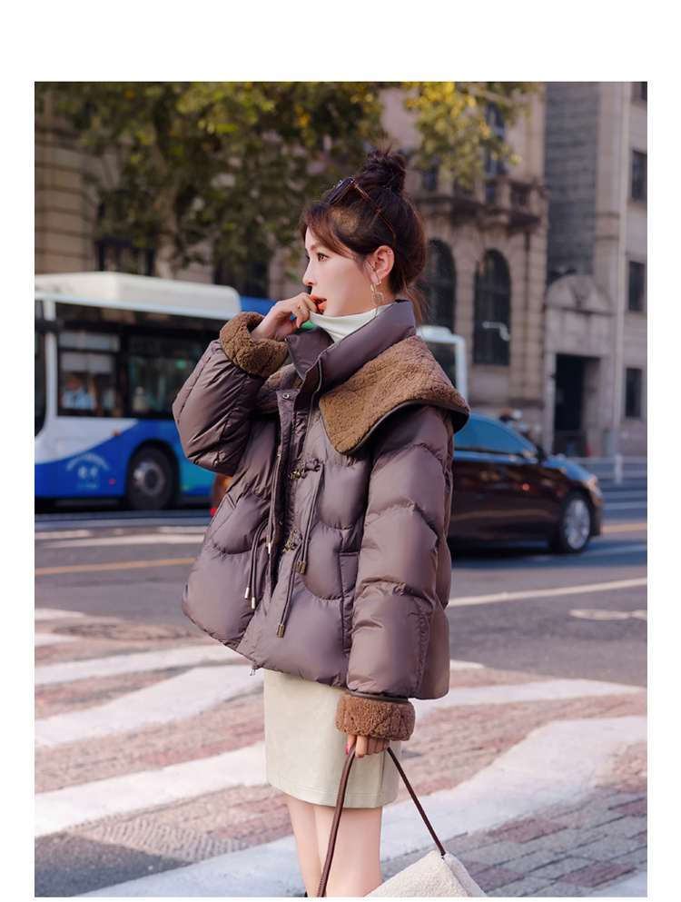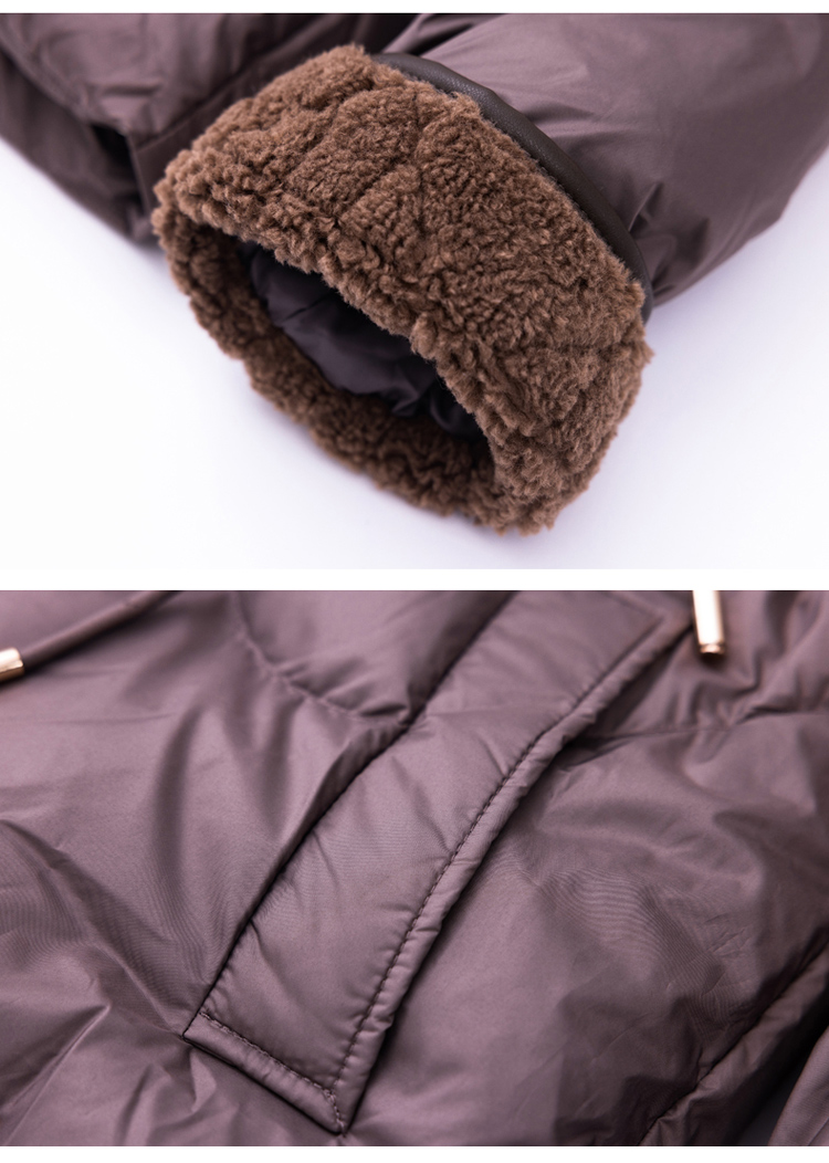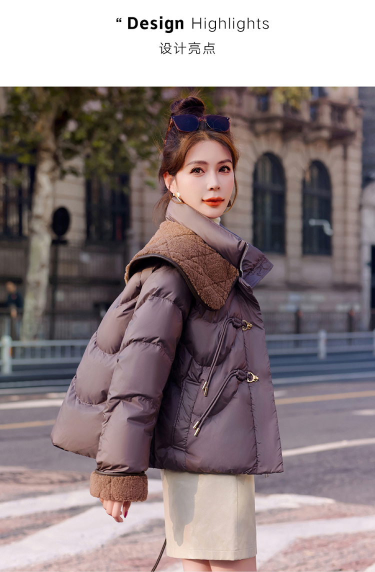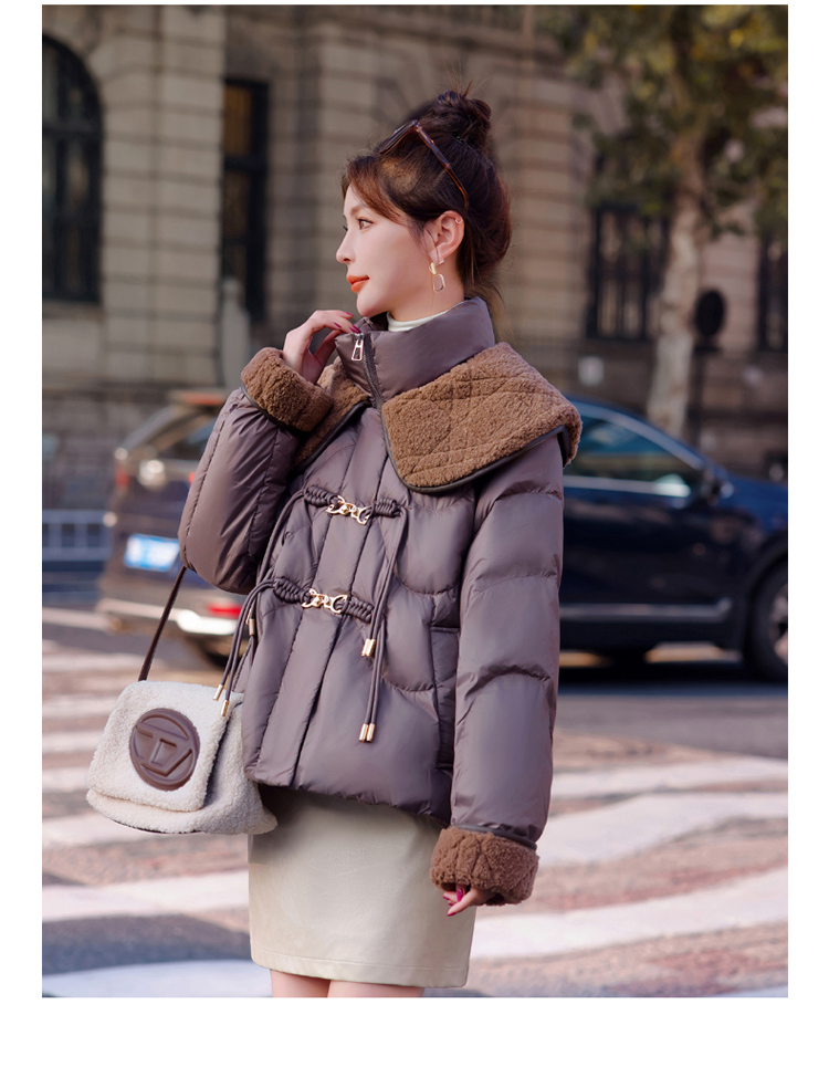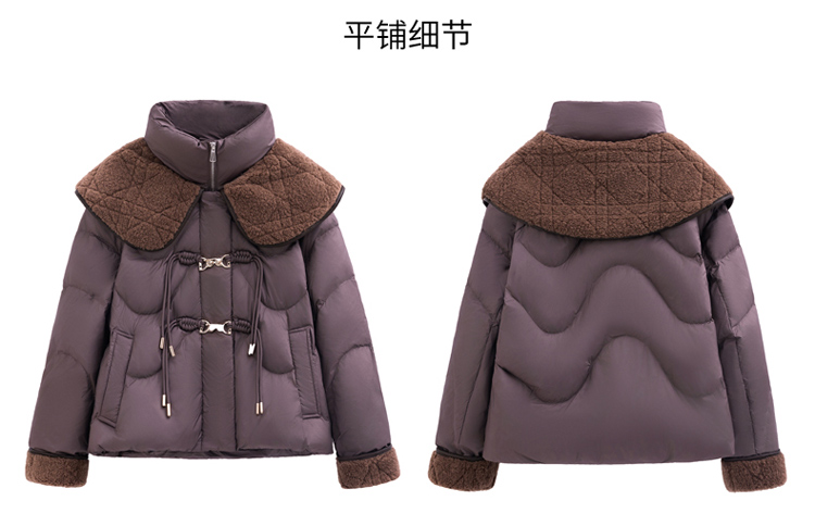 冬季新款,90白鸭绒羊羔毛拼接金属盘扣美拉德风羽绒服HR-YJLY8079