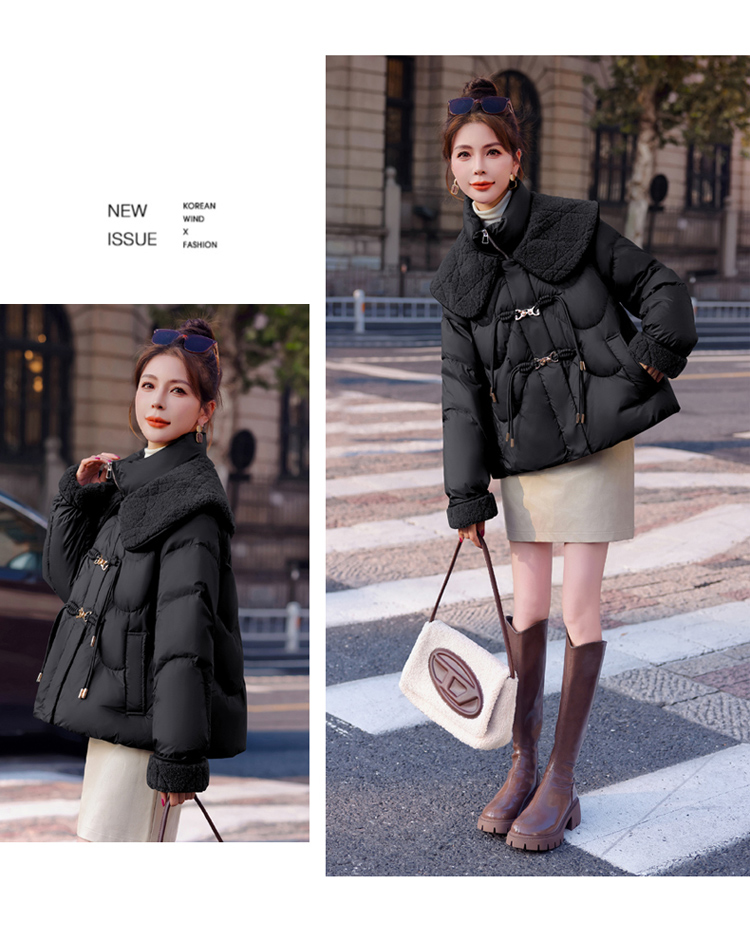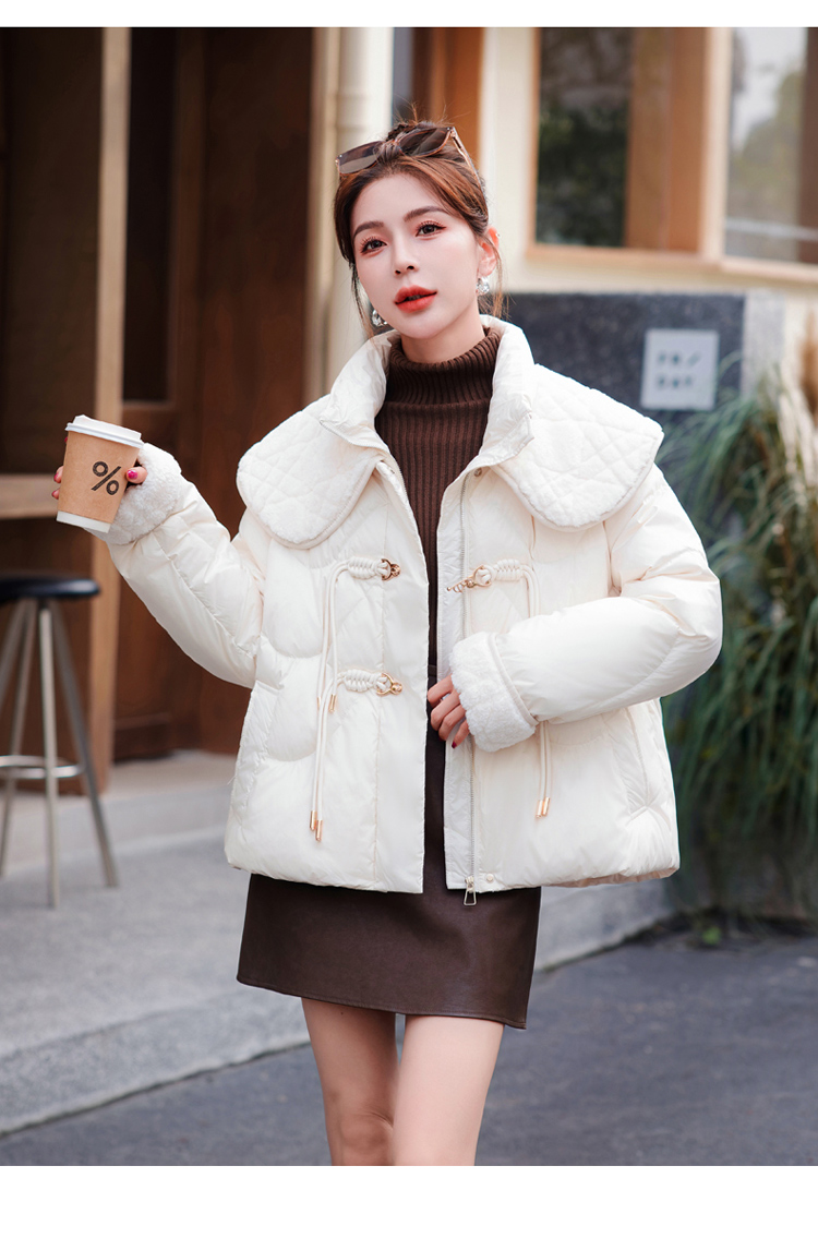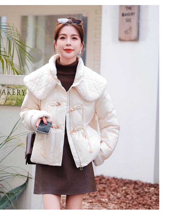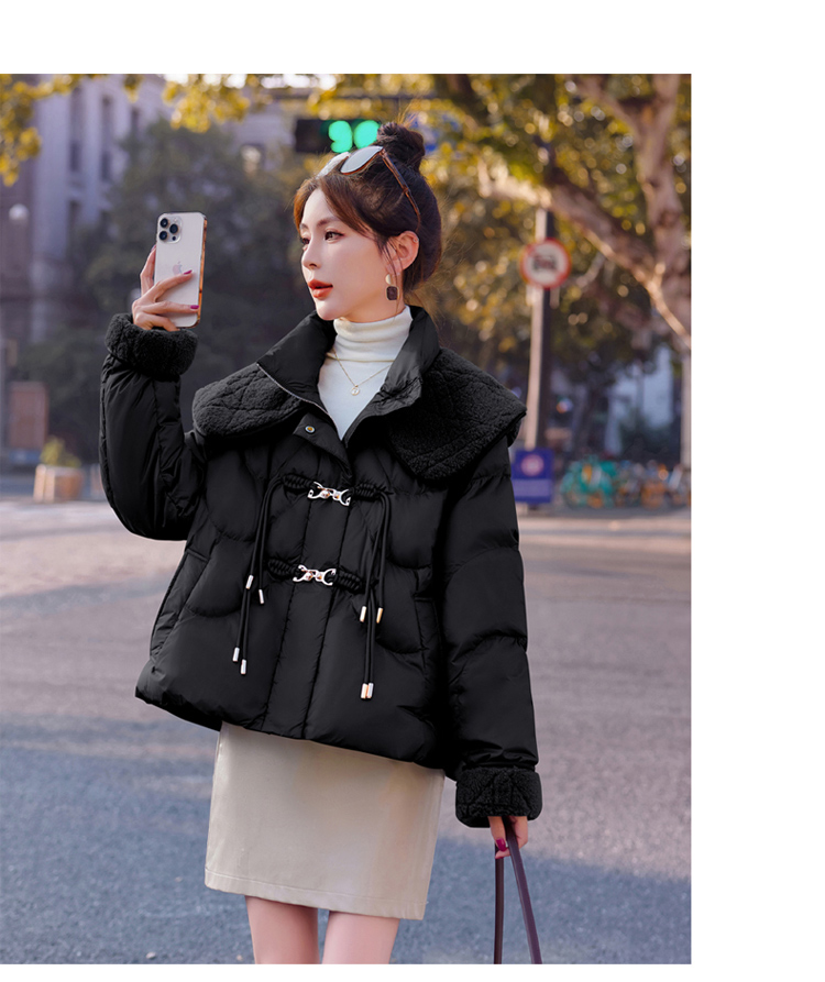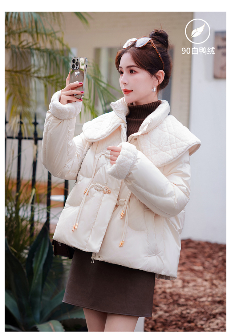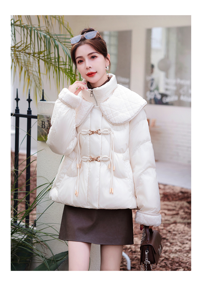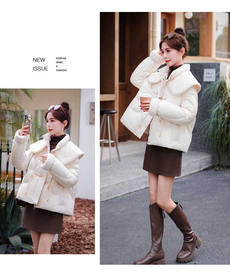 冬季新款,90白鸭绒羊羔毛拼接金属盘扣美拉德风羽绒服HR-YJLY8079