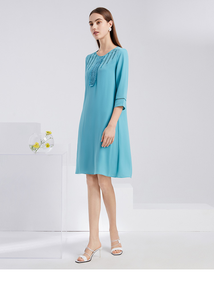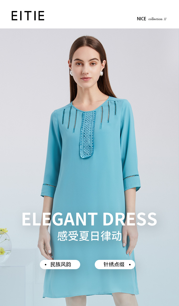 EITIE爱特爱夏季新款时尚气质通勤宽松显瘦A版中袖连衣裙