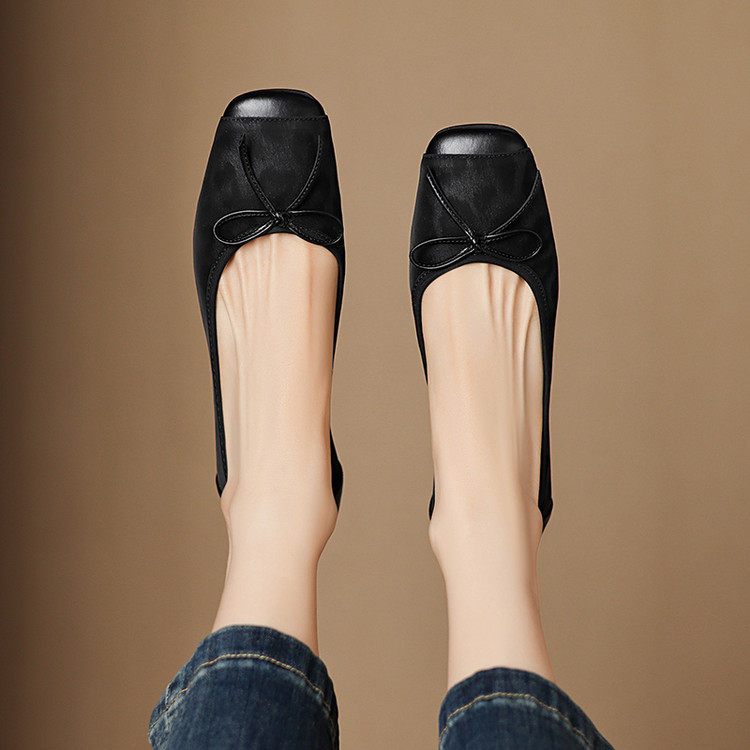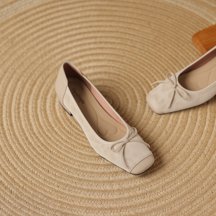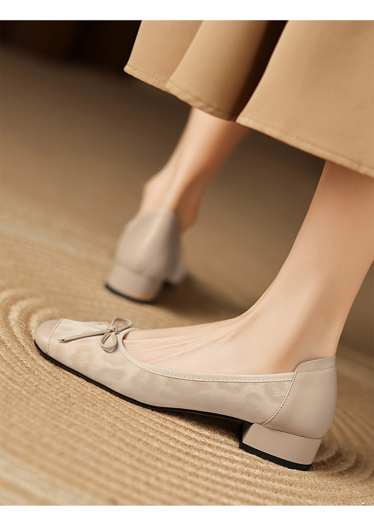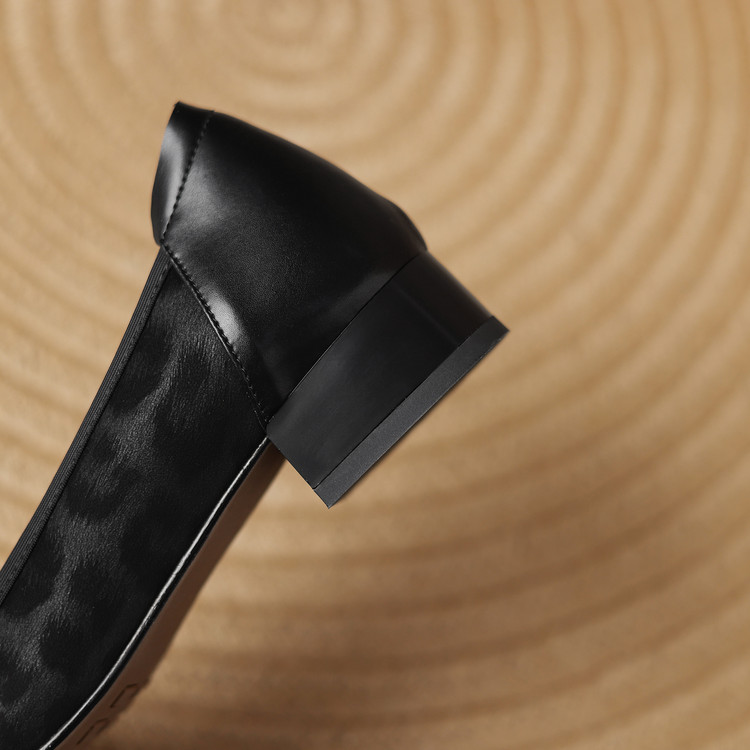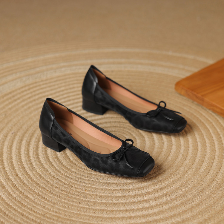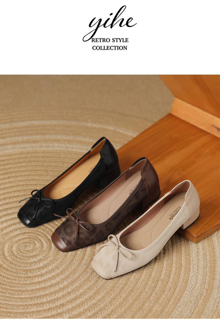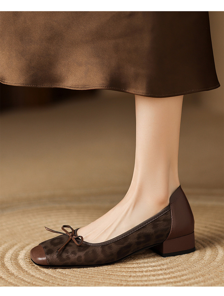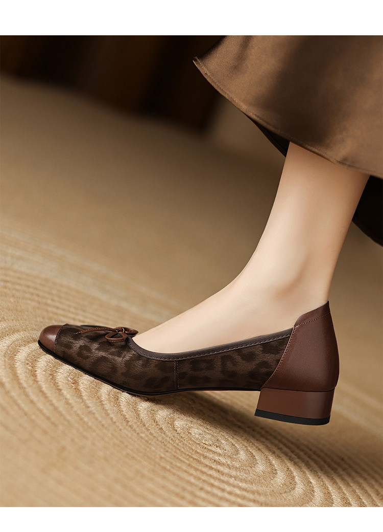 【预售5天】复古豹纹头层牛皮蝴蝶结单鞋女高级感春秋季粗跟低跟浅口小皮鞋LD&7280