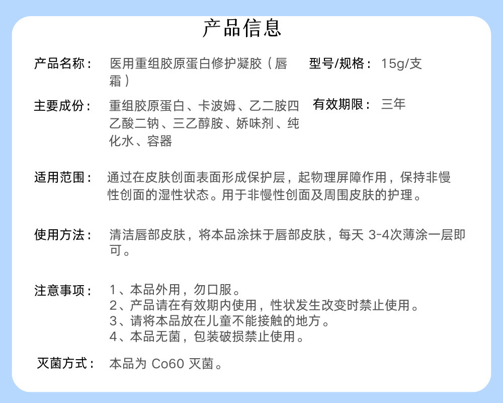 微敷悦尔 医用重组胶原蛋白修护凝胶(规格15g/支)