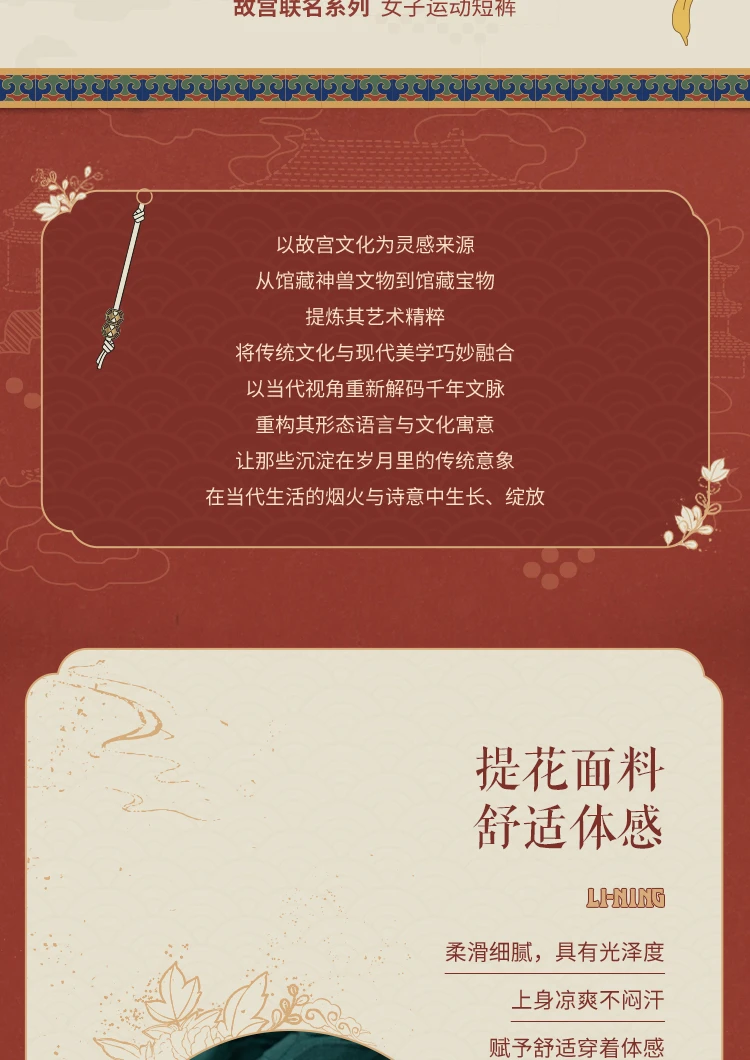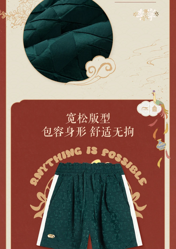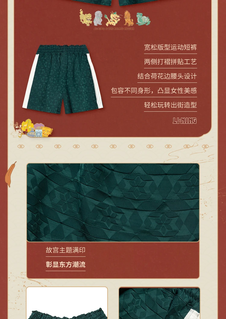 李宁中国文化系列故宫联名女子宽松运动短裤AKSV696