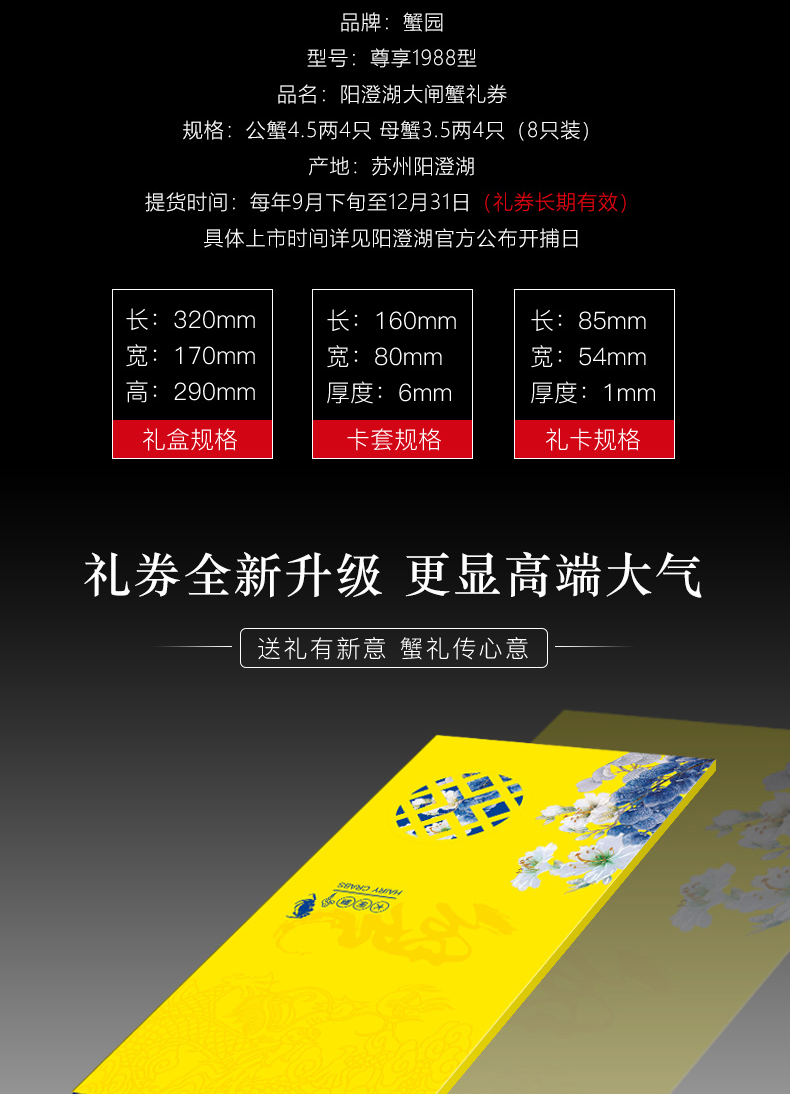 蟹园阳澄湖大闸蟹礼券1988型(公蟹4.5两4只,母蟹3.5两4只)
