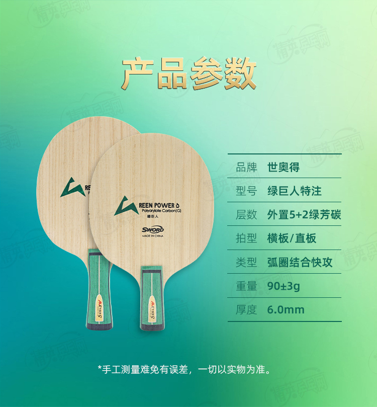 【送定制乒乓球】Sword世奥得绿巨人特注乒乓球拍底板精英定制5+2外置绿芳碳