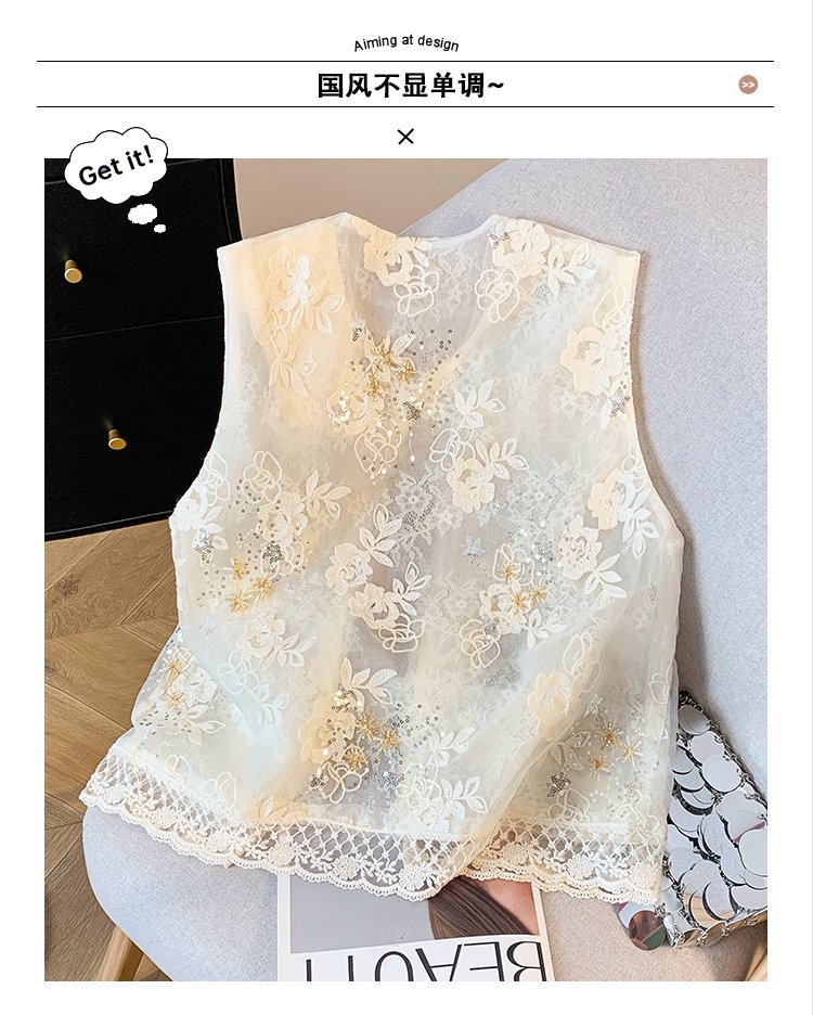 2025夏季新款复古新中式国风改良文艺立体刺绣薄款圆领马甲上衣女