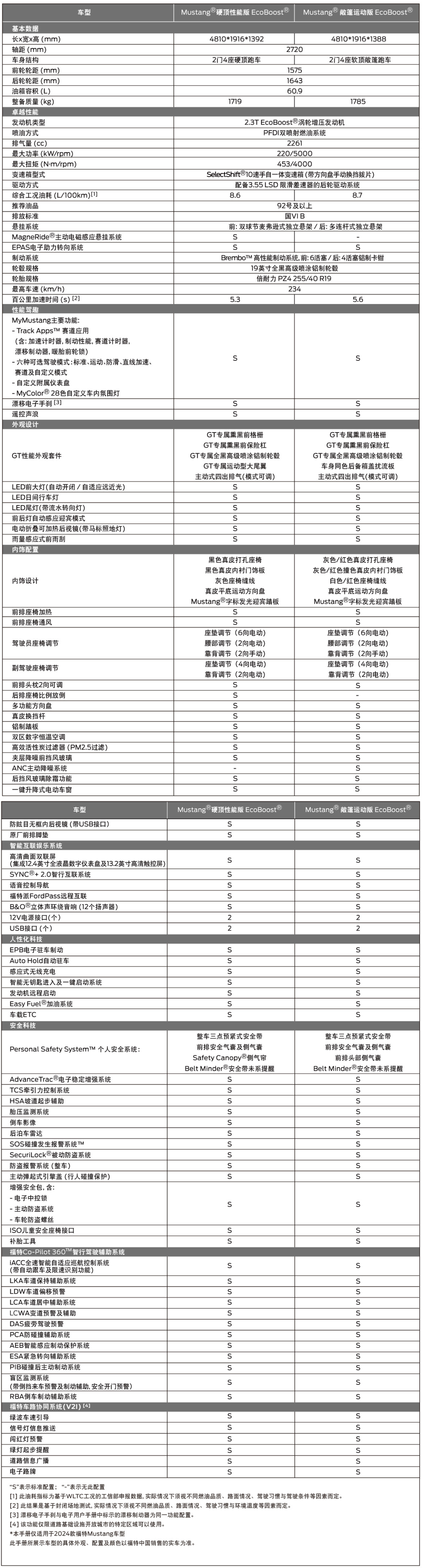 全新2024款福特MUSTANG 硬顶性能版 2.3T EcoBoost / 敞篷运动版 2.3T EcoBoost / Dark Horse 5.0L V8
