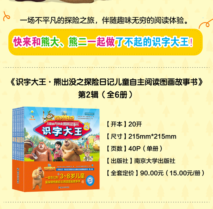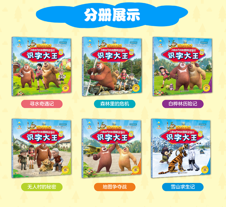 【低幼】识字大王•熊出没之探险日记儿童自主阅读图画故事书•第2辑(共6册)