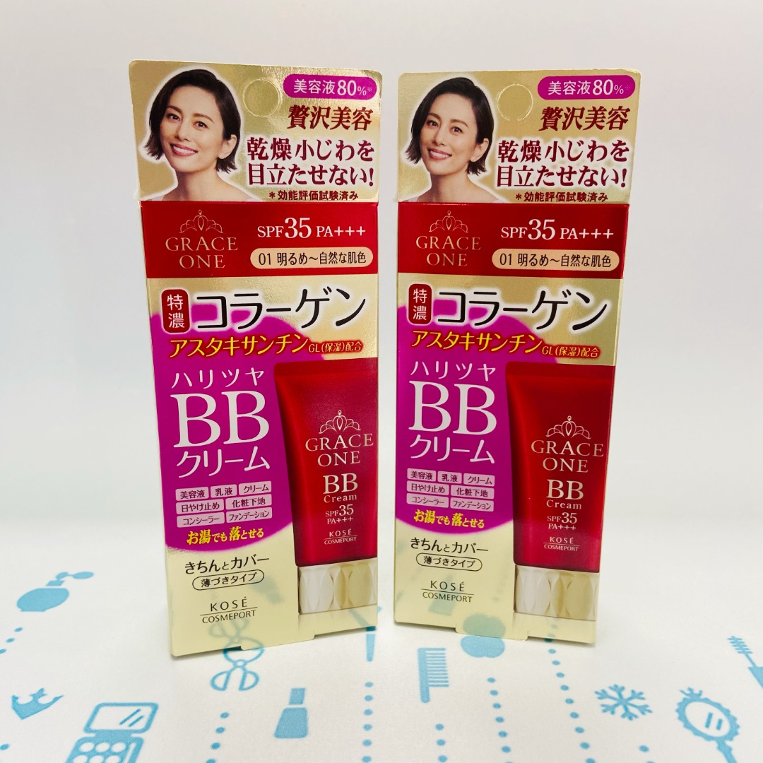 👑高丝Grace One BB霜50g#001明亮肤色 / #002自然肤色 👍妈妈用的BB霜! ✅7种作用集于一体,美容液80%配合的奢华保湿BB霜,可以舒心使用 📢遮盖法令纹,小细纹,肝斑等年龄标志。易伸展,充分遮盖却不厚重,自然上妆 💦不溶于汗,皮脂和谁,只对热水有反应,遮盖力强,用热水即可清洗干净