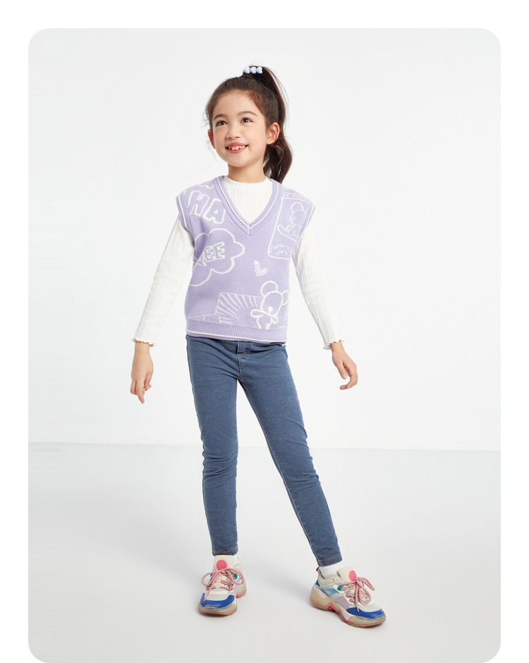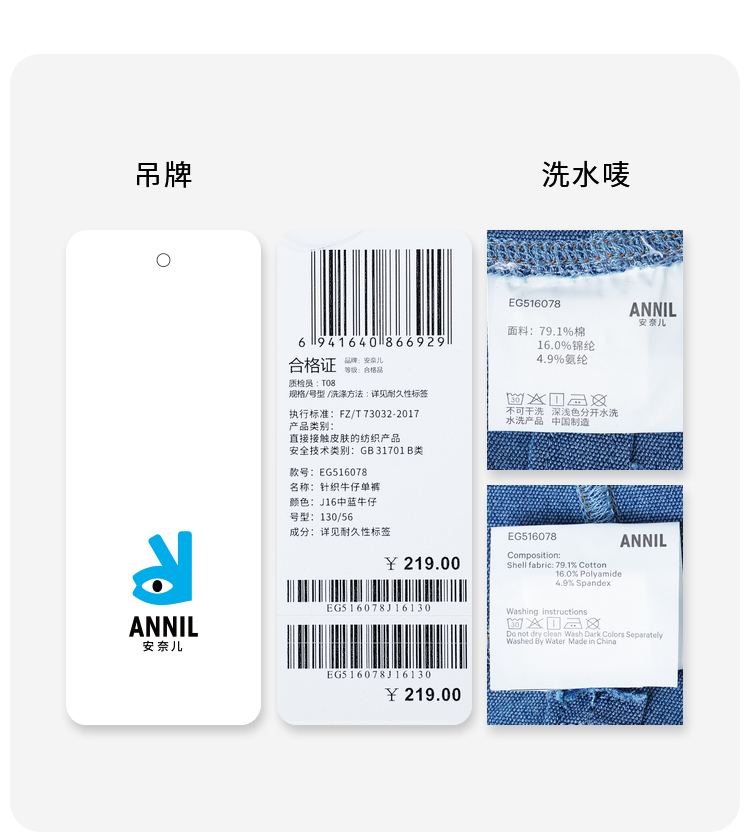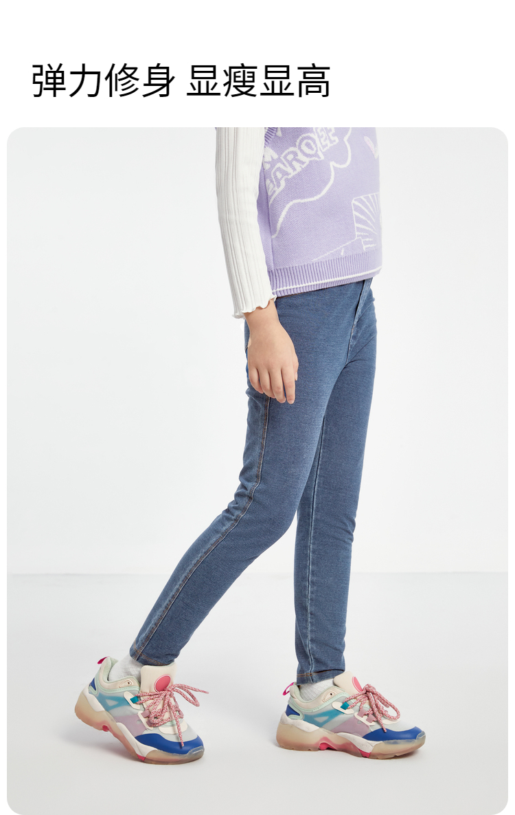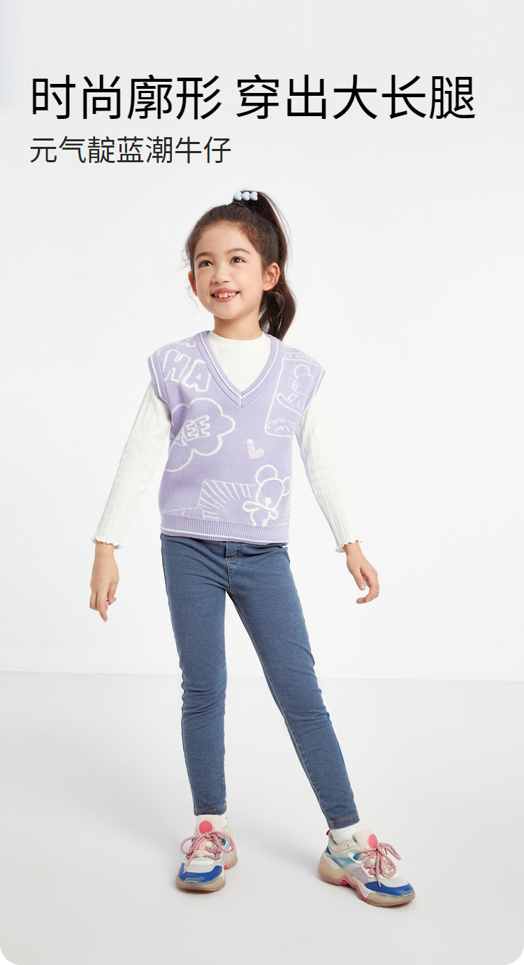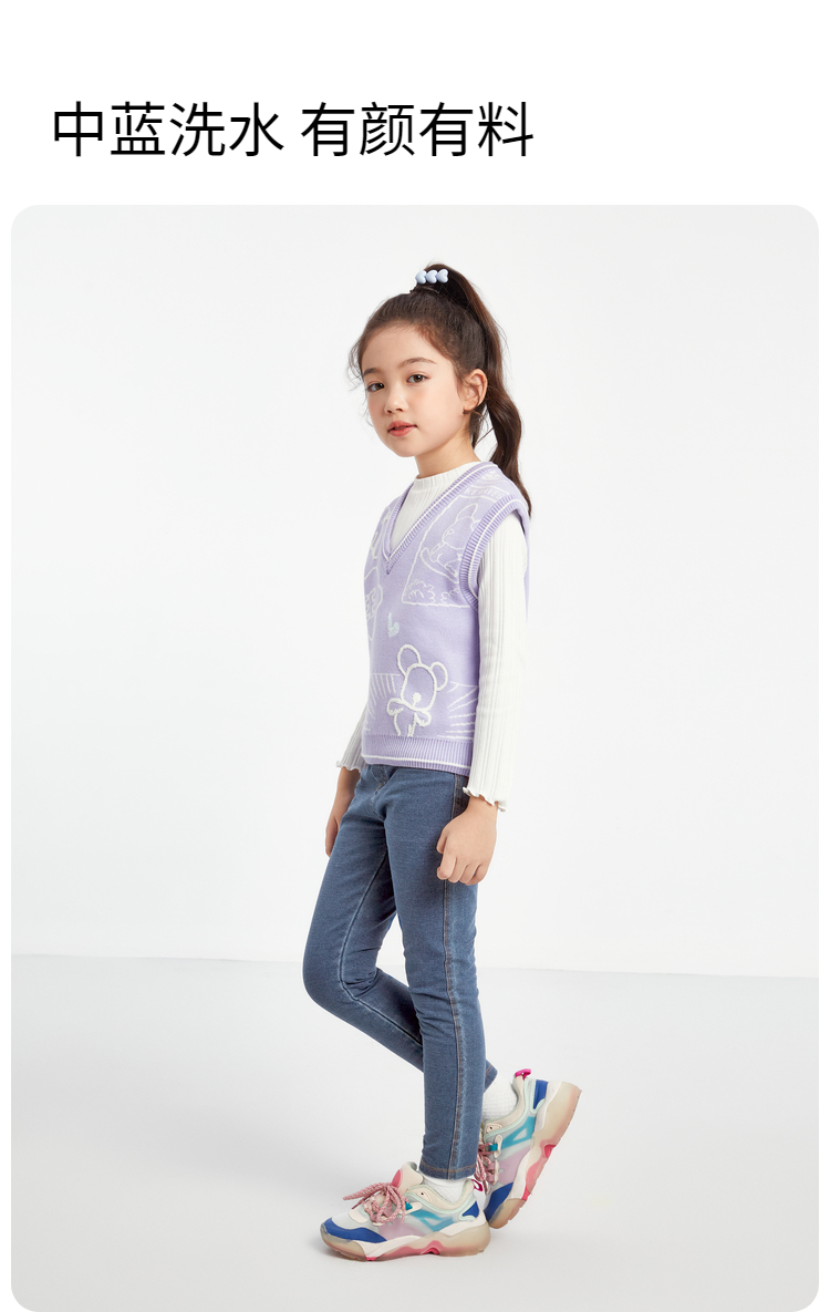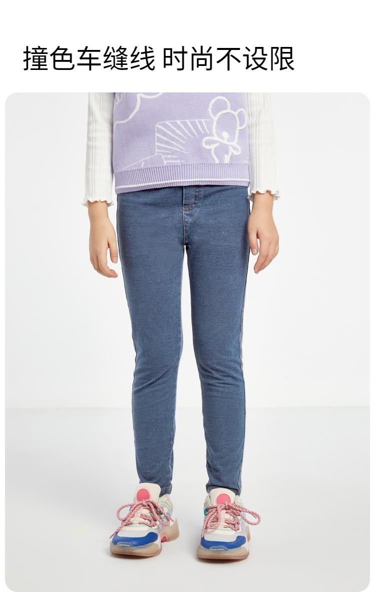 女童针织牛仔单裤春季新款安奈儿童装EG516078