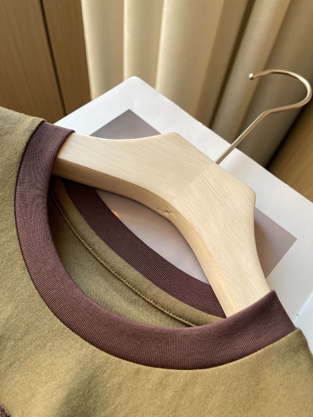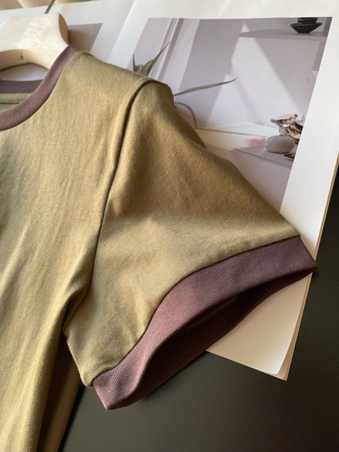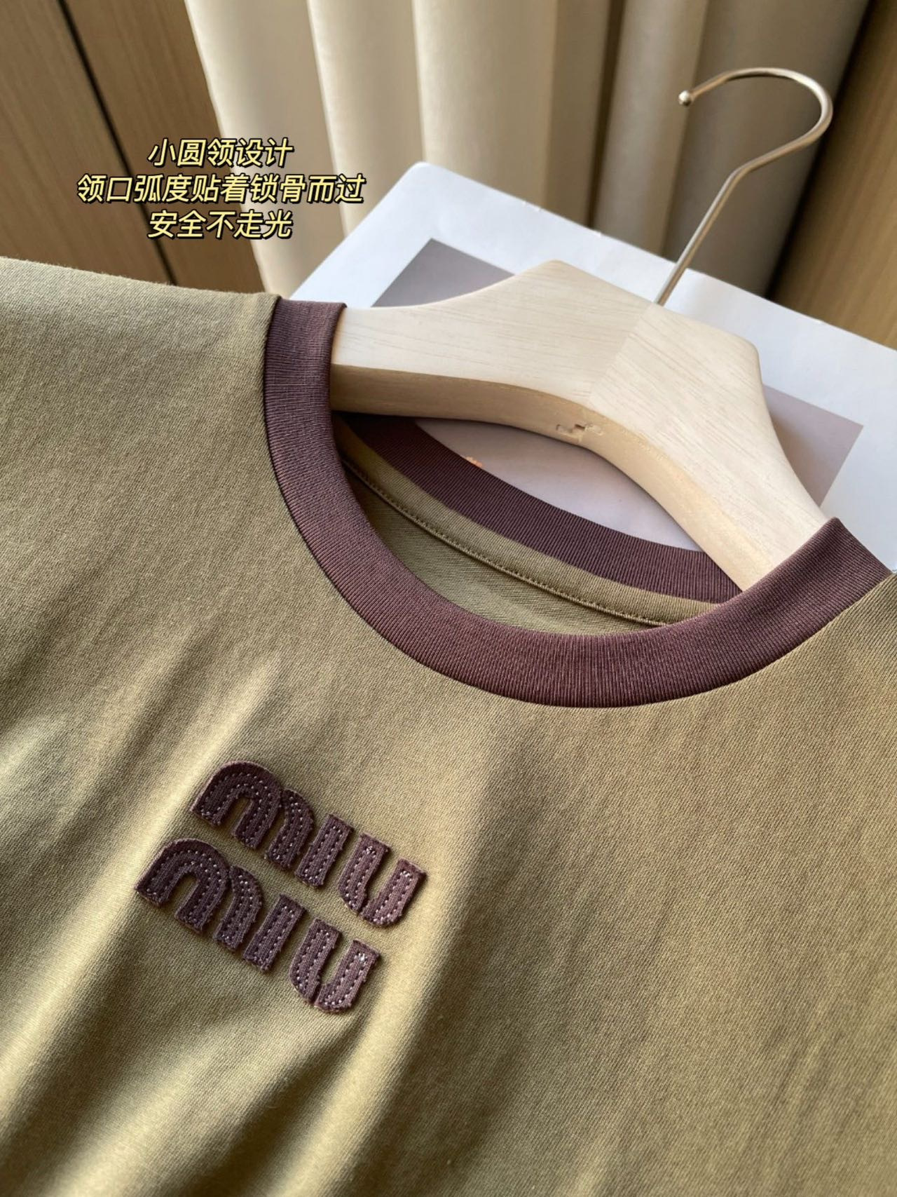 79 货号065233079 ye 撞色领橄榄绿短袖 这个款很修身,很辣妹,好特别的绿色!!甜酷辣妹❤️🔥浅miu一下咯😋松弛而自信miu式辣妹早已是next level