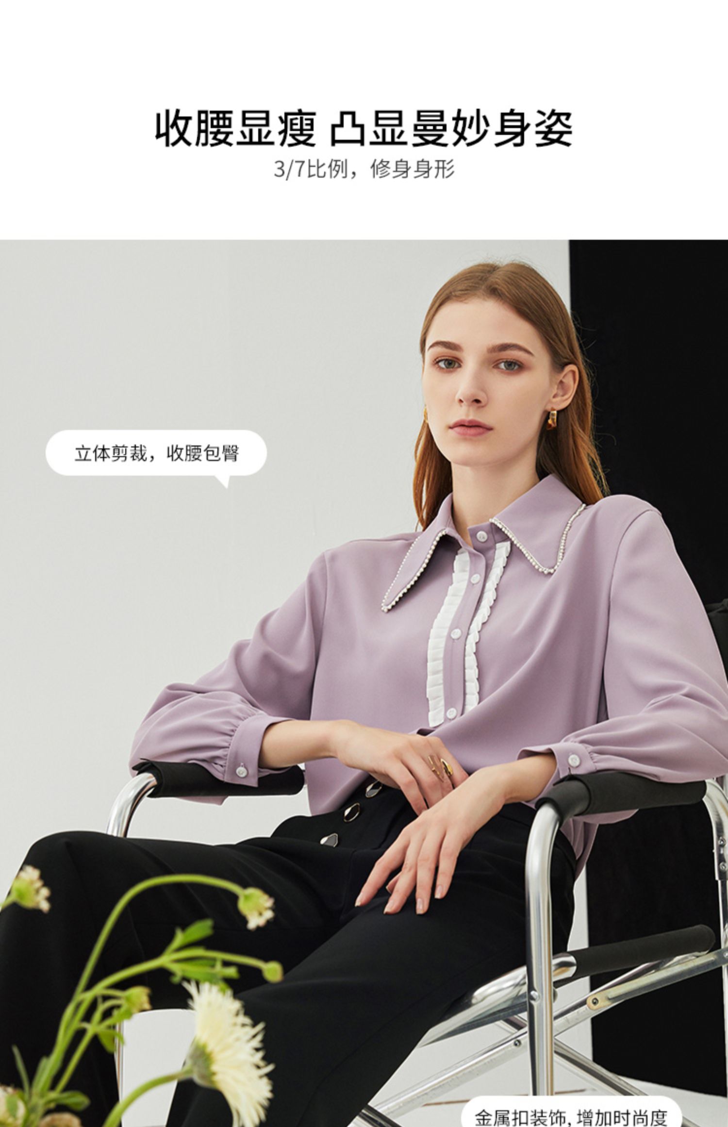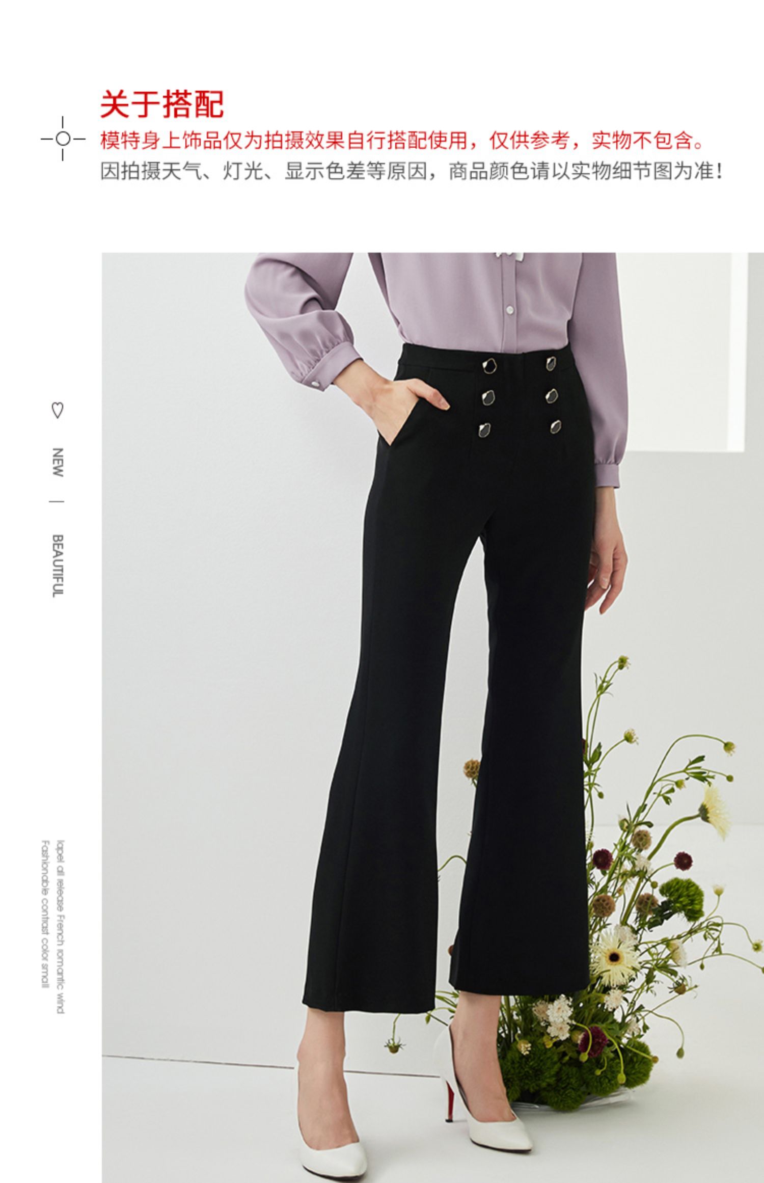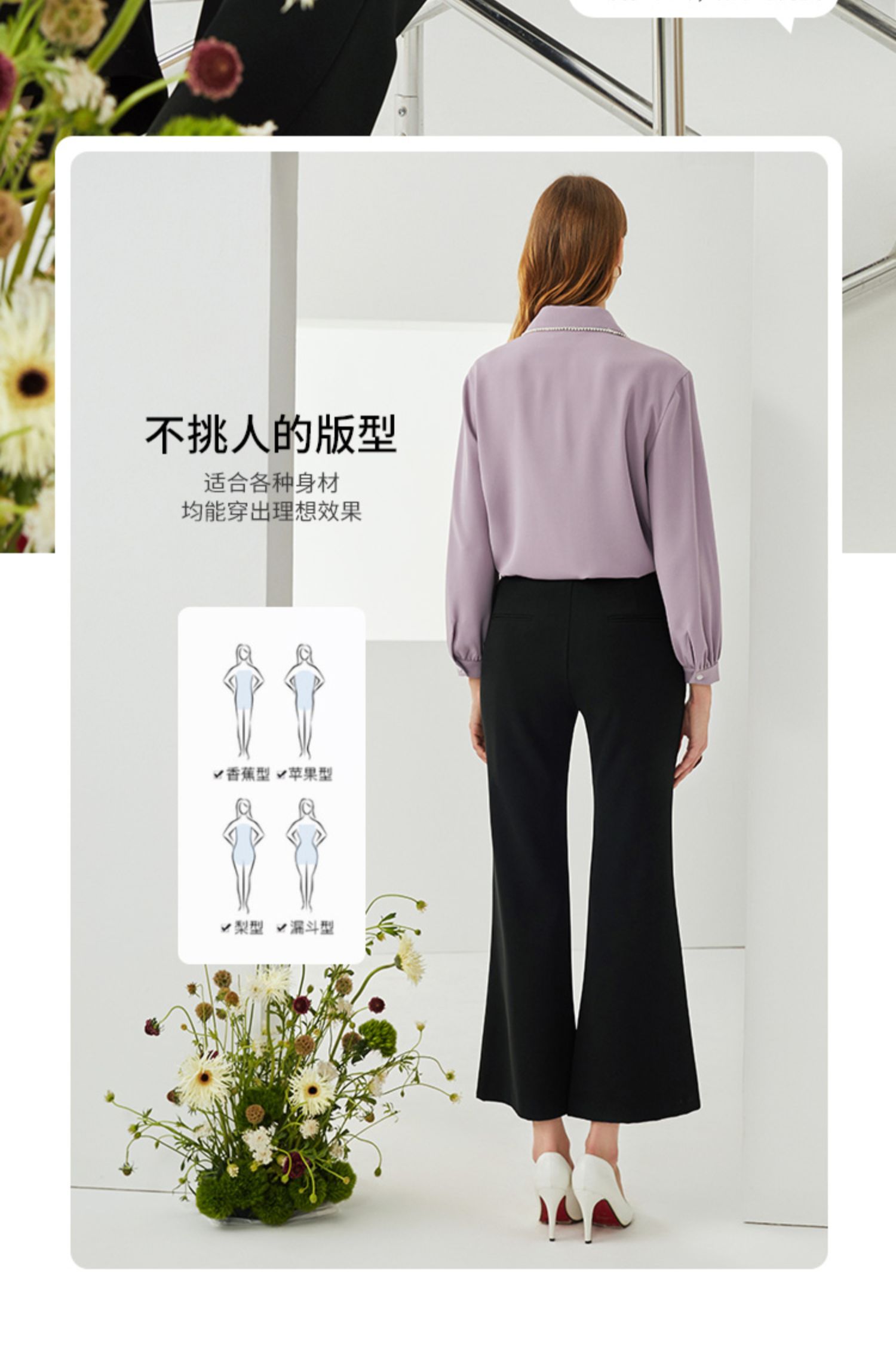 EITIE爱特爱通勤百搭职业显瘦微喇中腰休闲长裤女裤C2105806