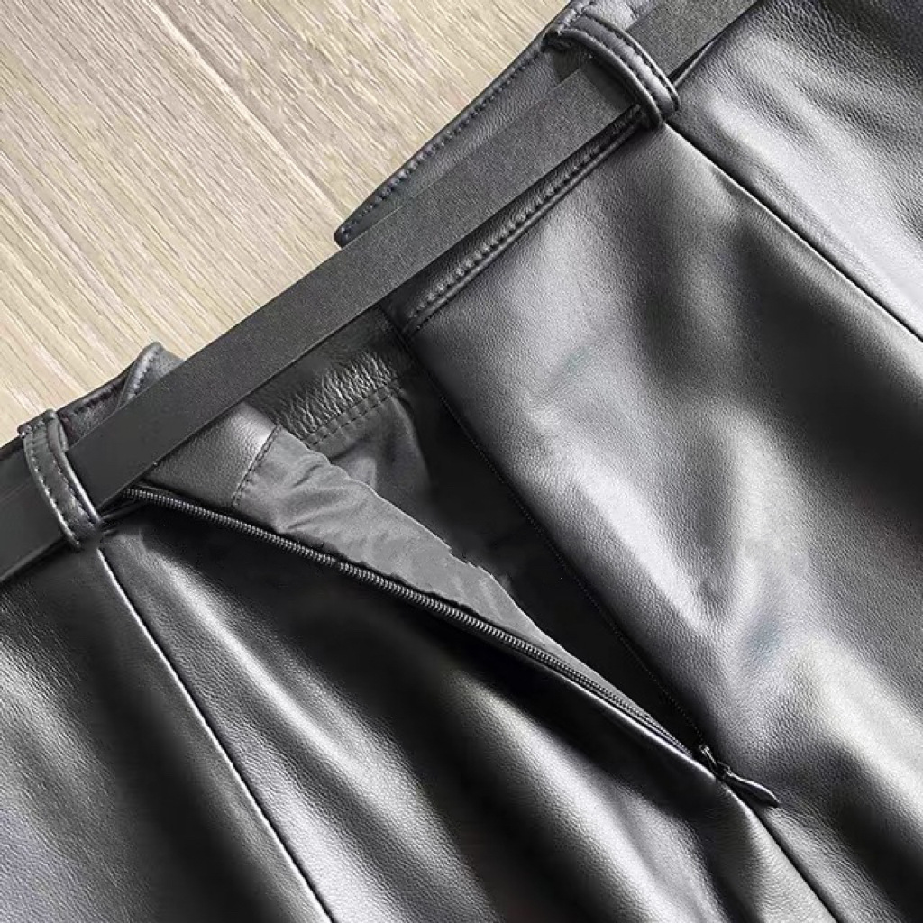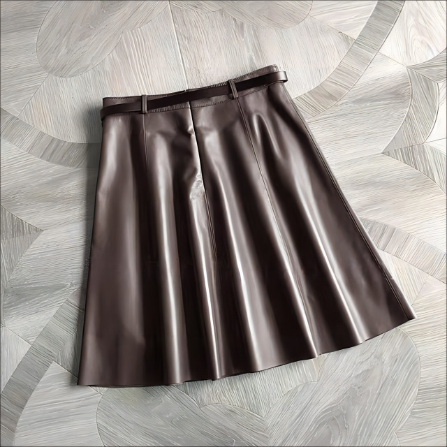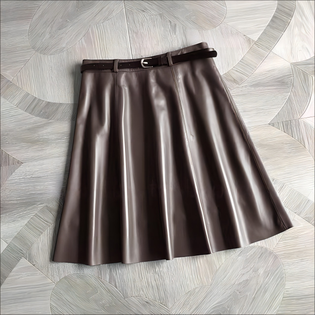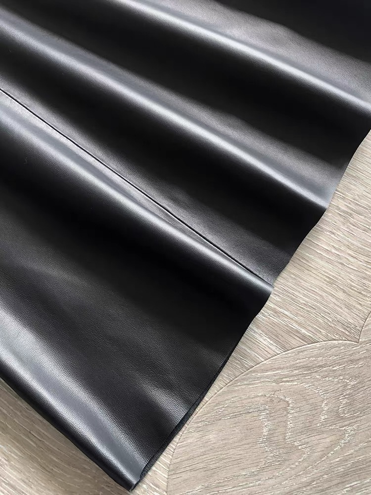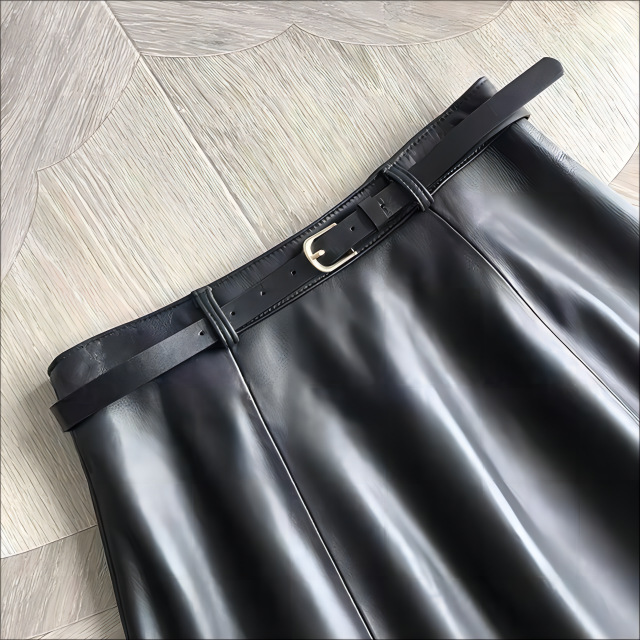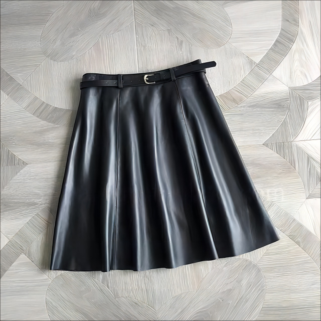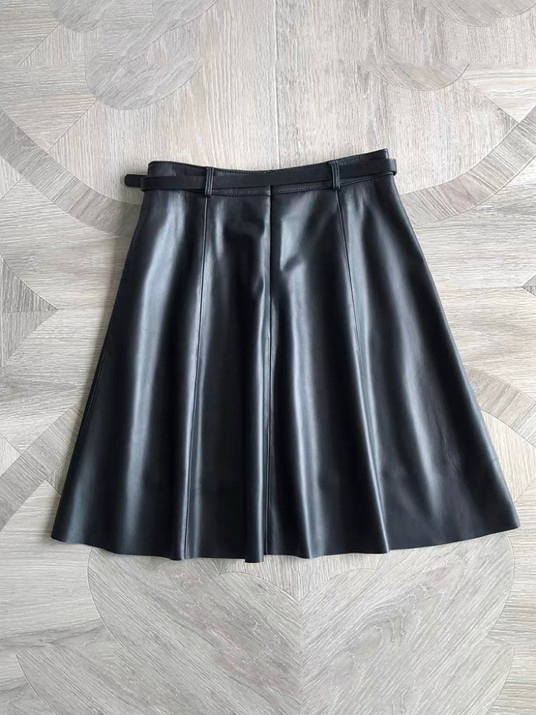 丁摩 真皮皮裙女高腰显瘦伞裙绵羊皮A字半身裙