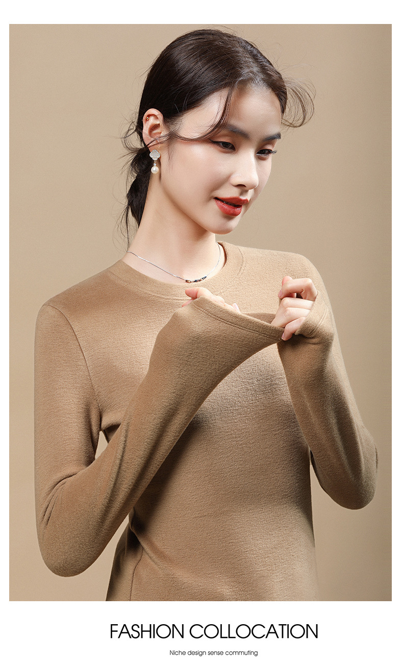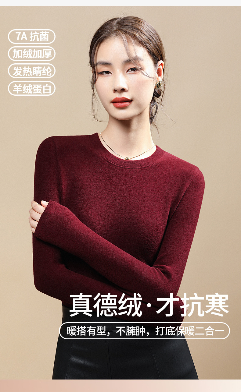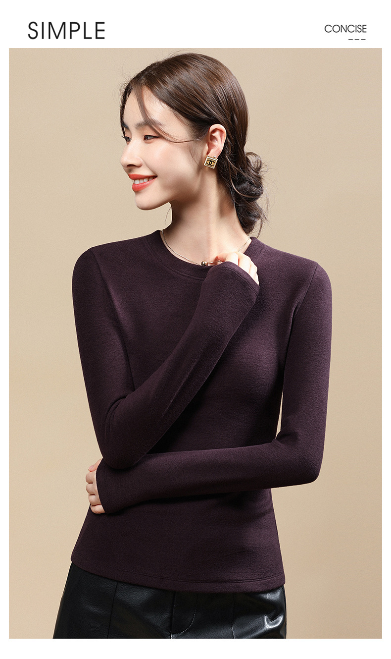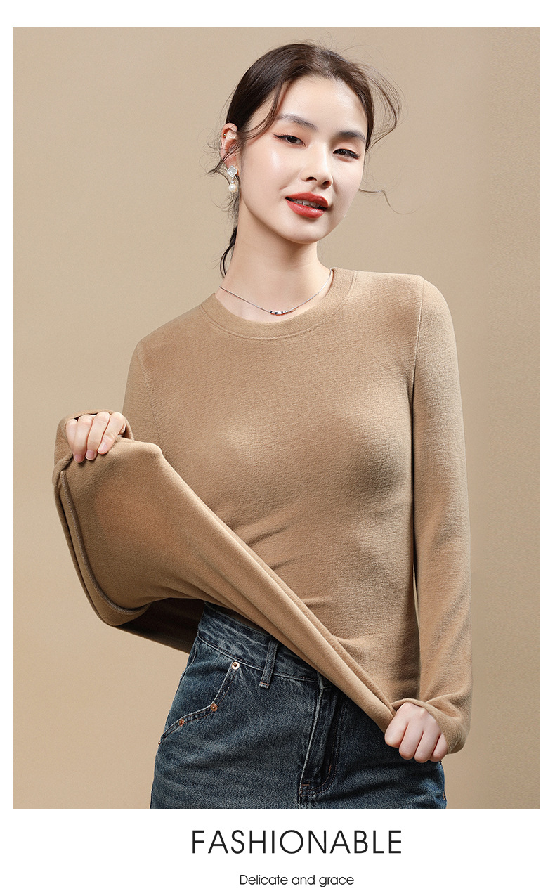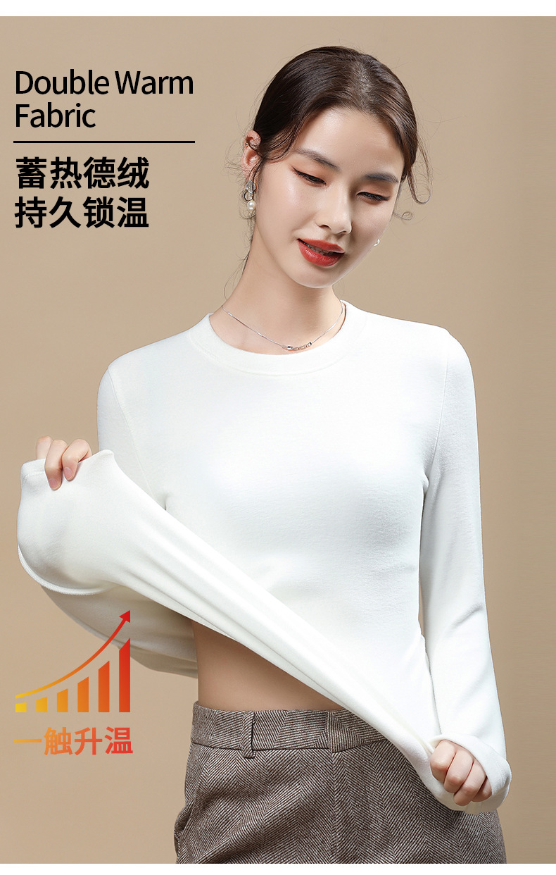 丁摩 德绒打底衫女秋冬内搭春秋圆领加厚加绒长袖t恤洋气上衣5ZF-202088