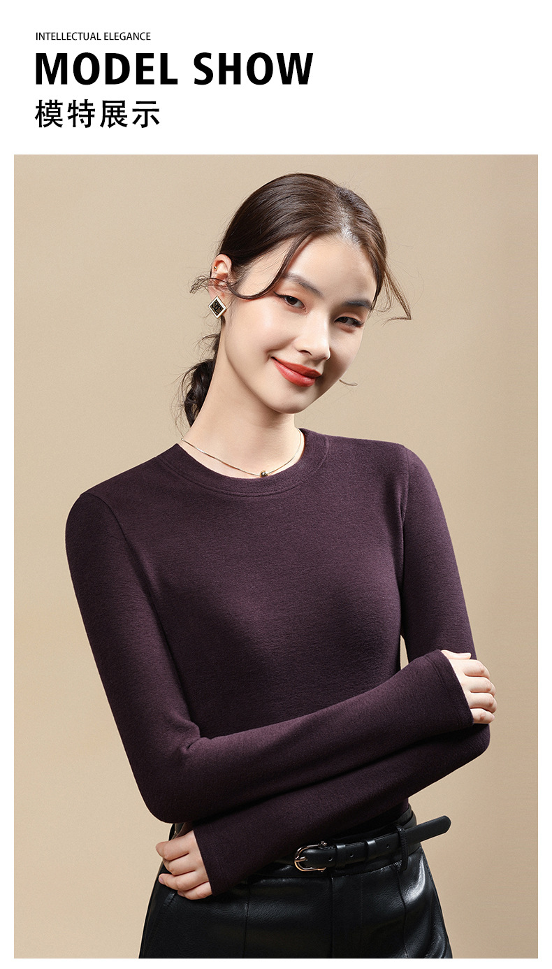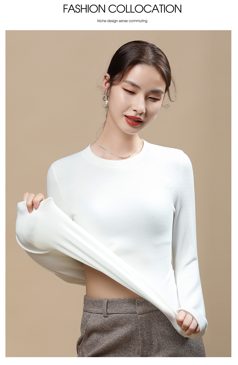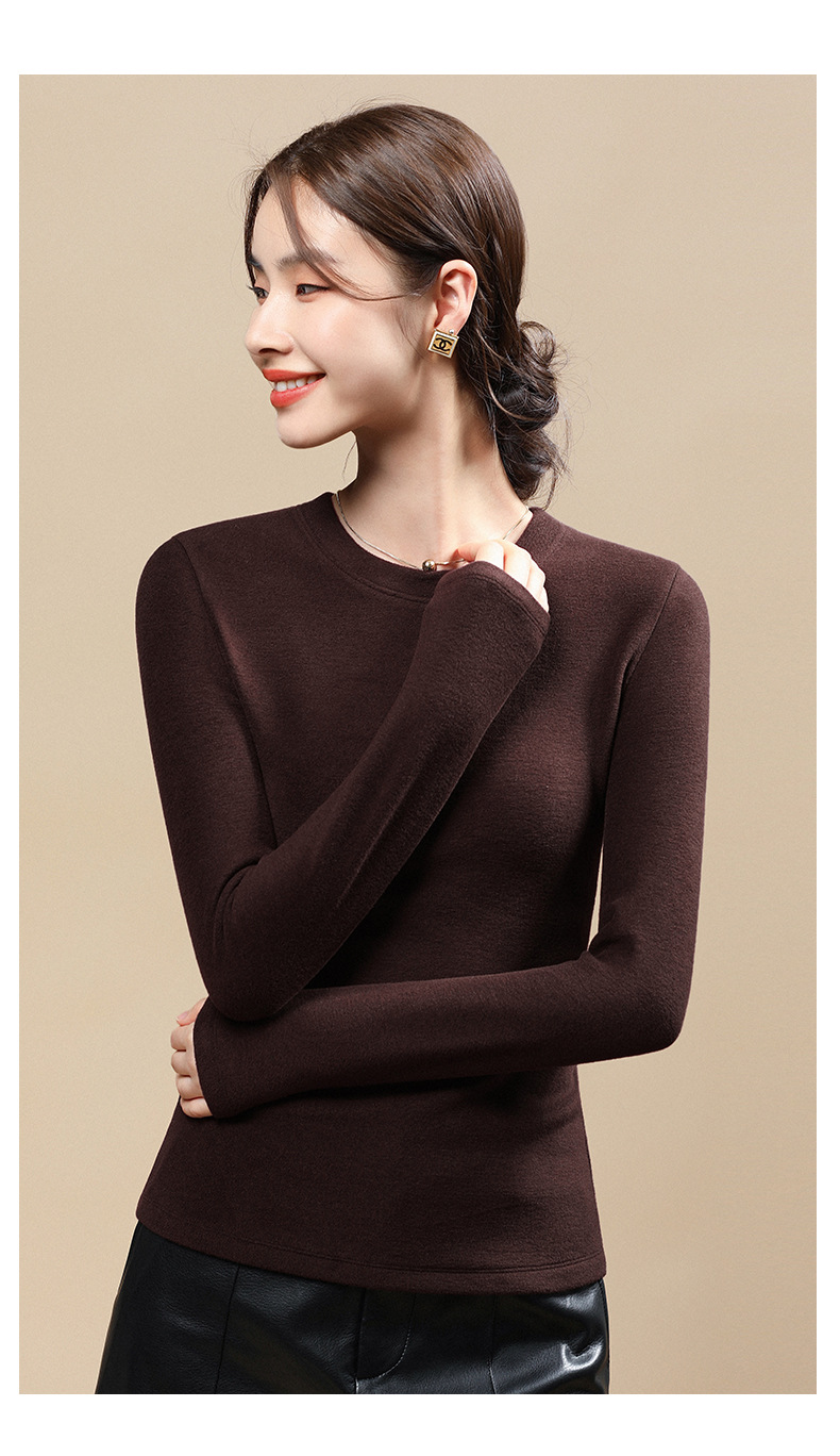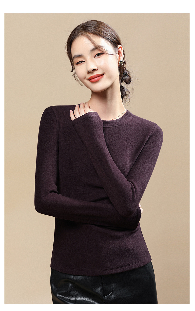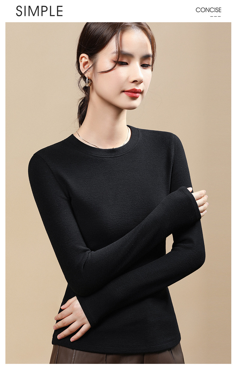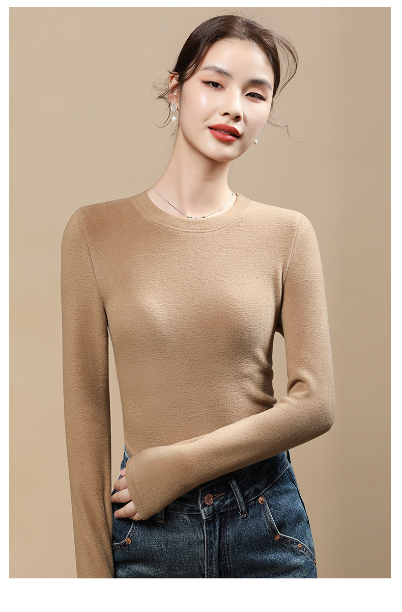 丁摩 德绒打底衫女秋冬内搭春秋圆领加厚加绒长袖t恤洋气上衣5ZF-202088