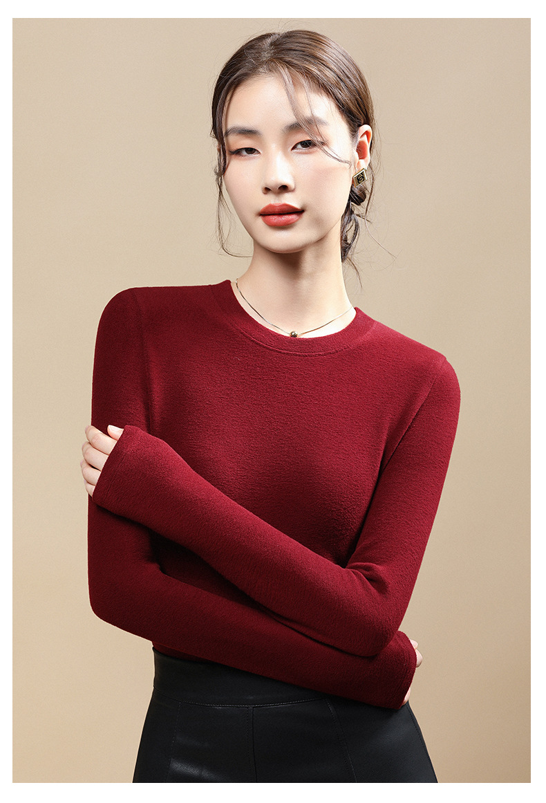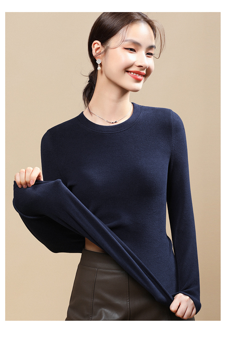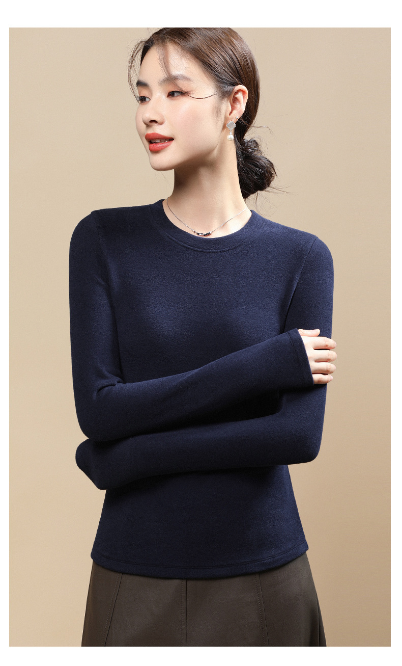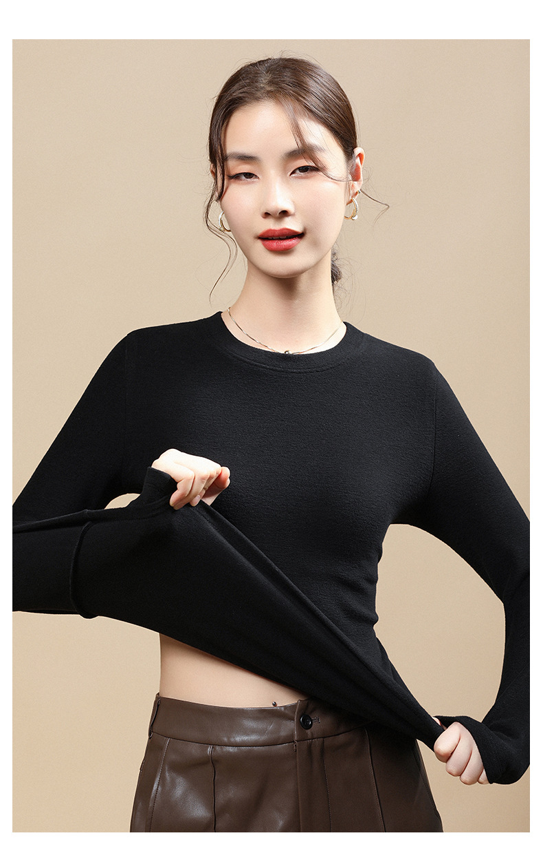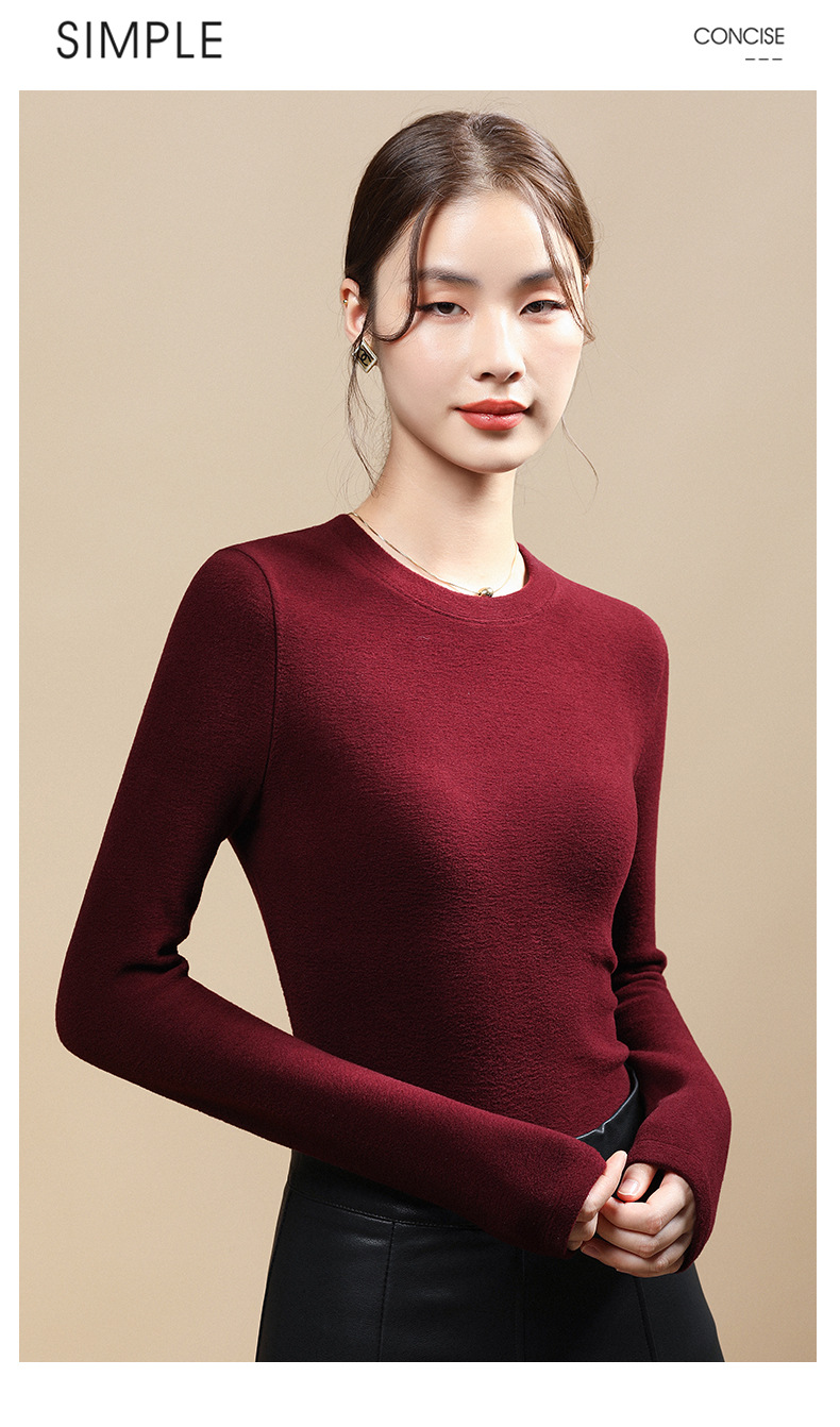 丁摩 德绒打底衫女秋冬内搭春秋圆领加厚加绒长袖t恤洋气上衣5ZF-202088