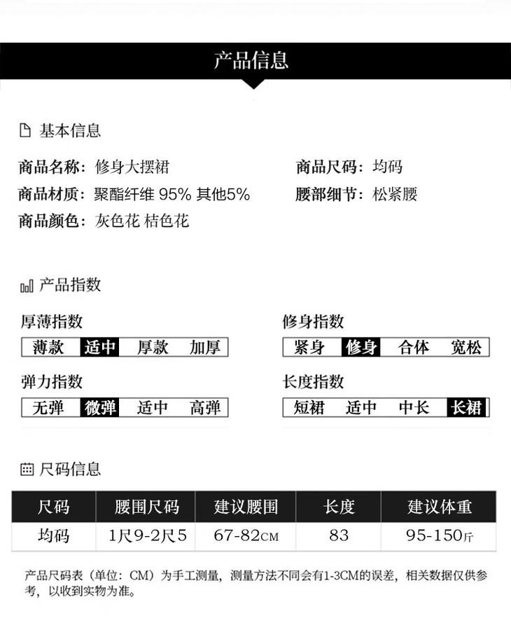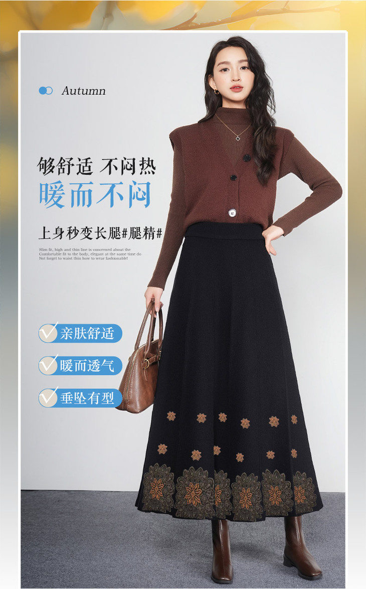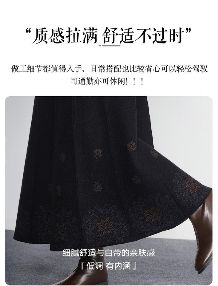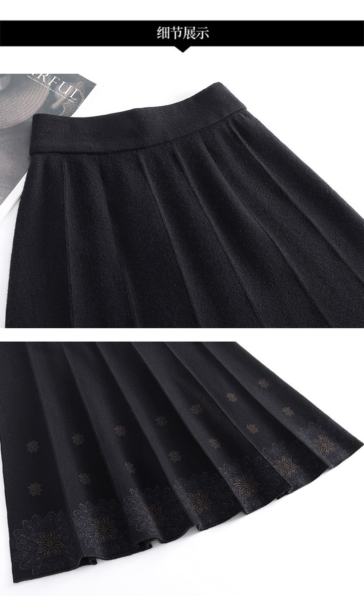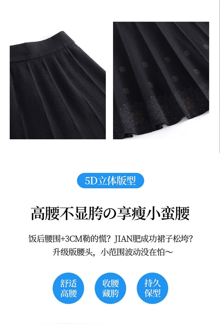 冬款针织印花毛线大摆裙,松紧腰垂感修身百褶A字裙MYX8302 商品图2