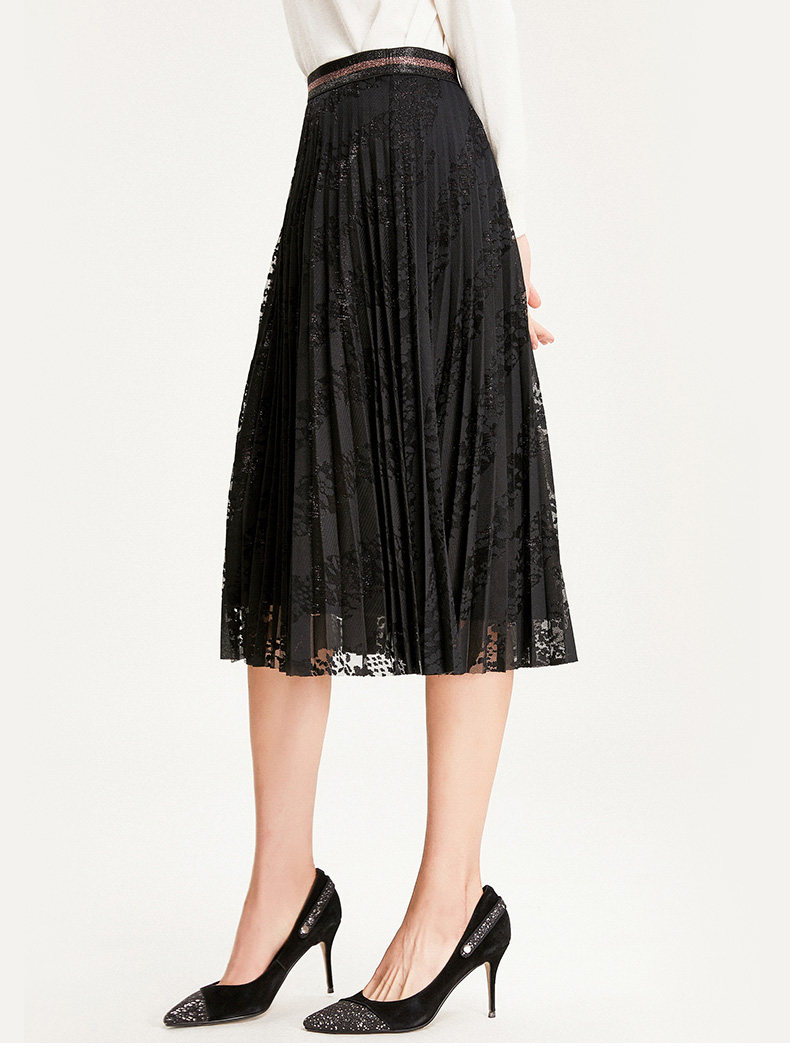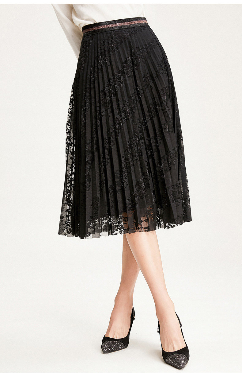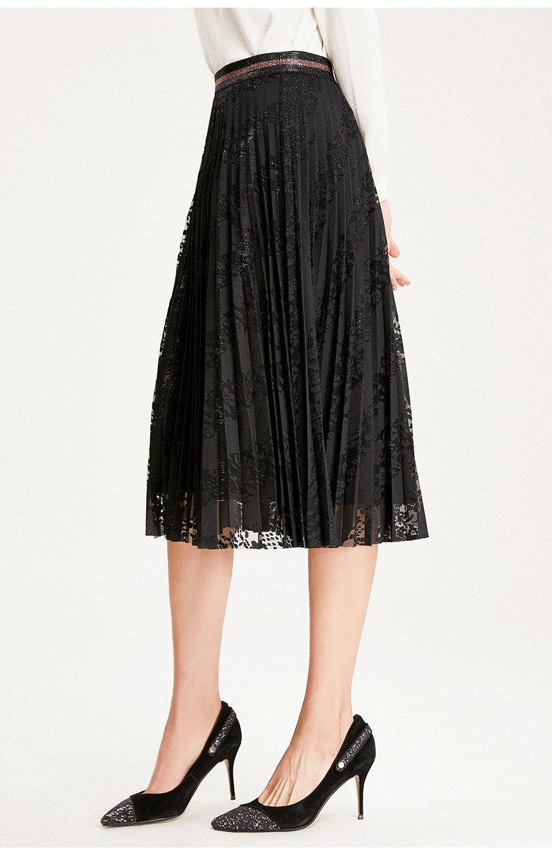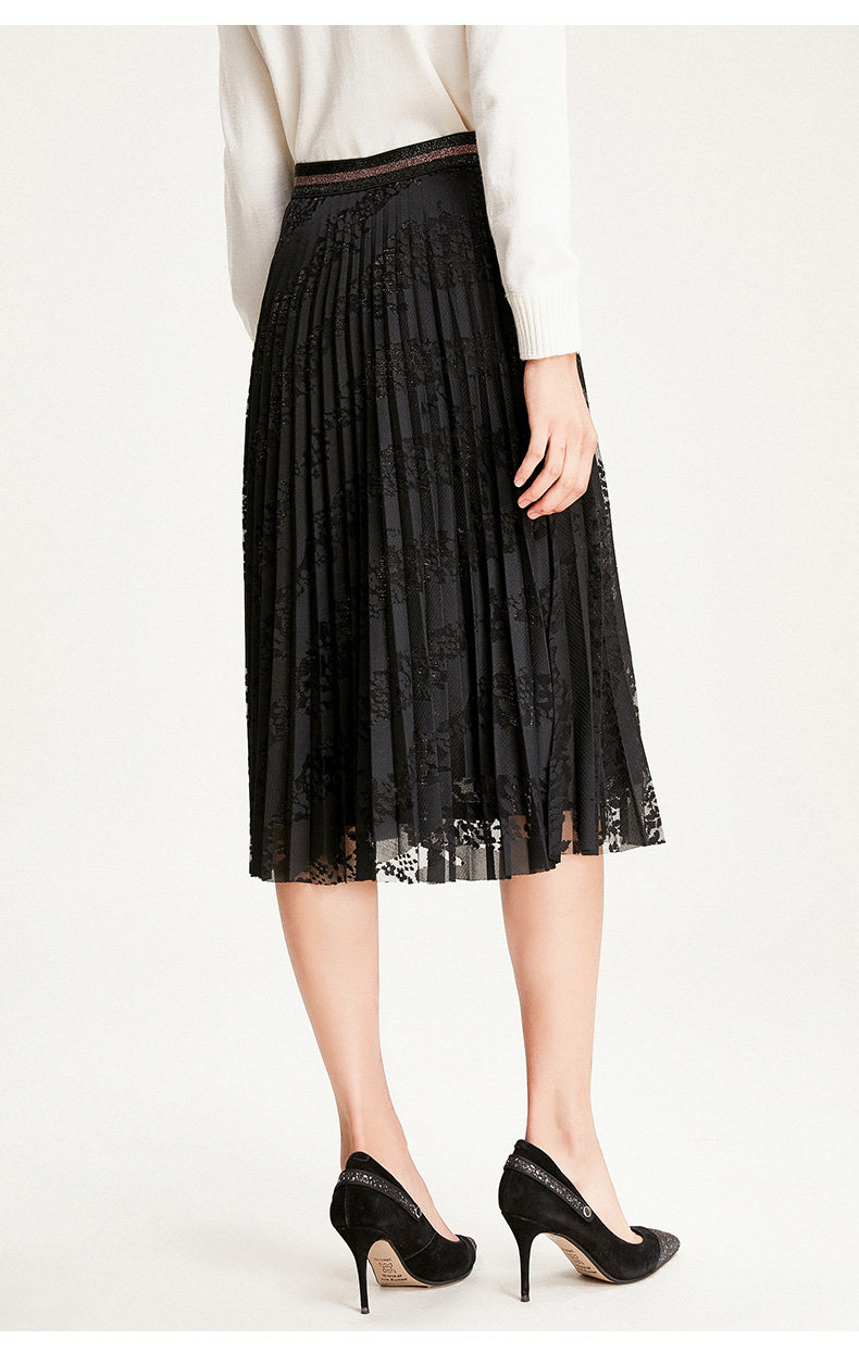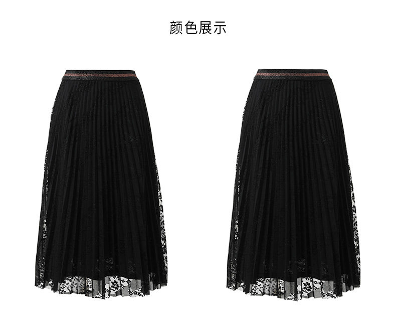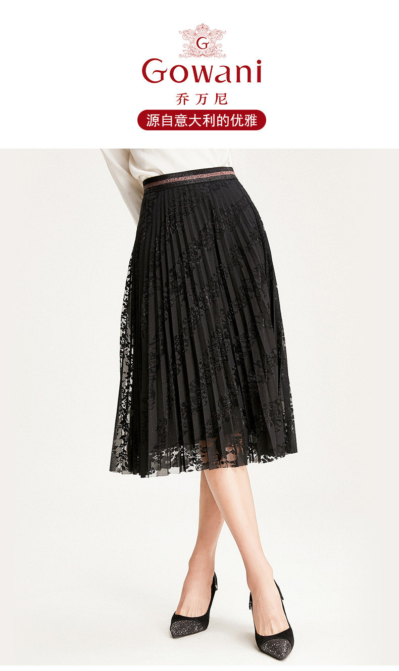 乔万尼半身裙冬季时尚气质百褶裙黑色显瘦中长款a字裙EN4D767