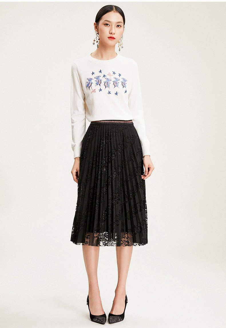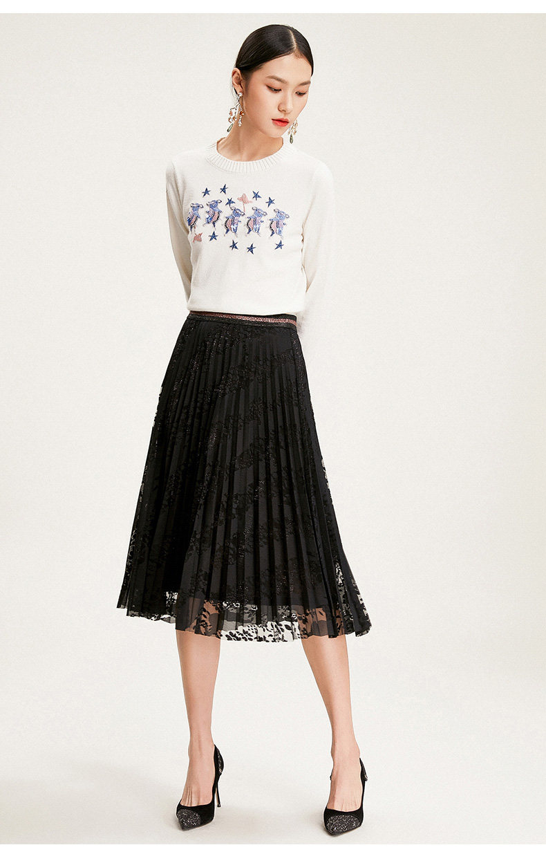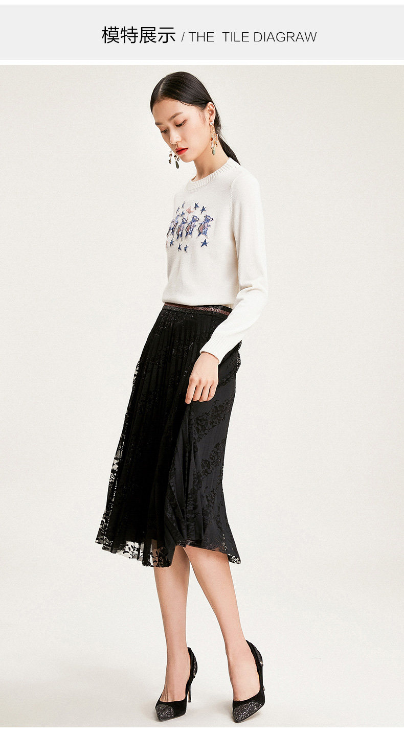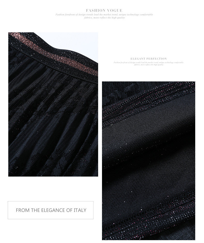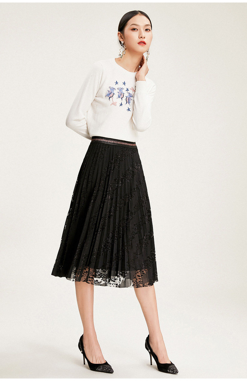 乔万尼半身裙冬季时尚气质百褶裙黑色显瘦中长款a字裙EN4D767