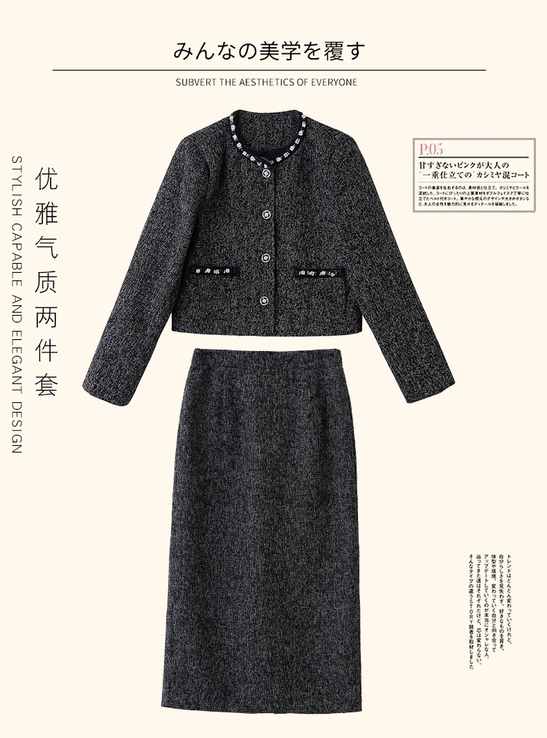 丁摩 小香风外套半身裙两件套女秋季气质名媛洋气穿搭套装5ZF-86179 商品图1