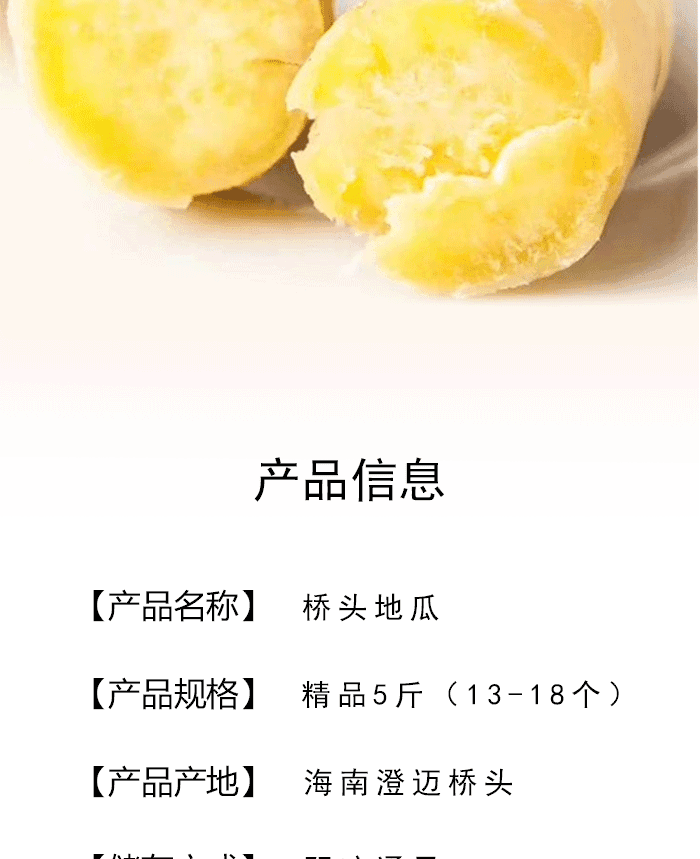 品名:海南正宗桥头富硒地瓜 规格1:5斤精品小果普通箱(单果约40~100g) 规格2:5斤精品大果礼盒装(单果约200~400g);拍几份发几个包裹,不一定能同时到达,请耐心等待; 发货地/产地:海南 包装方式:普通箱@礼盒装 物流信息:默认中通/圆通/极兔快递,不支持指定快递 发货区域:新疆、西藏不发;甘肃、青海、宁夏、内蒙、黑龙江、辽宁、吉林+5元; 物流详情:周六、周日及节假日除外,正常48小时内发货,到货时间约为2~5天,请耐心等待 售后说明:收到货后有质量问题,在24小时内都可以拍照(坏品+快递单面箱子一起拍)上传,申请按坏品比例理赔或联系客服,生鲜性质特殊,不支持7天无理由退换货;因地址错误,手机号联系不上,拒收等造成的损失无法售后,请理解; |