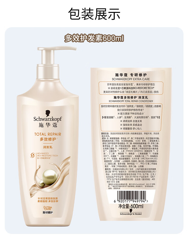 施华蔻(Schwarzkopf)新多效修护润发乳600ml{专柜渠道}