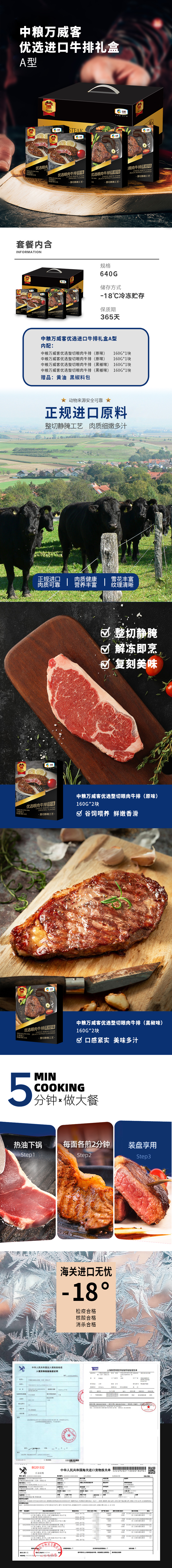 杞冠臻选 | 中粮万威客优选进口牛排礼盒A型 整切眼肉牛排(原味160g*2块)(黑椒味160g*2块)