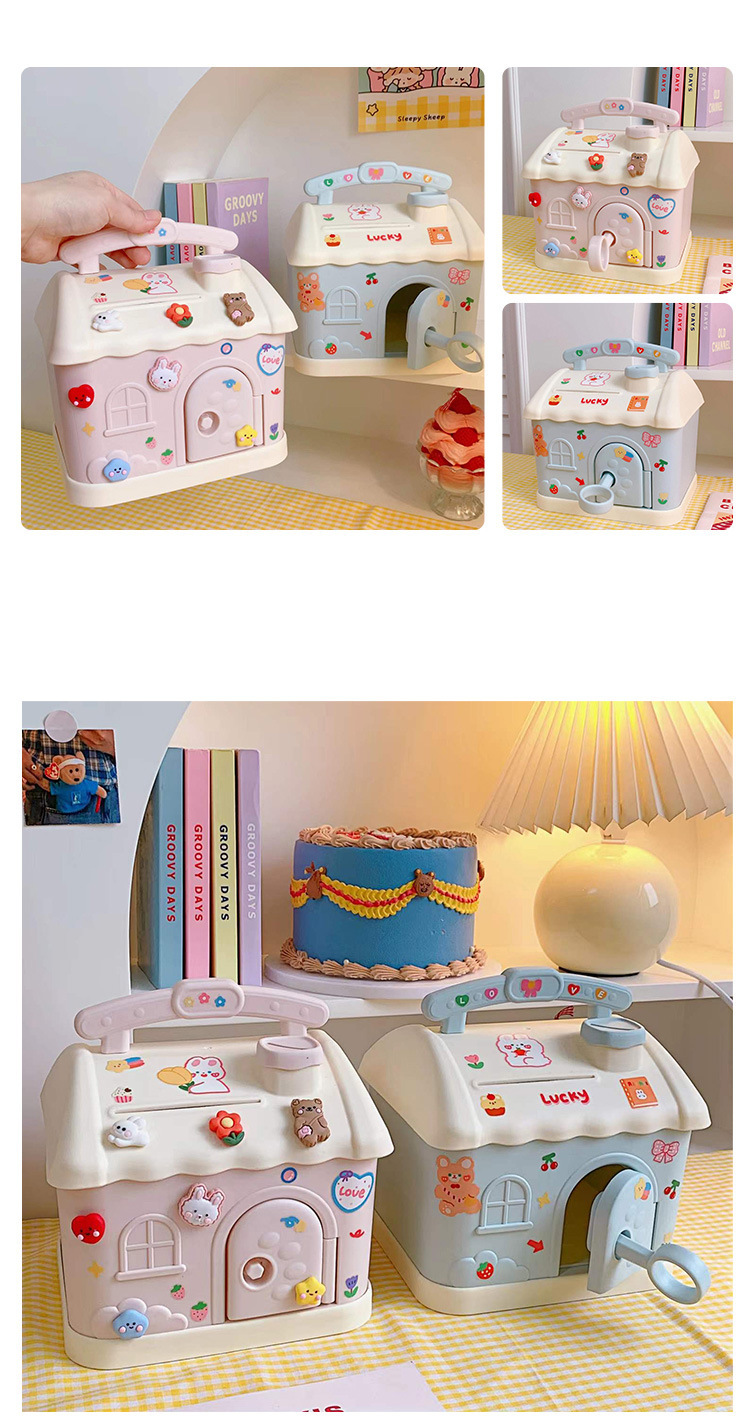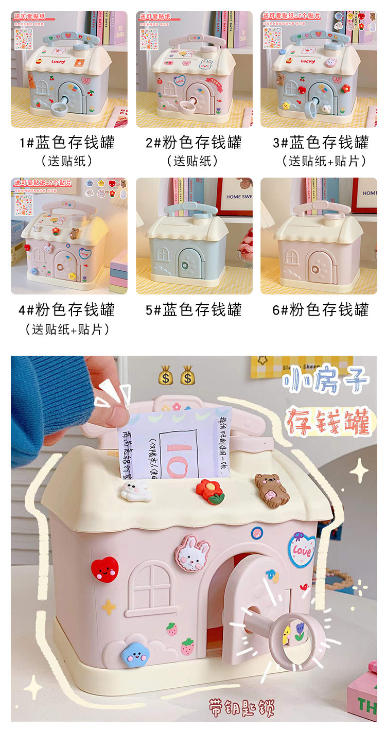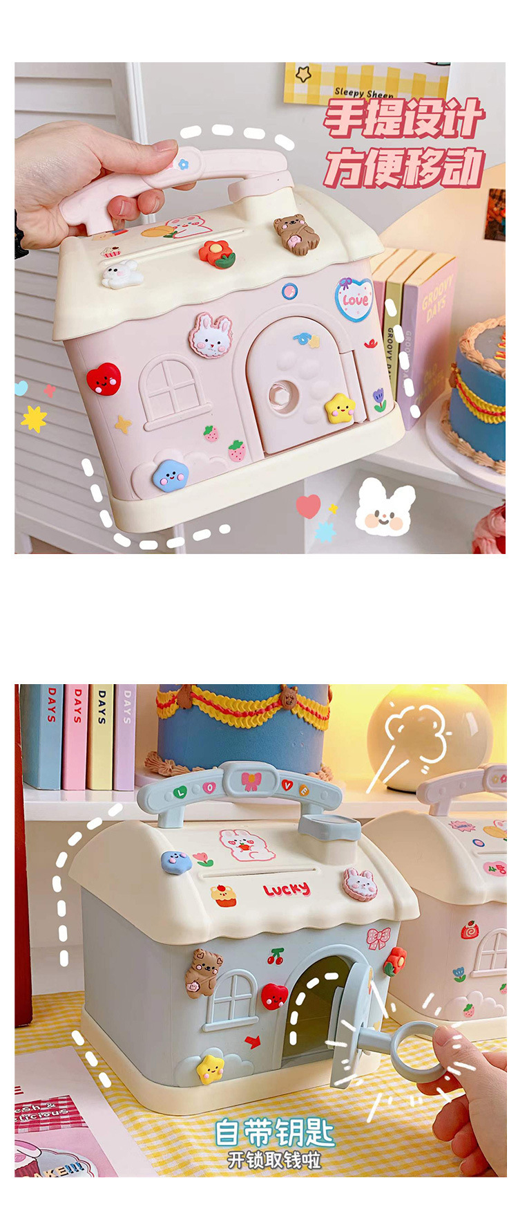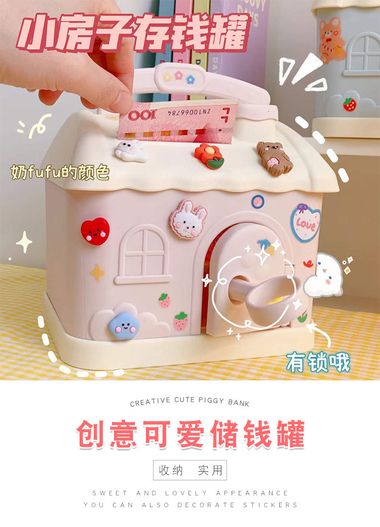 【奶fufu的颜色,创意可爱储钱罐~】配钥匙 小屋存钱罐 储蓄罐 创意卡通造型 可爱小房子 可取存大容量 塑料储钱罐-QQ