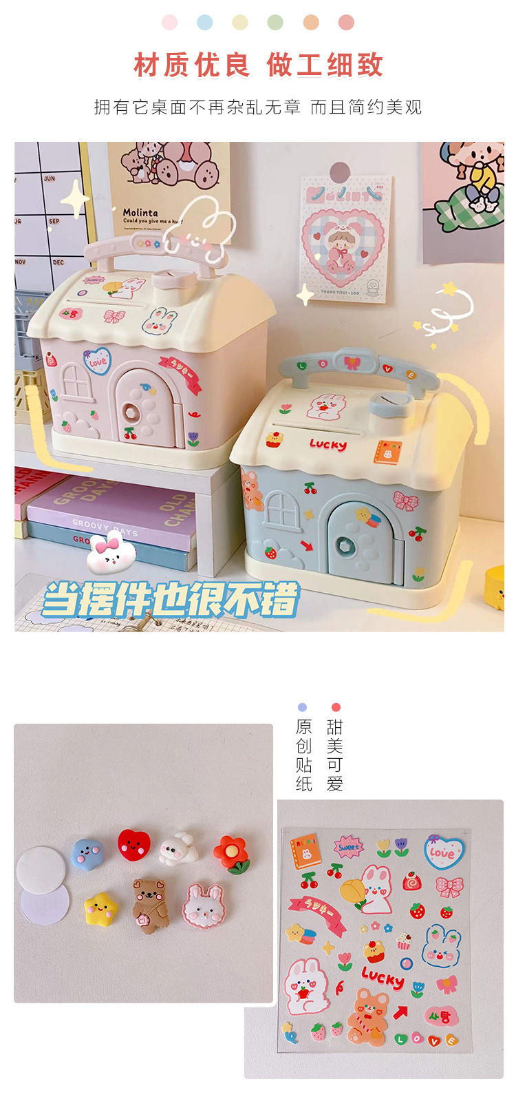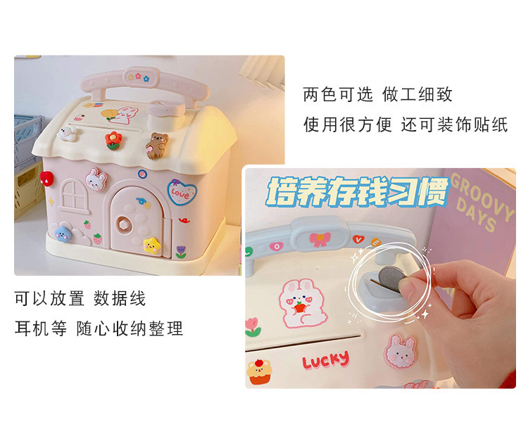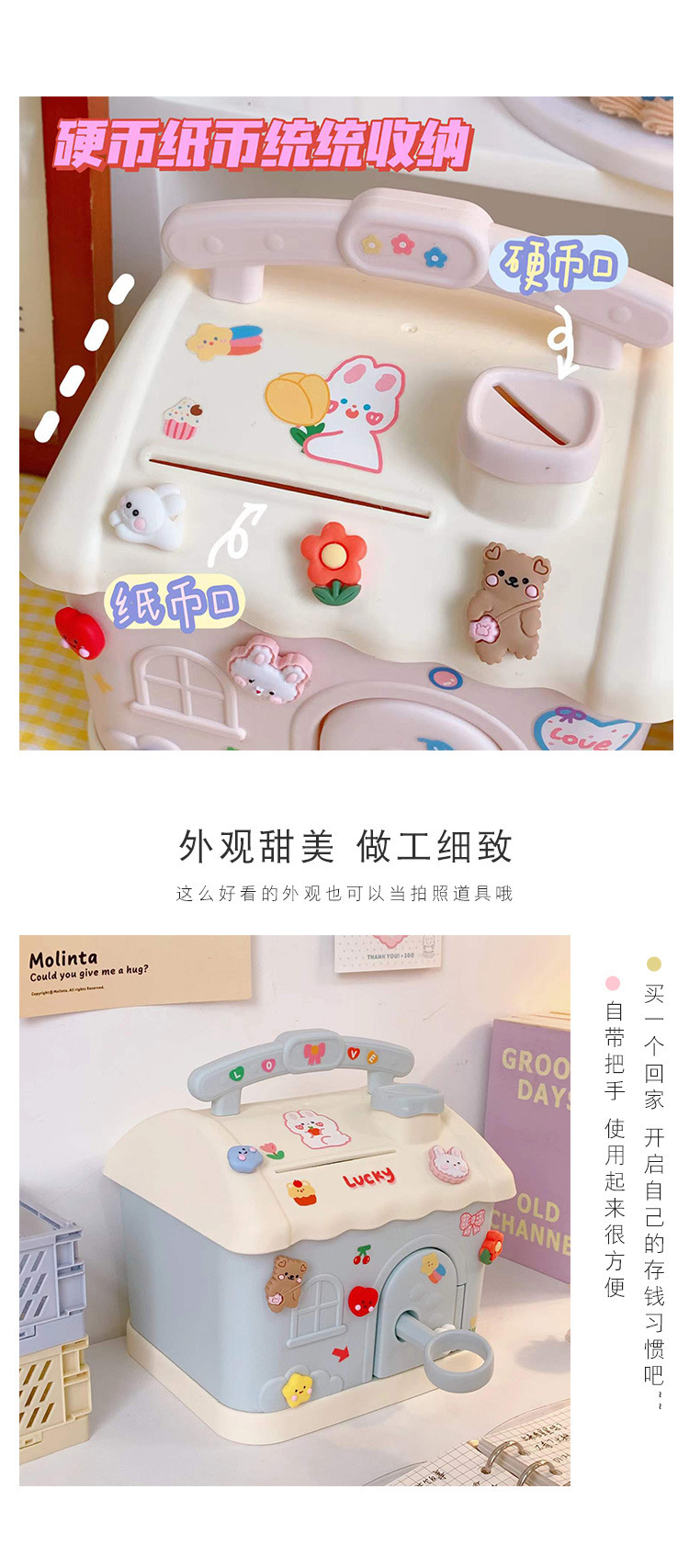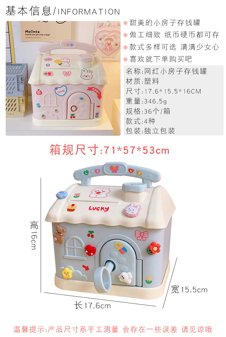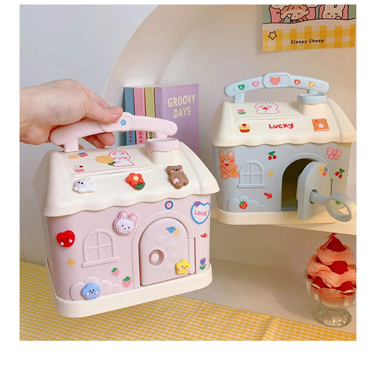 【奶fufu的颜色,创意可爱储钱罐~】配钥匙 小屋存钱罐 储蓄罐 创意卡通造型 可爱小房子 可取存大容量 塑料储钱罐-QQ