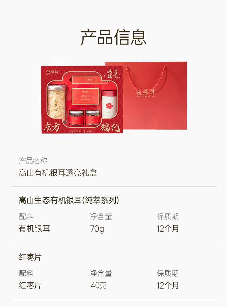 【滋补养生】金燕耳K纯萃70g透明礼盒A 高山生态有机银耳纯萃系列