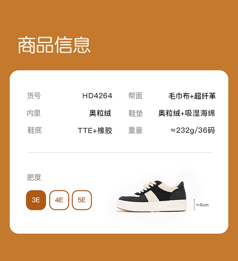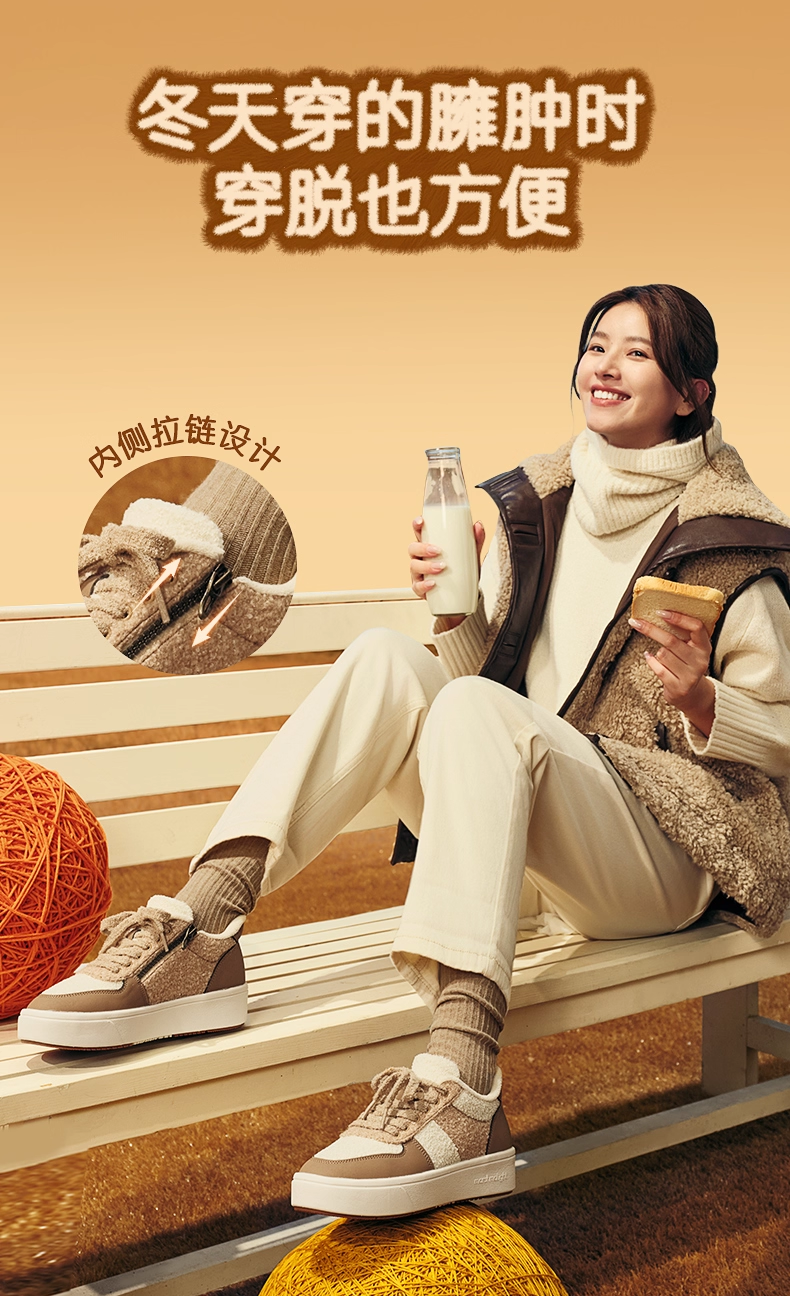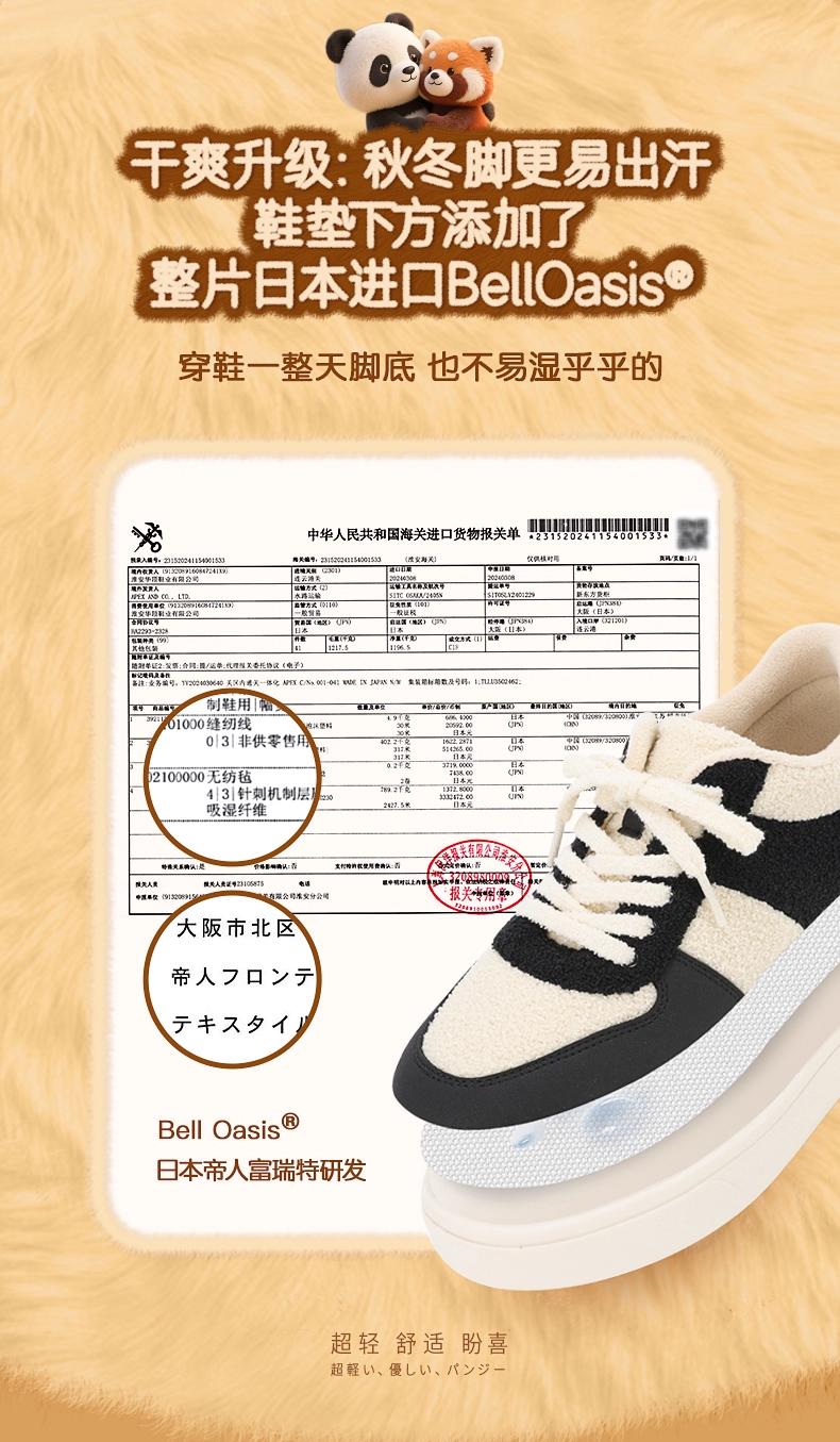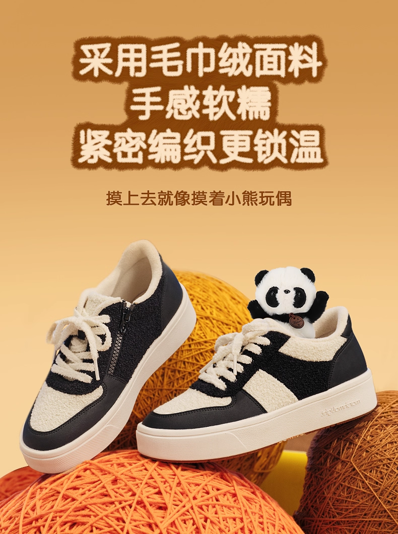Pansy盼喜日本女鞋超轻舒适软底毛绒保暖拼色板鞋 新款HD4264