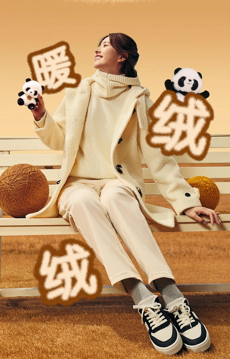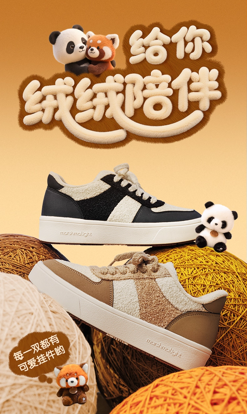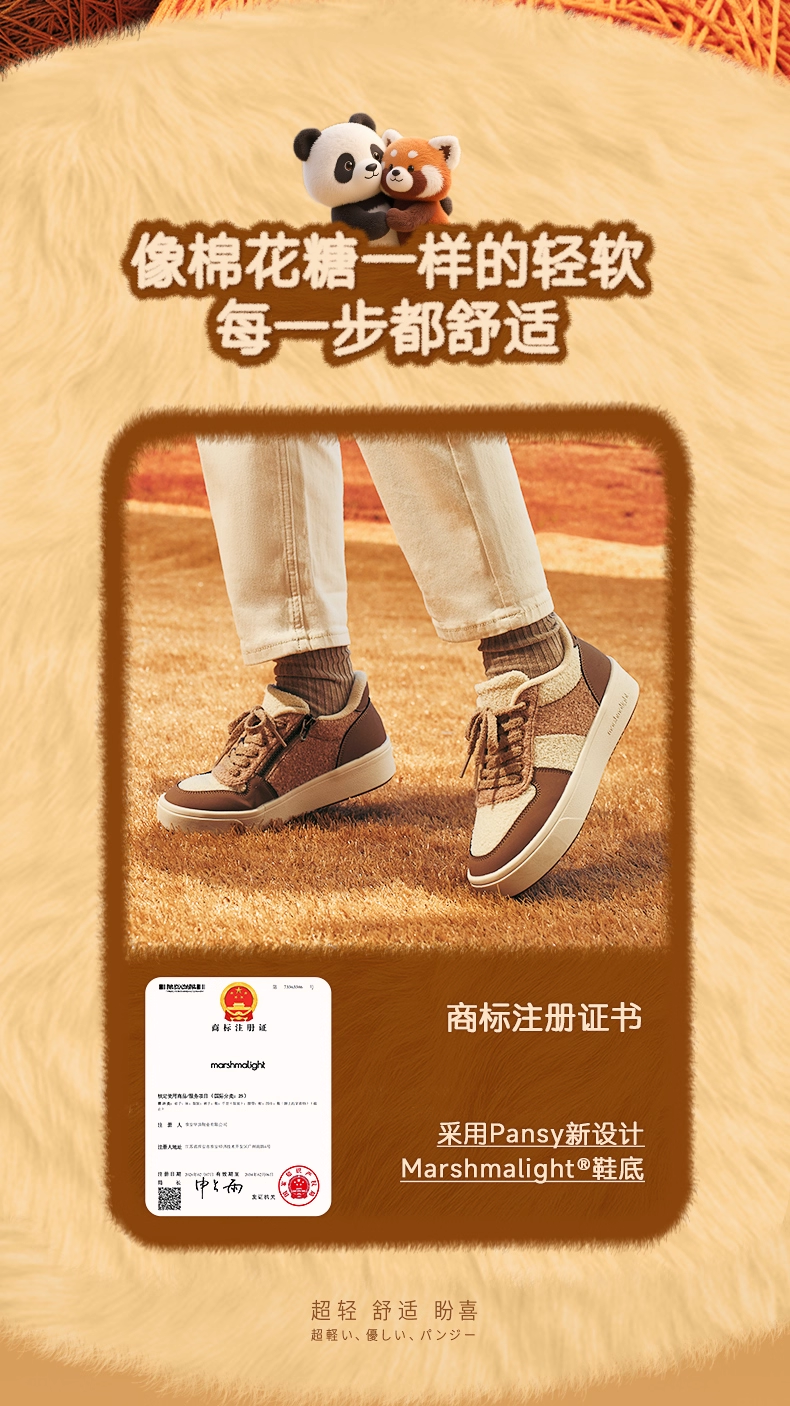 Pansy盼喜日本女鞋超轻舒适软底毛绒保暖拼色板鞋 新款HD4264