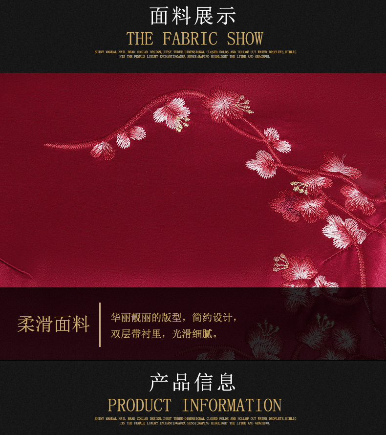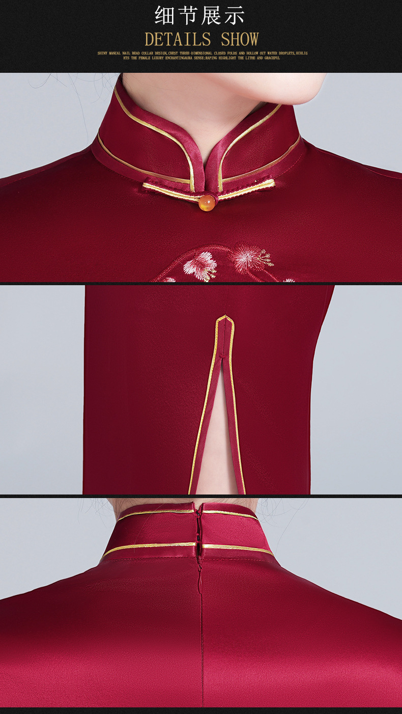 LHS-301款喜婆婆旗袍改良酒红刺绣高贵婚宴装婚庆敬酒礼服中长款