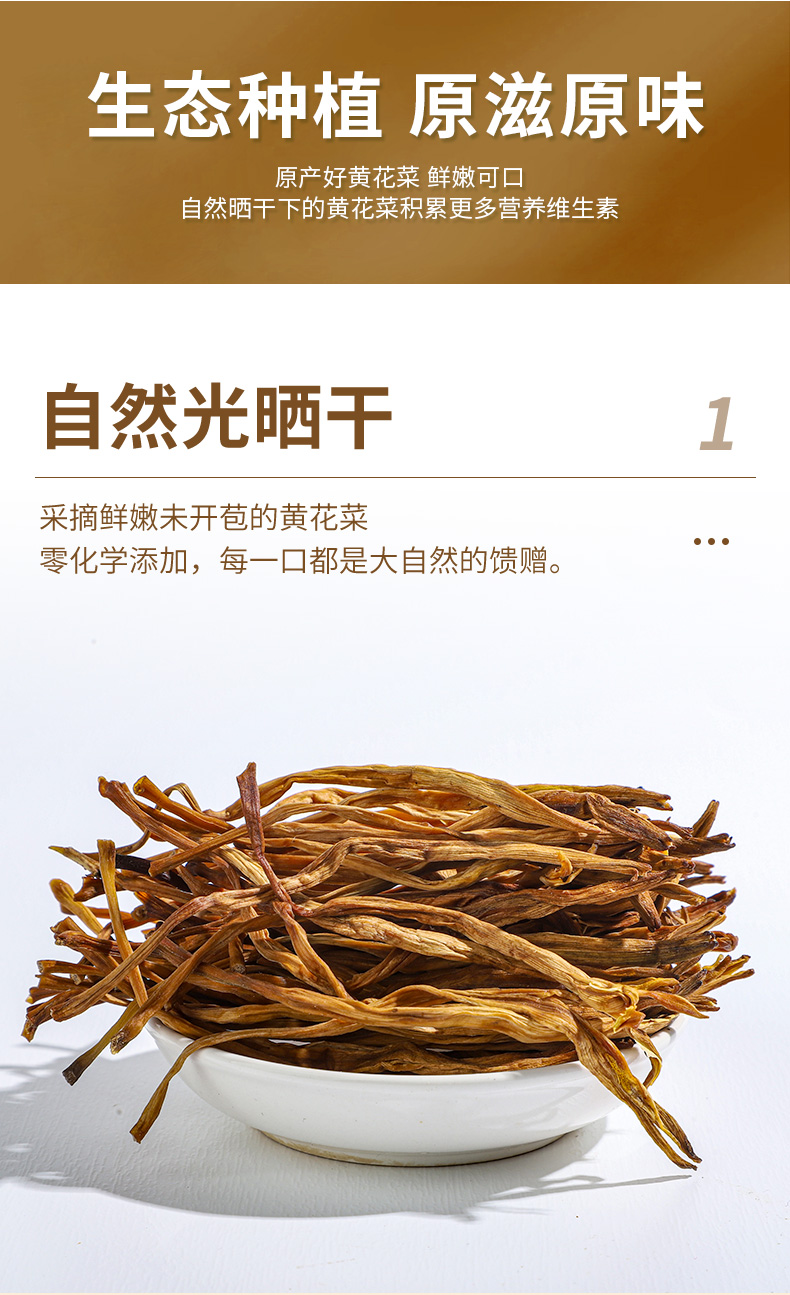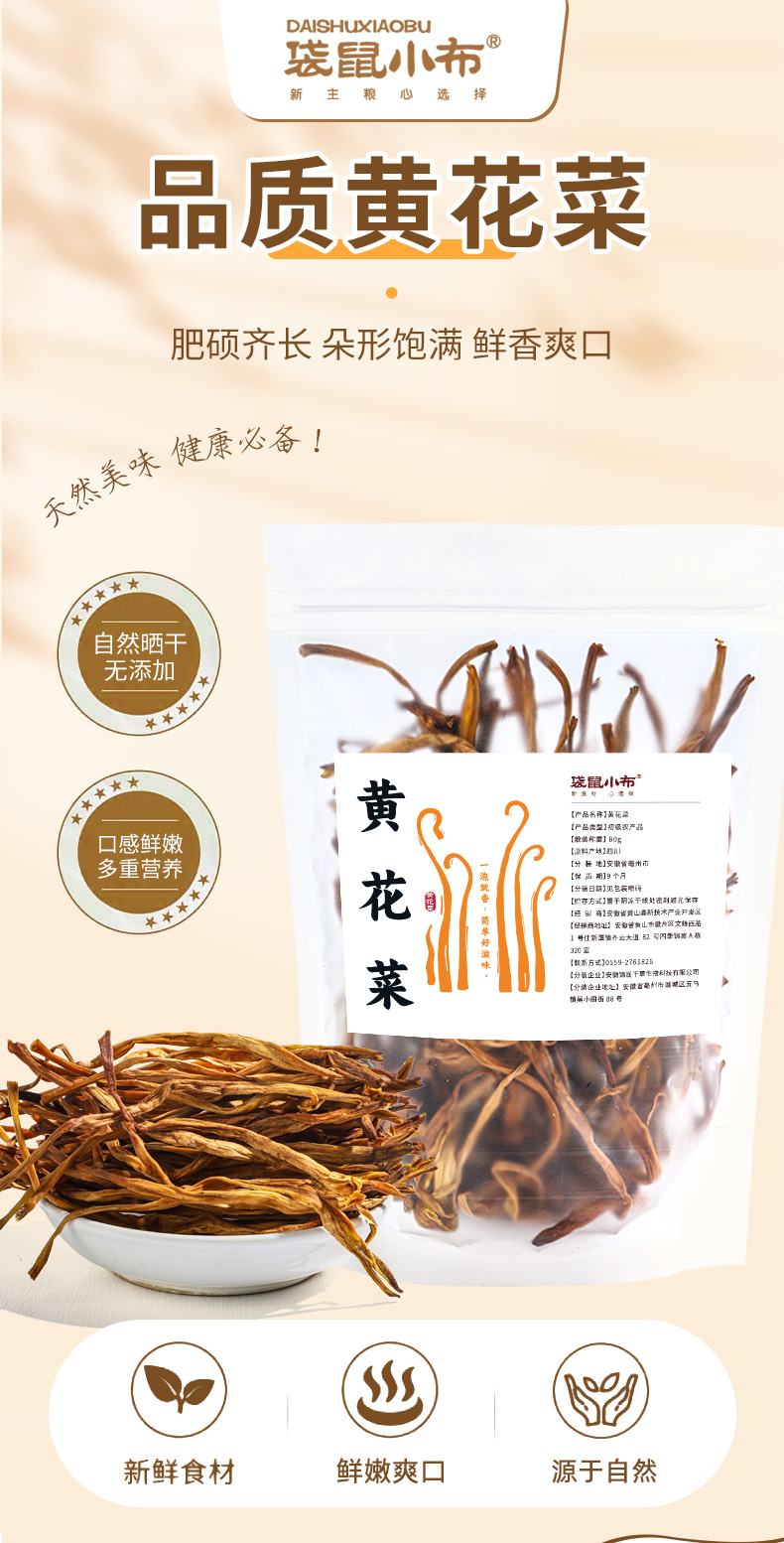 袋鼠小布农家无熏硫黄花菜干 (煲汤/凉拌/火锅) 80g/袋