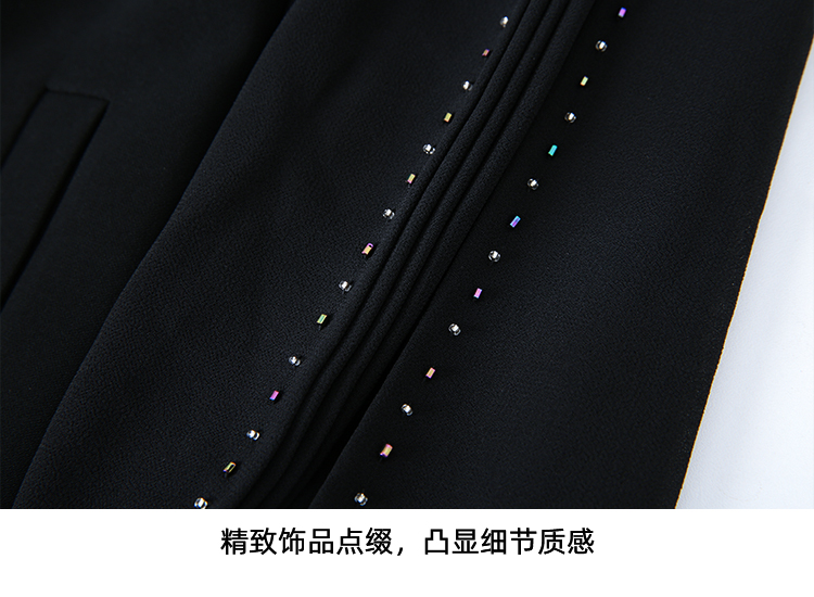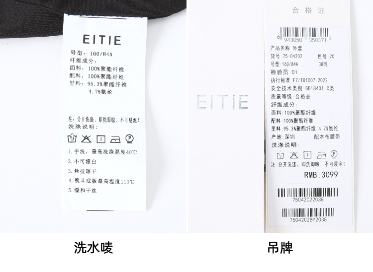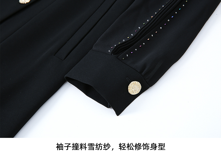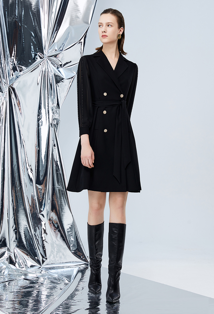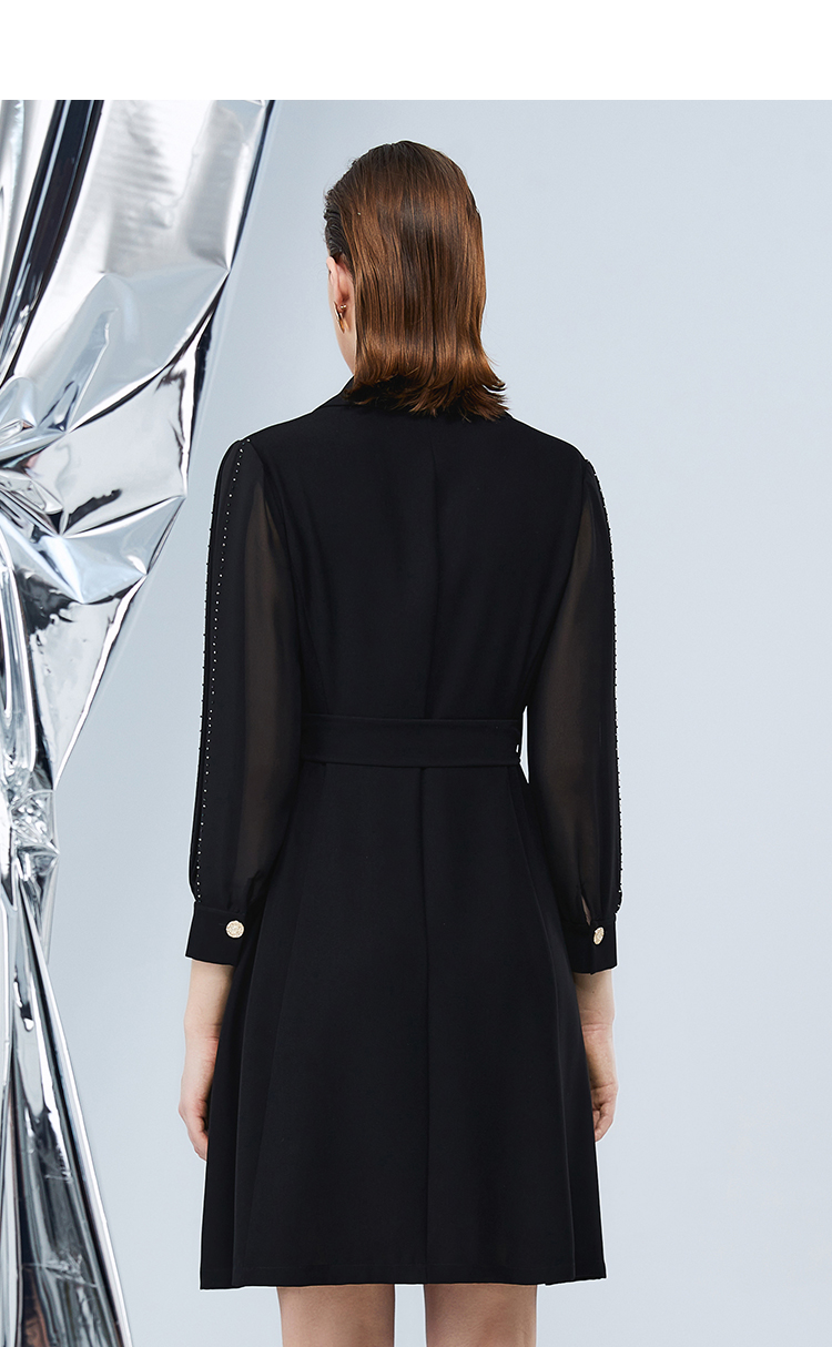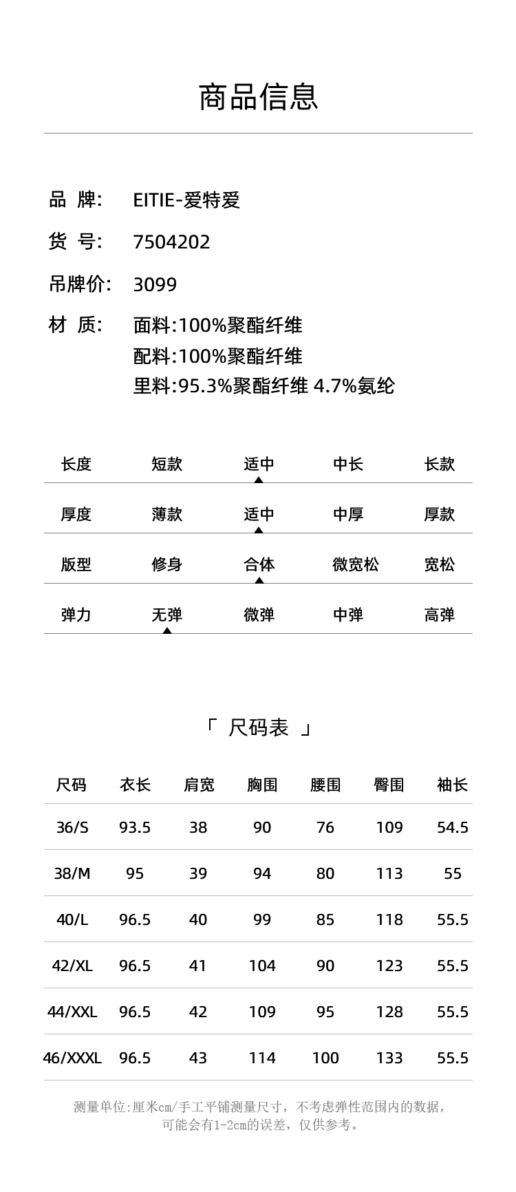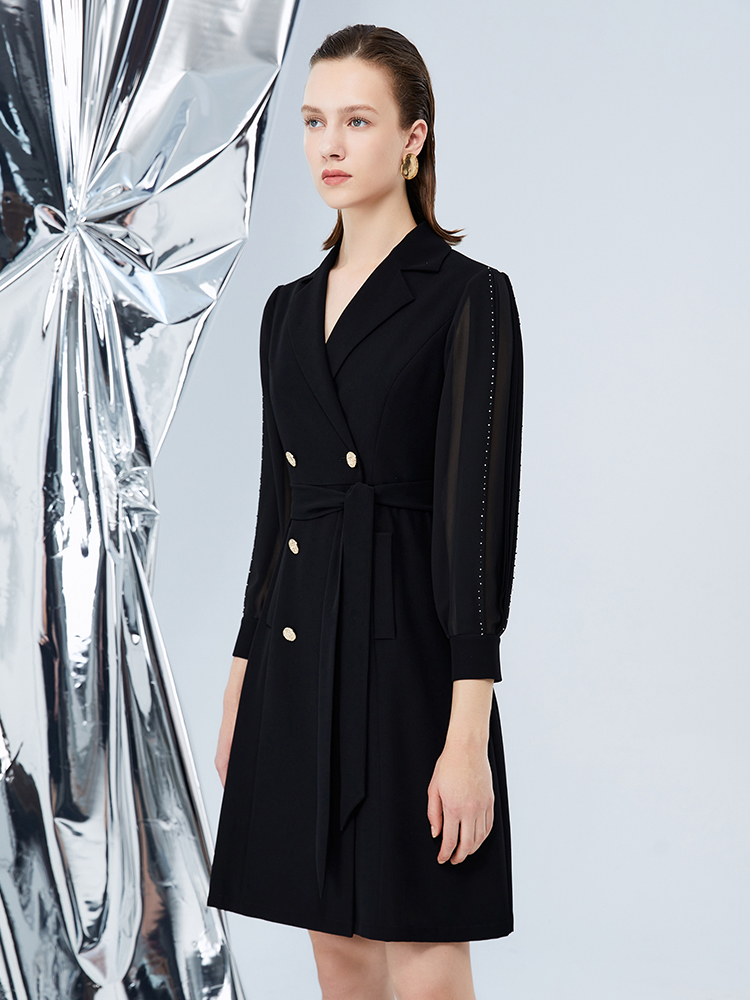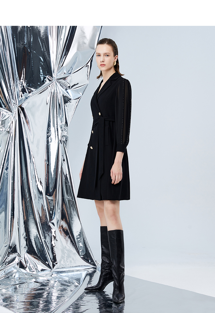 EITIE爱特爱秋季翻领双排扣时尚网纱拼接黑色风衣外套7504202