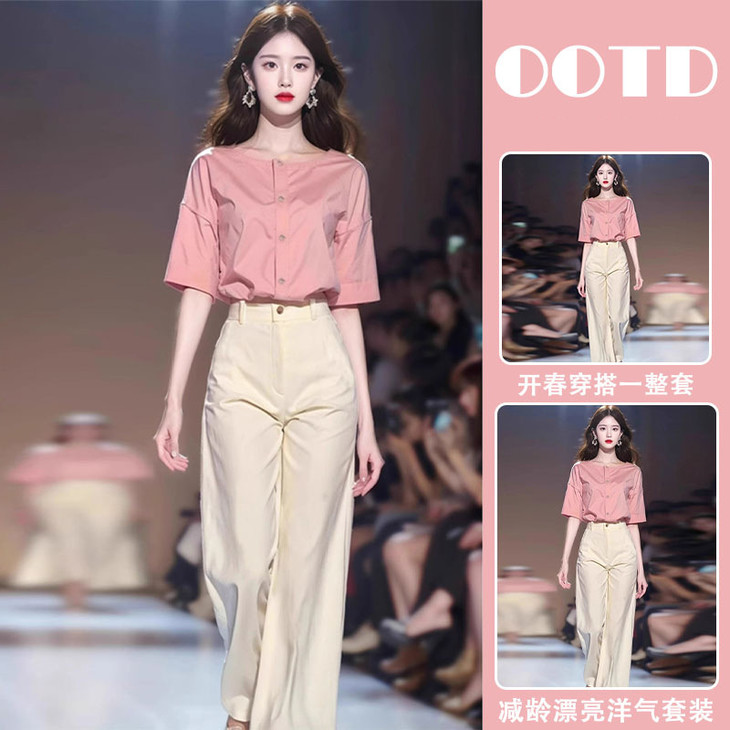 高级感大方得体气质小香风职业f短袖阔腿裤套装 商品图1