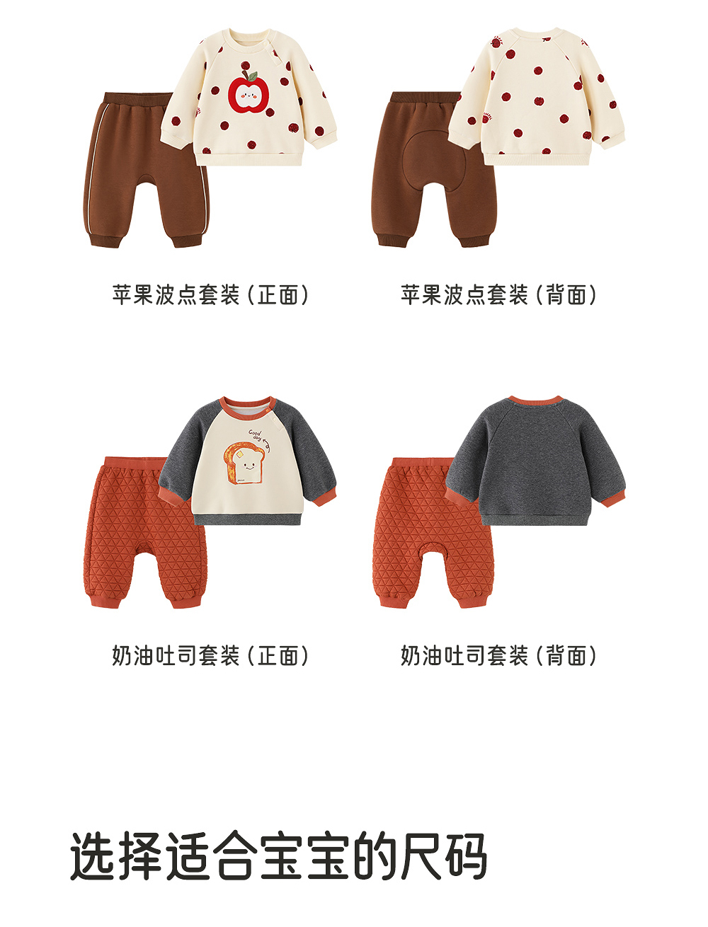 英氏宝宝套装衣服秋冬新款男女童长袖卫衣长裤婴儿两件套加绒保暖