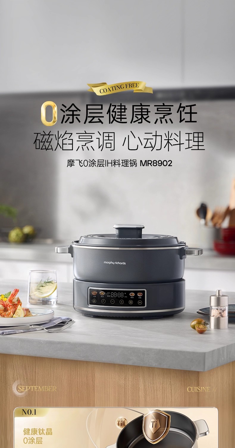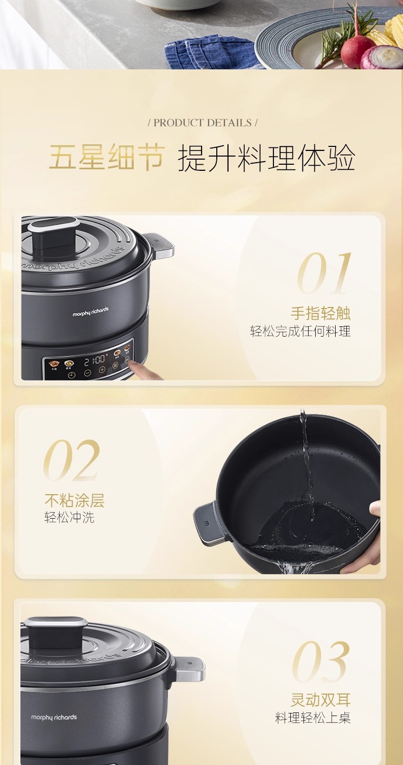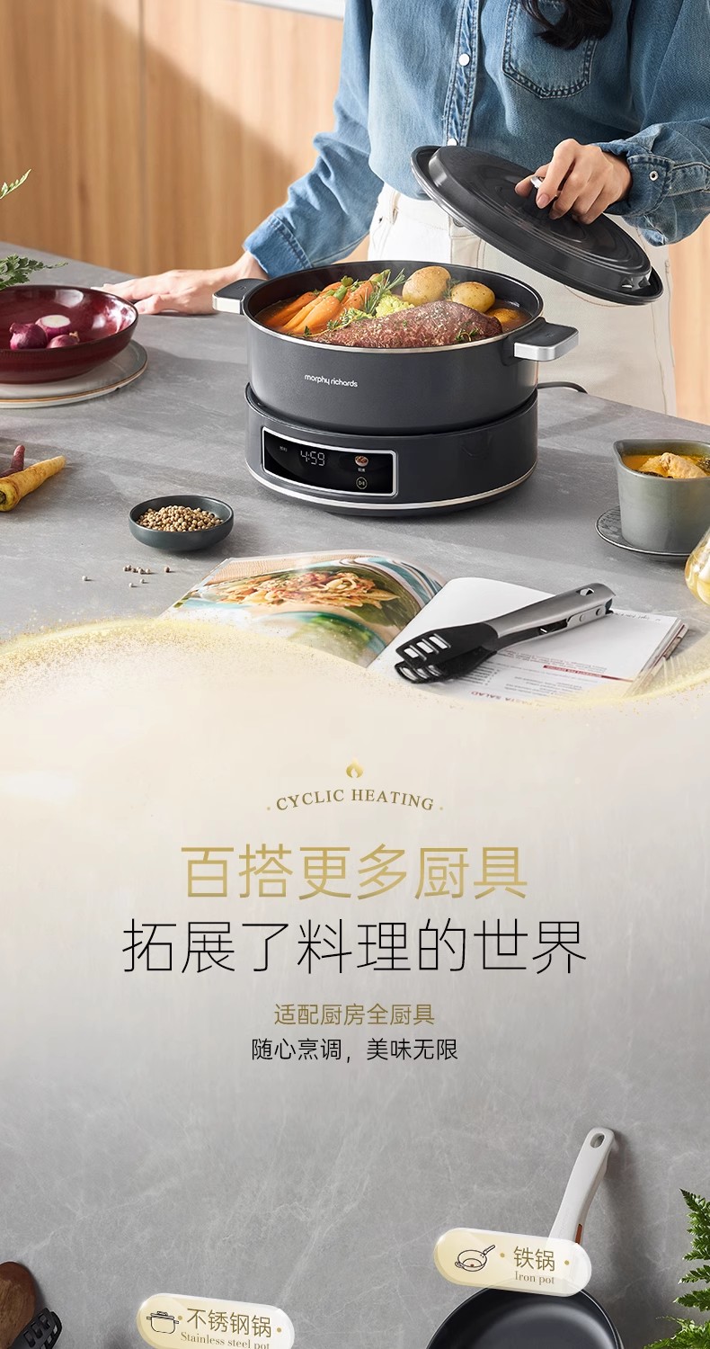 英国morphy摩飞MR89020涂层IH电热火锅(轻奢灰)