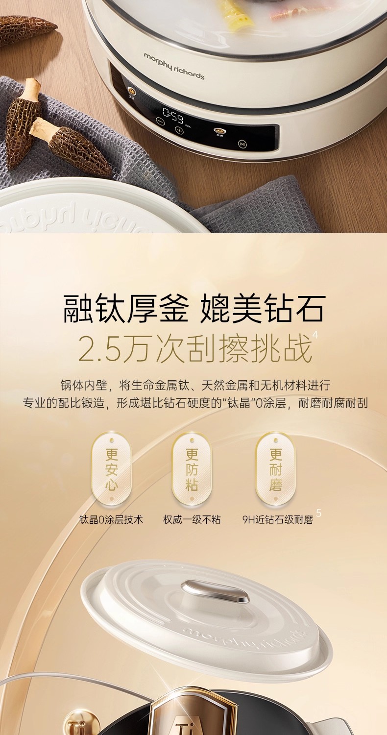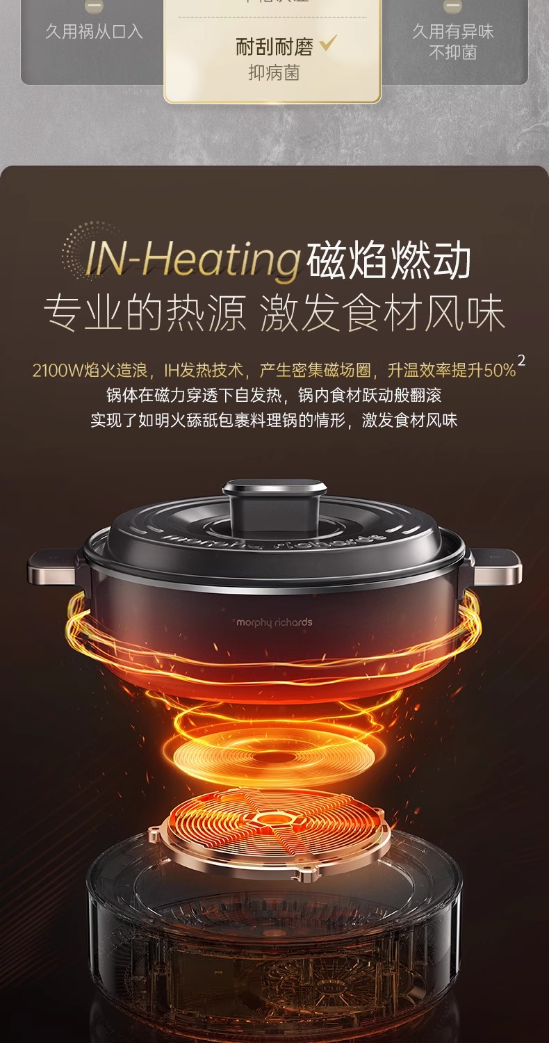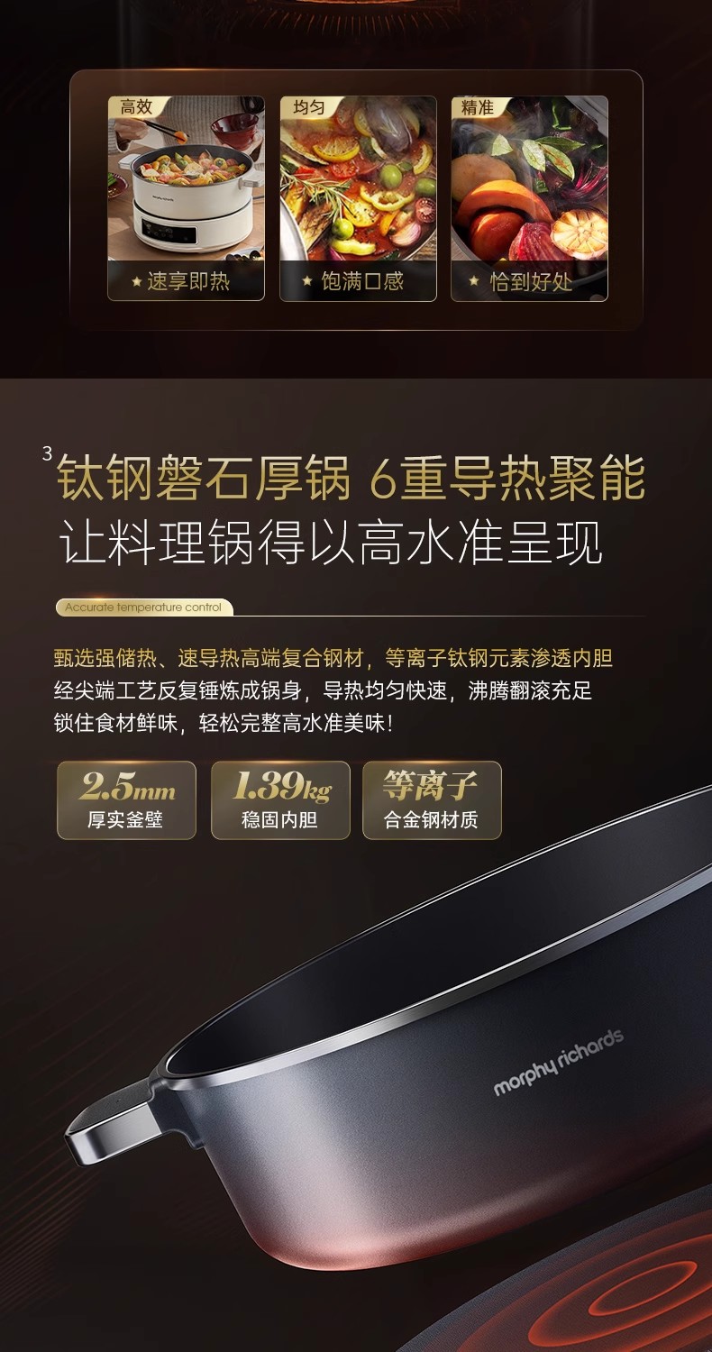 英国morphy摩飞MR89020涂层IH电热火锅(轻奢灰)