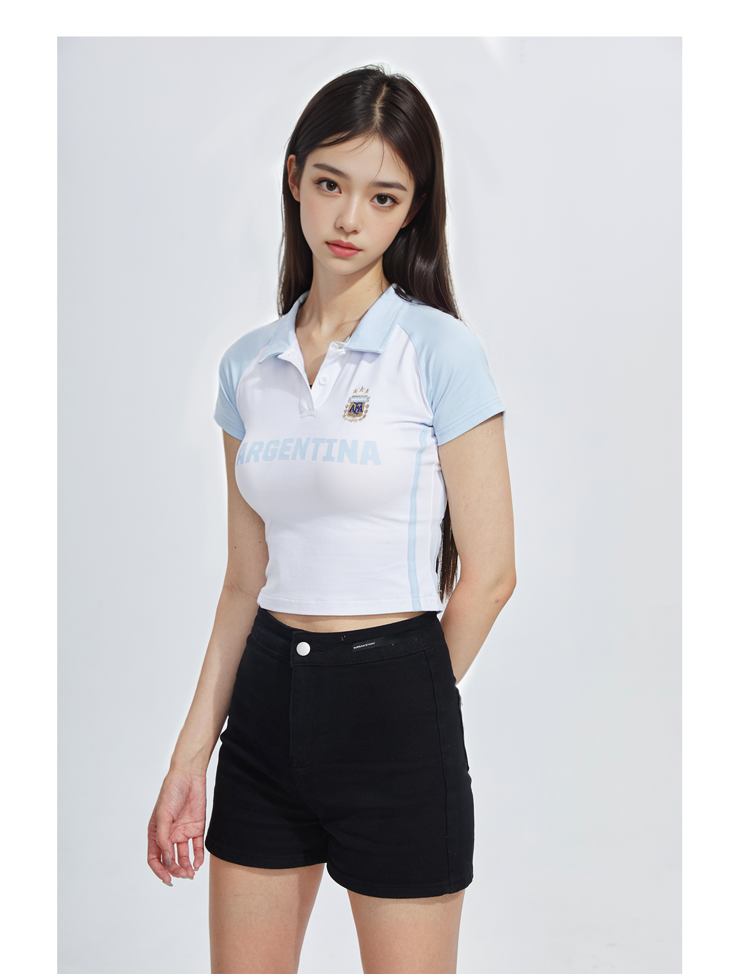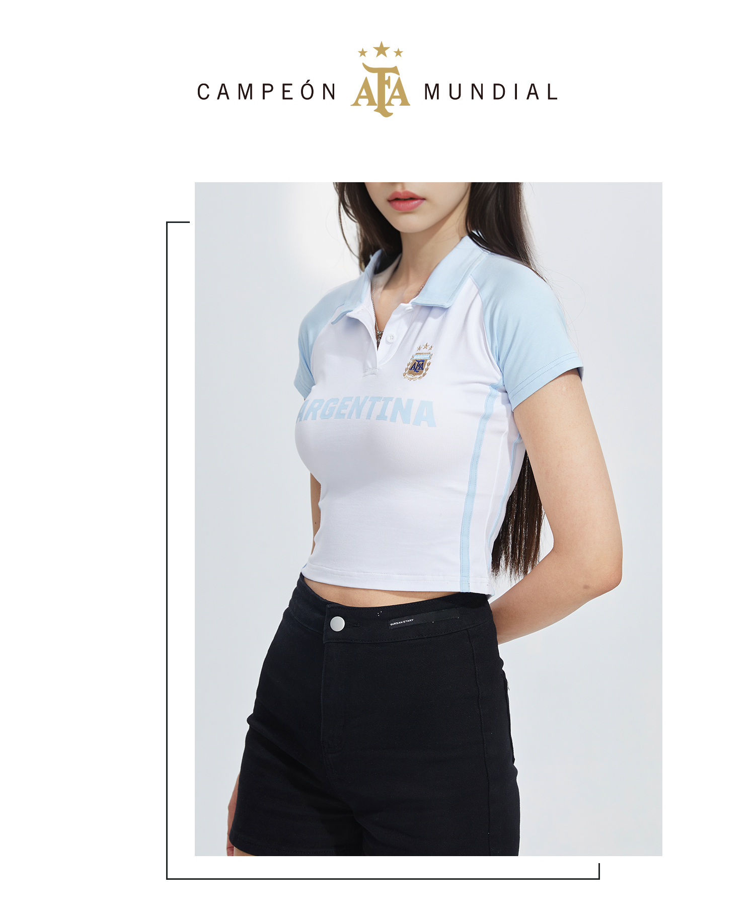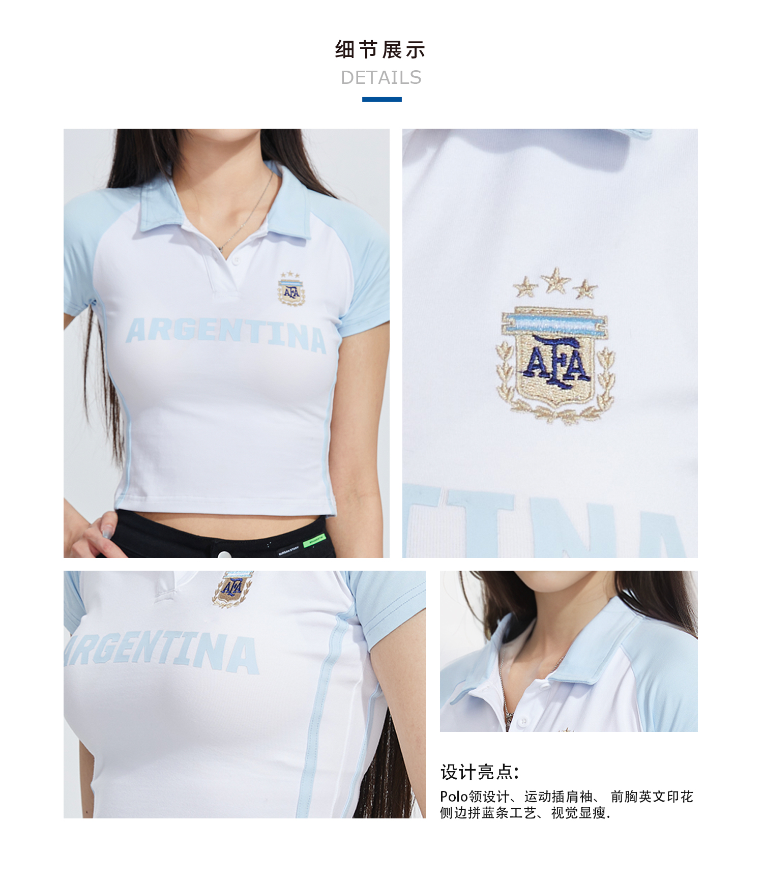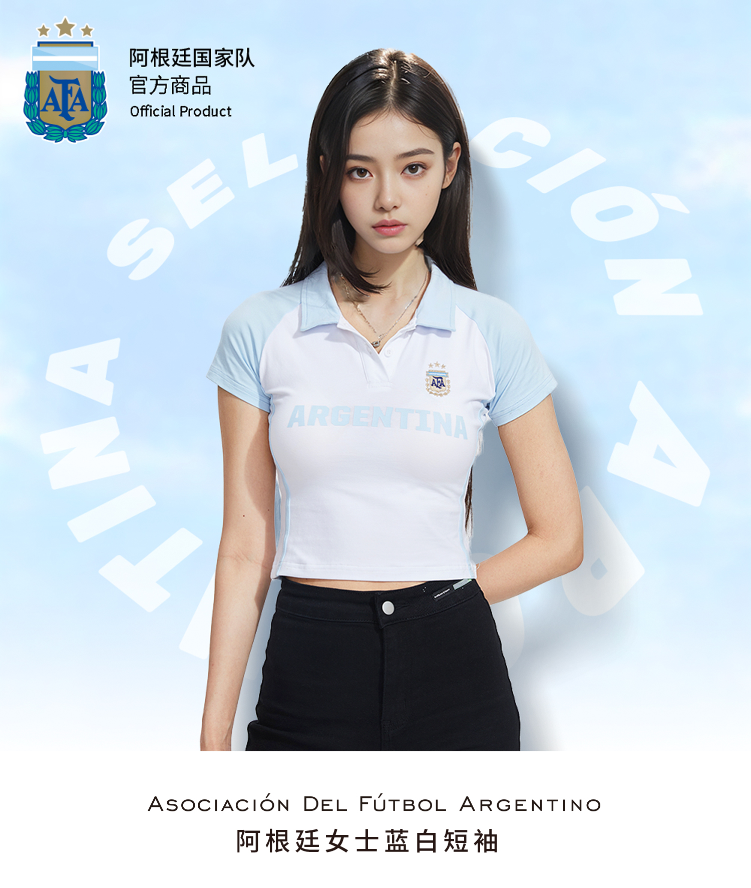 阿根廷国家队官方商品丨女士蓝白运动POLO领短袖T恤梅西球迷礼物