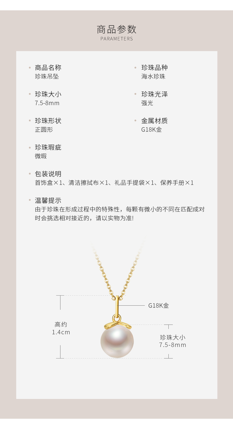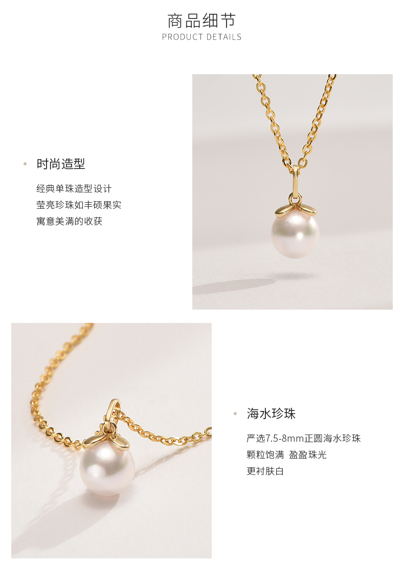 【品牌优选】京润未生 18K金 akoya海水珍珠吊坠