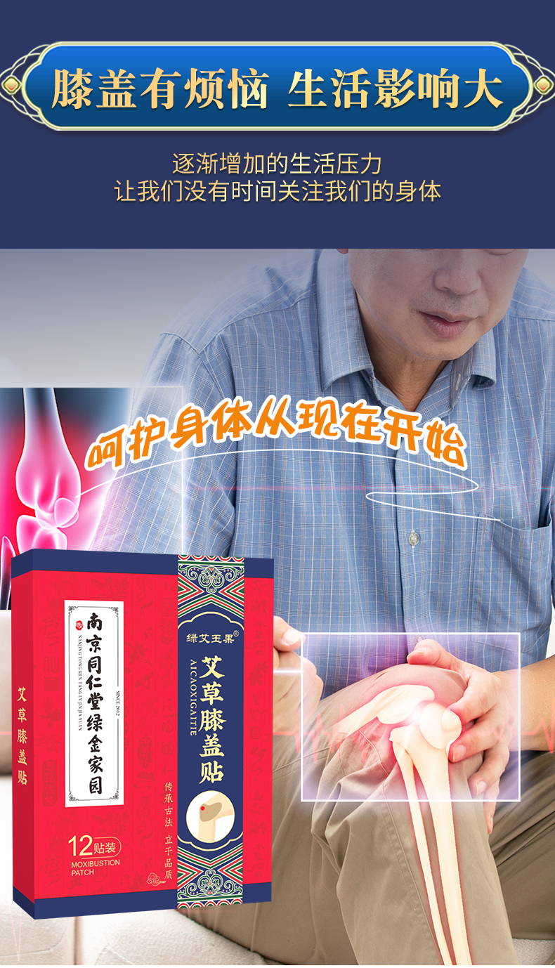 艾草膝盖贴 草本萃取膝盖贴 贴合膝盖 活动自如 艾草关节艾灸贴发热贴